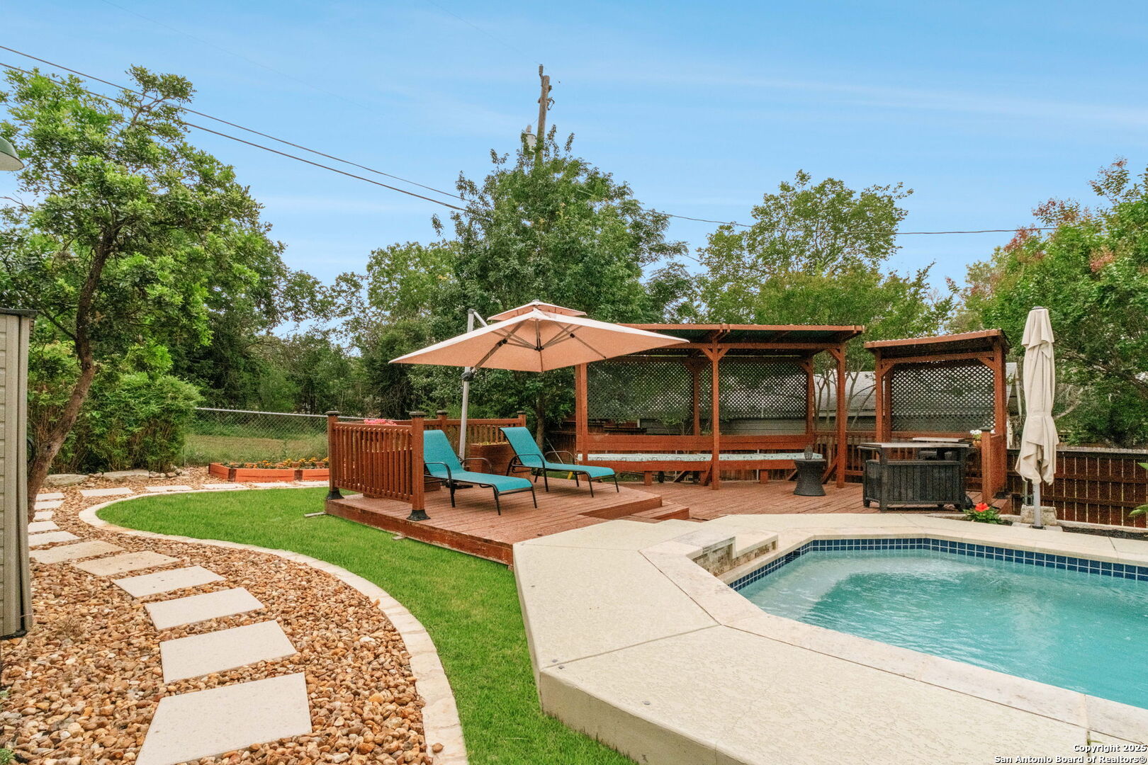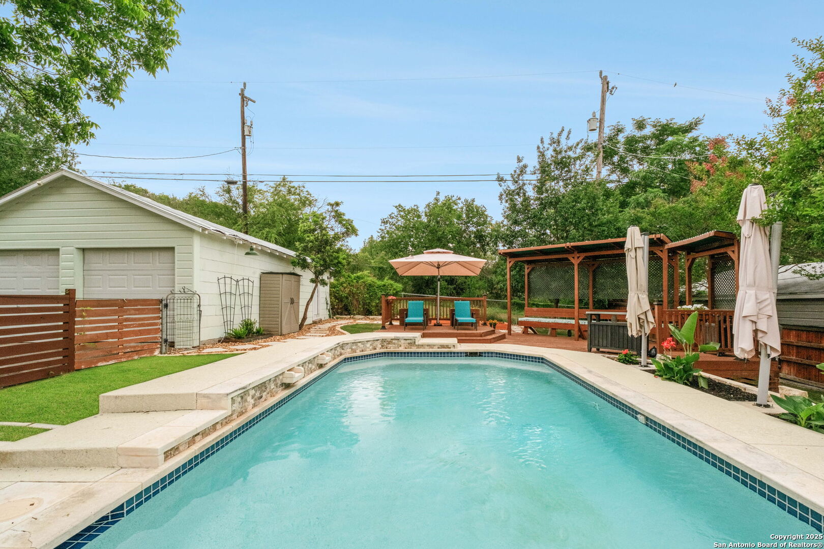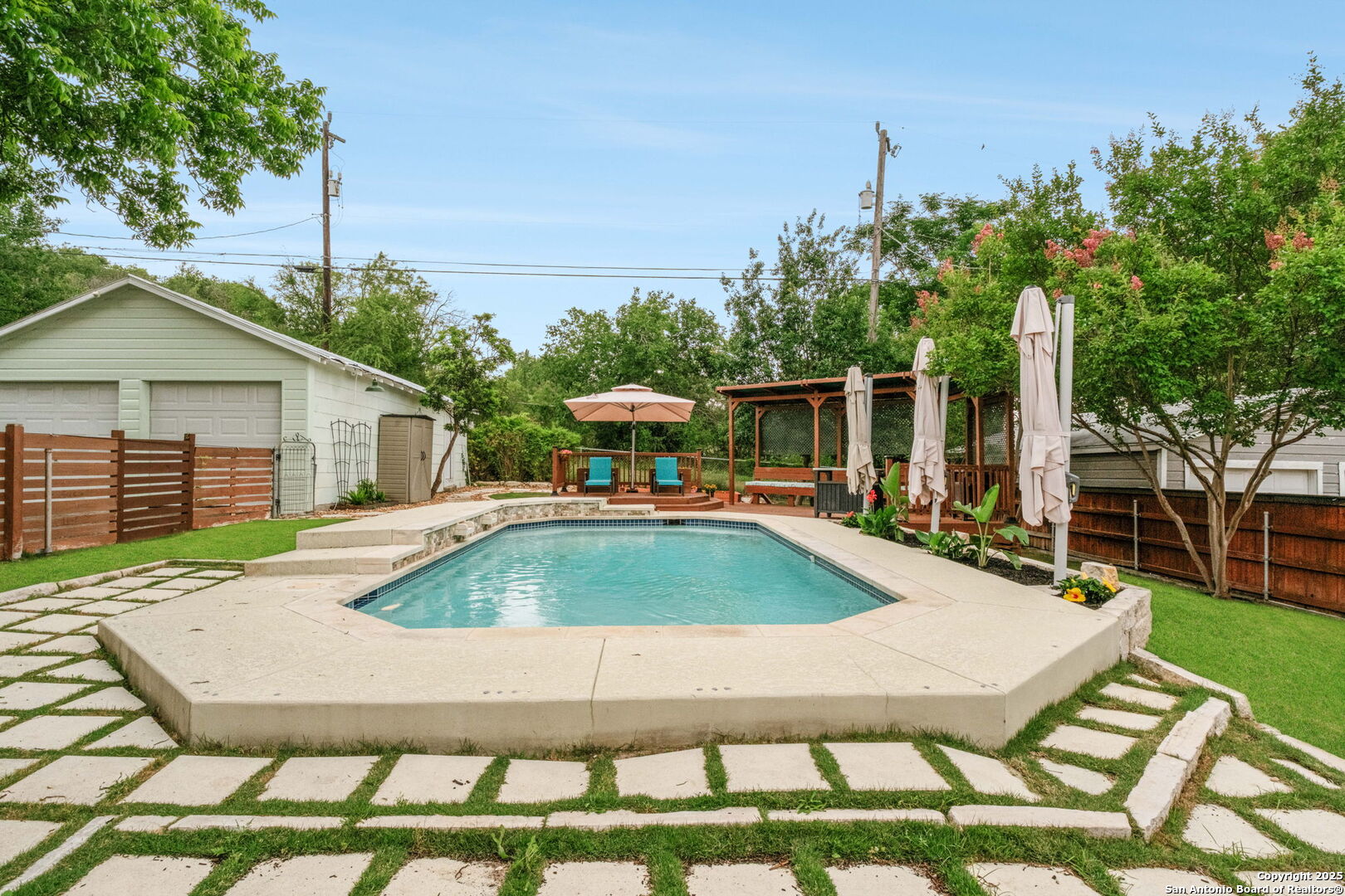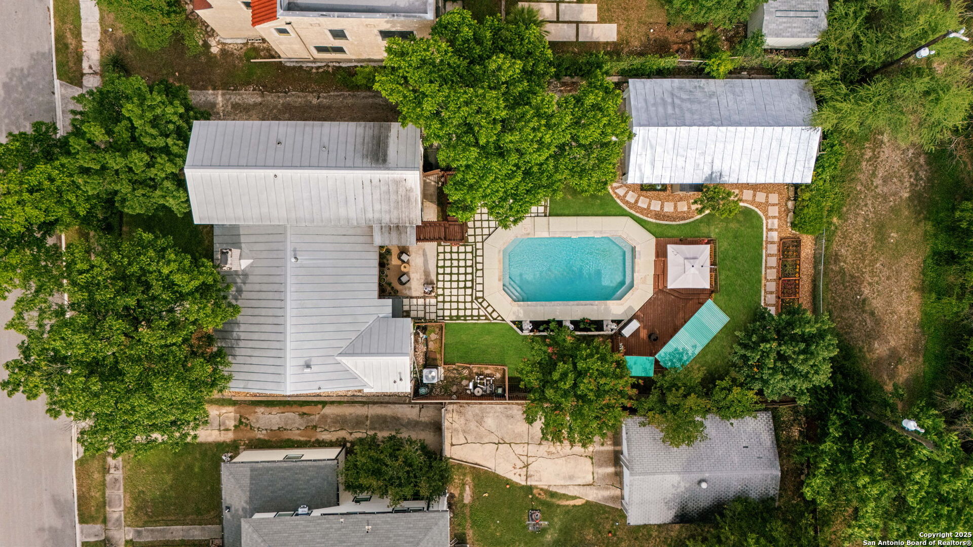 Welcome to this beautifully maintained home in the heart of the highly sought-after Mahncke Park neighborhood! Located directly across the street from the prestigious San Antonio Country Club and backing up directly to the San Antonio Botanical Gardens, this home offers unbeatable access to some of the city's top destinations. JBSA Ft. Sam Houston, the Historic Pearl, Brackenridge Park, the Witte Museum, shopping and dining on Broadway; all are just minutes away. When you are not enjoying the local entertainment - enjoy a refreshing dip in your amazing backyard POOL! One of the few in Mahcke Park! From the classic front porch step inside this 3 bedroom, 2 bath home and be greeted by timeless character and warmth. Gleaming original hardwood floors flow throughout the home, complemented by abundant natural light and a cozy fireplace, perfect for relaxing evenings at home. Two bedrooms and one bathroom reside on the bottom floor. On the second floor, via a private entrance, you will find one spacious bedroom, a full bath, and extra upstairs second living area. This offers exceptional flexibility. It can be used as a guest suite, home office, or potential rental income opportunity or with addition of a closet easily a fourth bedroom. In the past this was a separate rental - and can also be restored easily to a one-bedroom apartment. As mentioned, the paradise-style patio features an inground swimming pool, multiple seating areas, and a tranquil stone walkways, ideal for hosting gatherings or simply unwinding in a private retreat-like setting. With its prime central location, thoughtful updates, and flexible floor plan, this home offers a unique lifestyle opportunity in one of San Antonio's most beloved neighborhoods. Don't miss your chance to own a piece of classic San Antonio charm and experience the unmatched character and convenience this home has to offer.