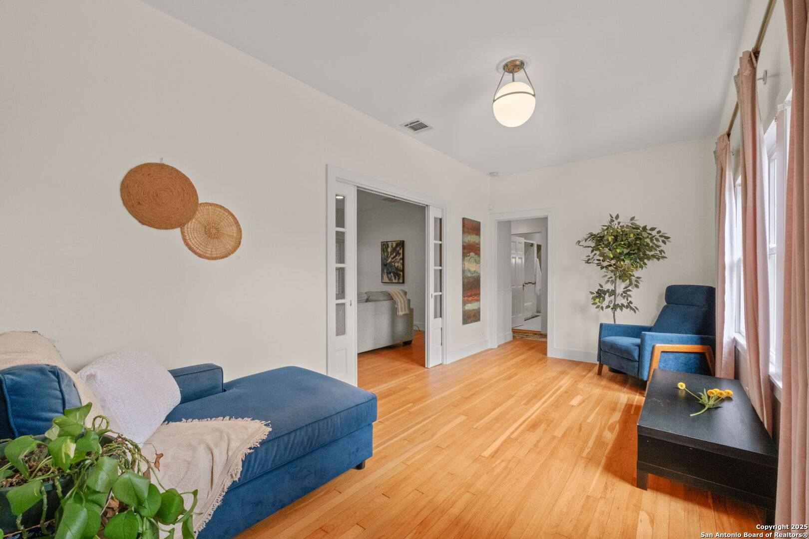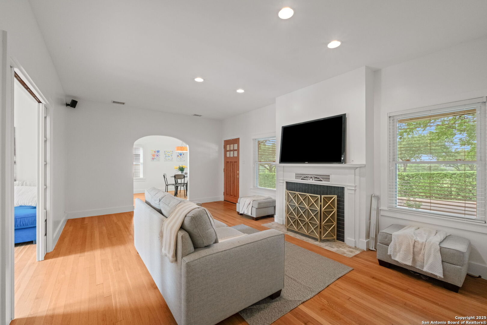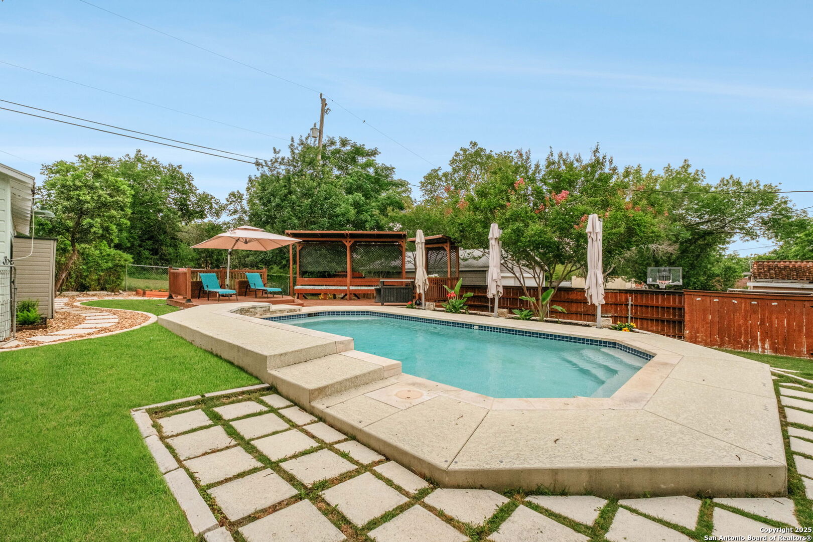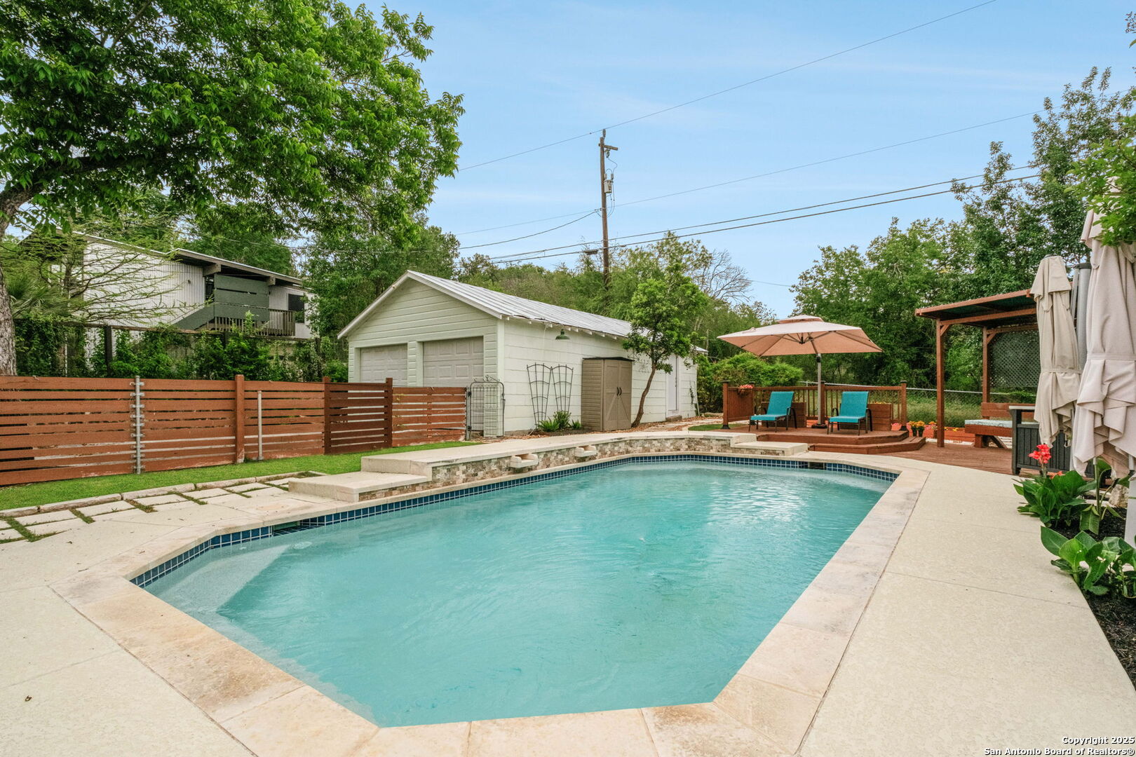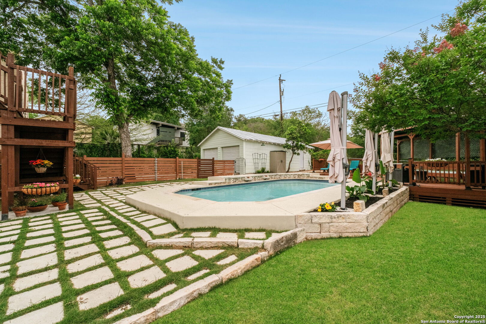 Welcome to this beautifully maintained home in the heart of the highly sought-after Mahncke Park neighborhood! Located directly across the street from the prestigious San Antonio Country Club and backing up directly to the San Antonio Botanical Gardens, this home offers unbeatable access to some of the city's top destinations. JBSA Ft. Sam Houston, the Historic Pearl, Brackenridge Park, the Witte Museum, shopping and dining on Broadway; all are just minutes away. When you are not enjoying the local entertainment - enjoy a refreshing dip in your amazing backyard POOL! One of the few in Mahcke Park! From the classic front porch step inside this 3 bedroom, 2 bath home and be greeted by timeless character and warmth. Gleaming original hardwood floors flow throughout the home, complemented by abundant natural light and a cozy fireplace, perfect for relaxing evenings at home. Two bedrooms and one bathroom reside on the bottom floor. On the second floor, via a private entrance, you will find one spacious bedroom, a full bath, and extra upstairs second living area. This offers exceptional flexibility. It can be used as a guest suite, home office, or potential rental income opportunity or with addition of a closet easily a fourth bedroom. In the past this was a separate rental - and can also be restored easily to a one-bedroom apartment. As mentioned, the paradise-style patio features an inground swimming pool, multiple seating areas, and a tranquil stone walkways, ideal for hosting gatherings or simply unwinding in a private retreat-like setting. With its prime central location, thoughtful updates, and flexible floor plan, this home offers a unique lifestyle opportunity in one of San Antonio's most beloved neighborhoods. Don't miss your chance to own a piece of classic San Antonio charm and experience the unmatched character and convenience this home has to offer.