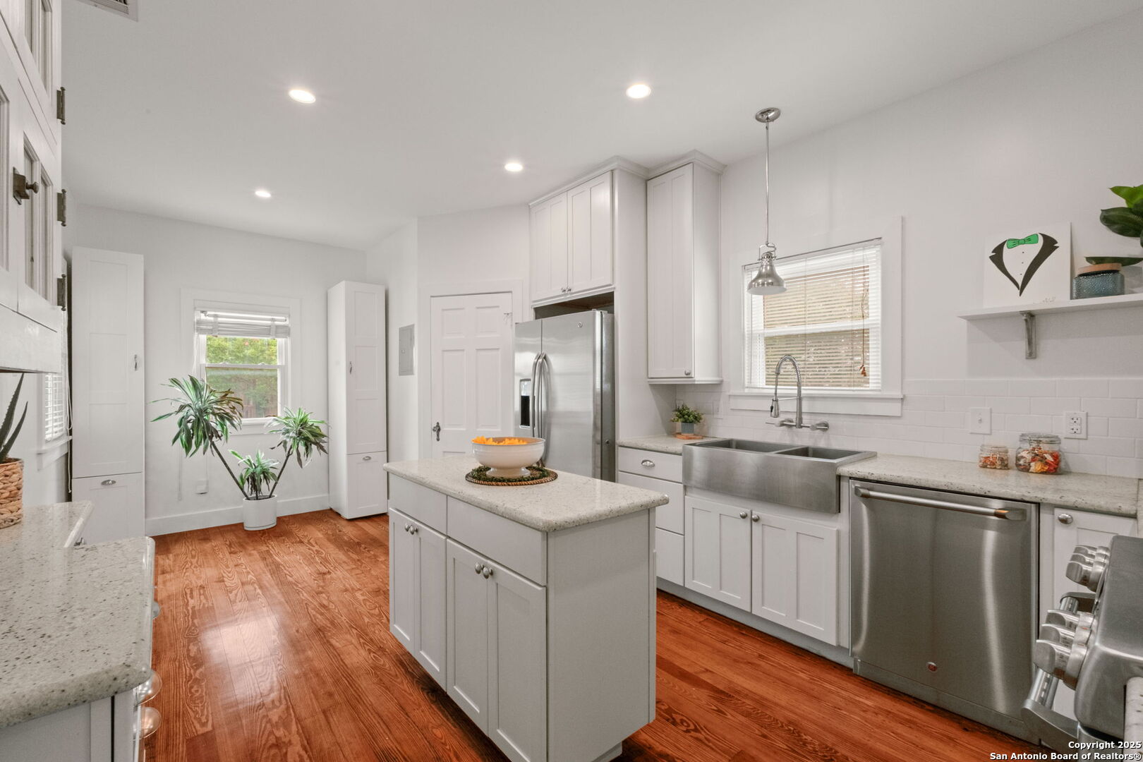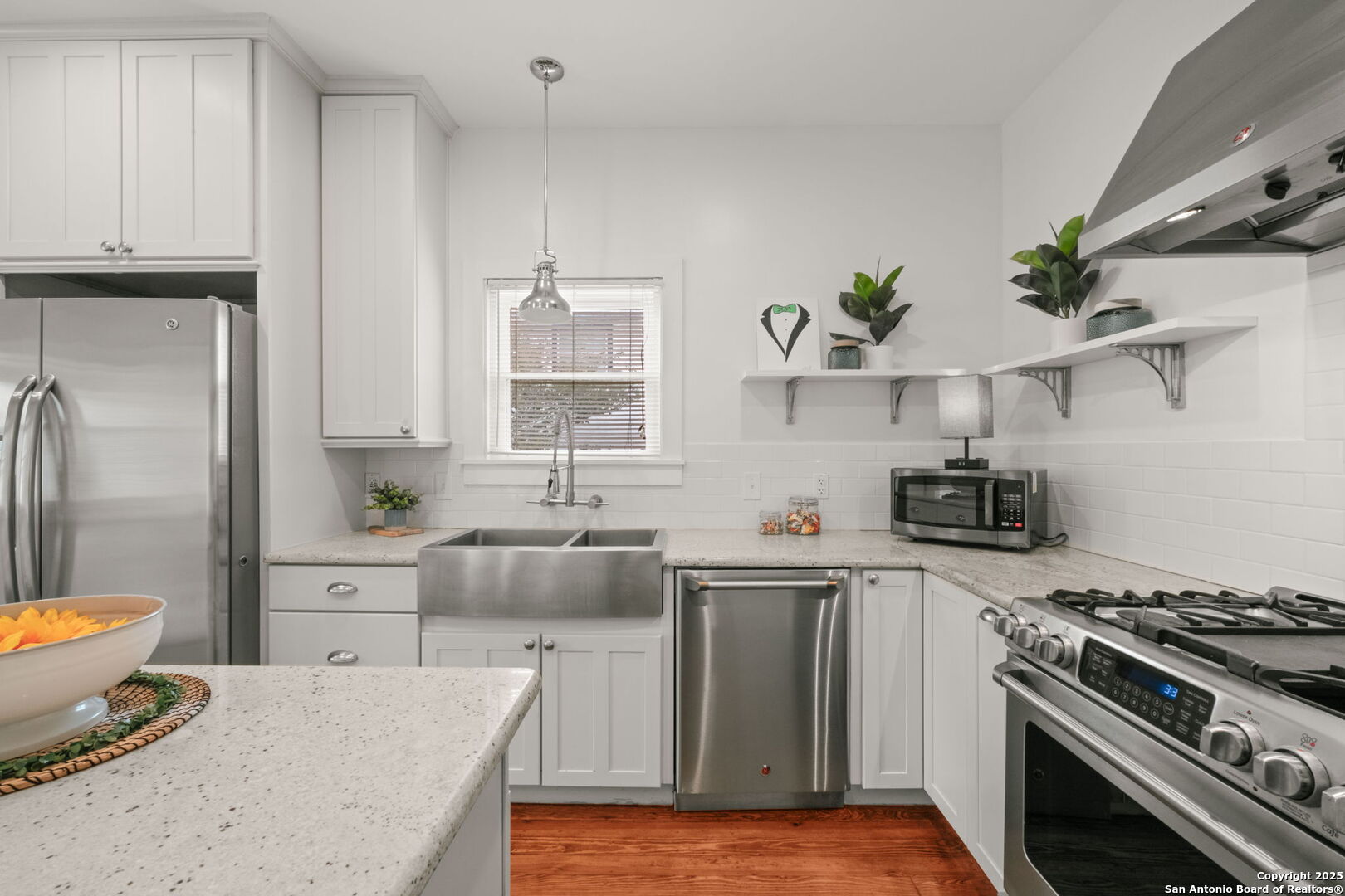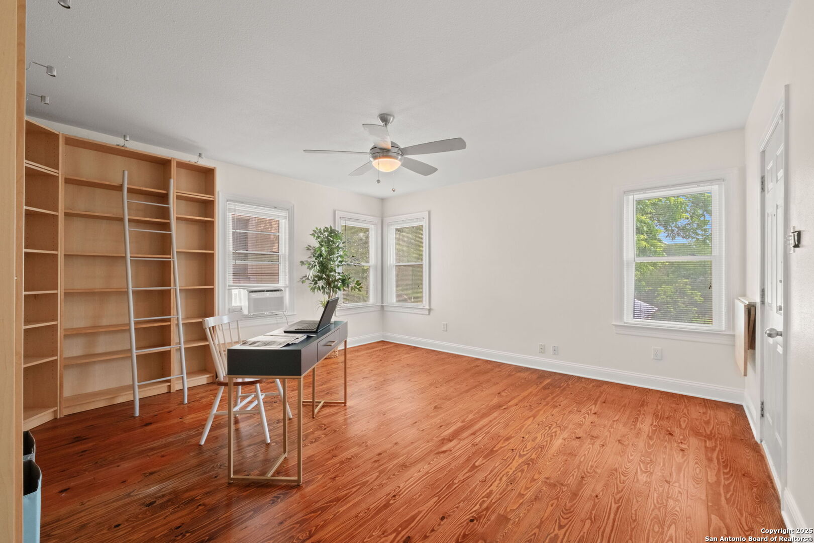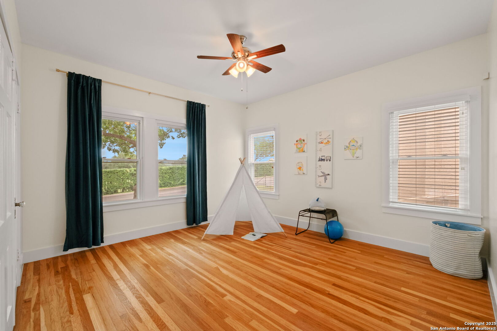 Welcome to this beautifully maintained home in the heart of the highly sought-after Mahncke Park neighborhood! Located directly across the street from the prestigious San Antonio Country Club and backing up directly to the San Antonio Botanical Gardens, this home offers unbeatable access to some of the city's top destinations. JBSA Ft. Sam Houston, the Historic Pearl, Brackenridge Park, the Witte Museum, shopping and dining on Broadway; all are just minutes away. When you are not enjoying the local entertainment - enjoy a refreshing dip in your amazing backyard POOL! One of the few in Mahcke Park! From the classic front porch step inside this 3 bedroom, 2 bath home and be greeted by timeless character and warmth. Gleaming original hardwood floors flow throughout the home, complemented by abundant natural light and a cozy fireplace, perfect for relaxing evenings at home. Two bedrooms and one bathroom reside on the bottom floor. On the second floor, via a private entrance, you will find one spacious bedroom, a full bath, and extra upstairs second living area. This offers exceptional flexibility. It can be used as a guest suite, home office, or potential rental income opportunity or with addition of a closet easily a fourth bedroom. In the past this was a separate rental - and can also be restored easily to a one-bedroom apartment. As mentioned, the paradise-style patio features an inground swimming pool, multiple seating areas, and a tranquil stone walkways, ideal for hosting gatherings or simply unwinding in a private retreat-like setting. With its prime central location, thoughtful updates, and flexible floor plan, this home offers a unique lifestyle opportunity in one of San Antonio's most beloved neighborhoods. Don't miss your chance to own a piece of classic San Antonio charm and experience the unmatched character and convenience this home has to offer.