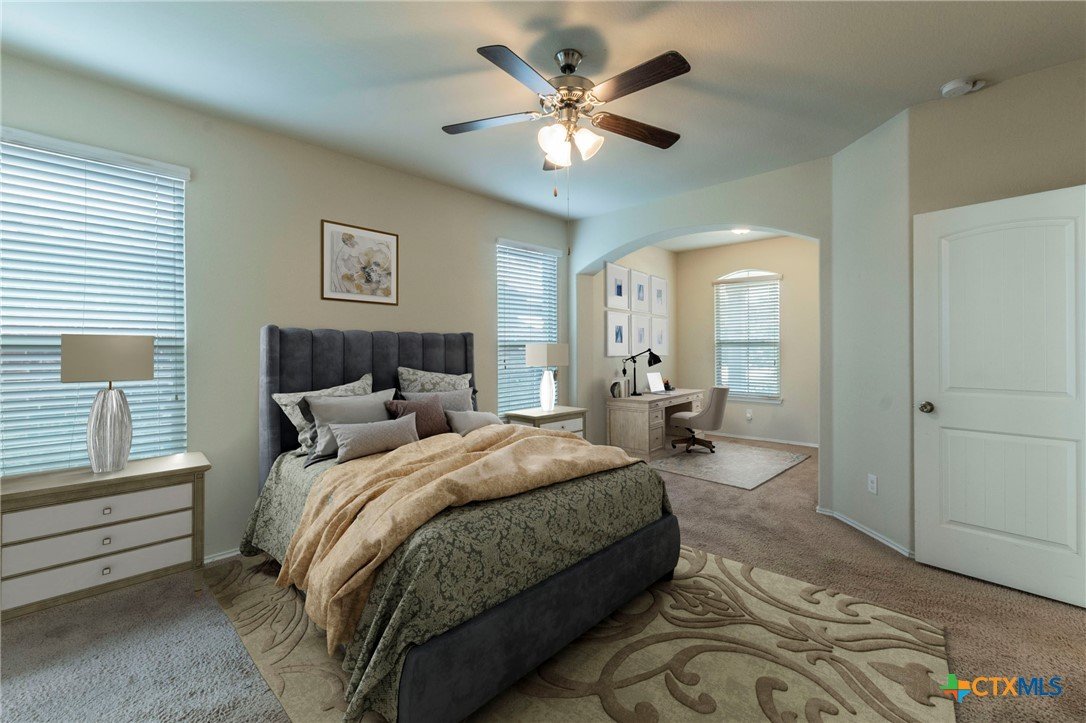 MAJOR PRICE IMPROVEMENT! This is a smart, 5 bedroom, 2.5 bath floorplan located in the highly sought after Three Creeks neighborhood. Primary bedroom located downstairs with bonus space for TV, reading, exercise or even a nursery. Built in 2016, there is apprx 2,607 sq ft of living space. This spacious property features tile flooring throughout the main areas of living and carpet in the bedrooms and second living area upstairs, making it comfortable on your feet and easy to care for. This versatile floorplan could accommodate multi-generational living while offering ample space for everyone. The large lot provides plenty of room for outdoor activities and entertaining; the community is exceptionally welcoming. Enjoy walking trails and exclusive access to a park with creek access, enhancing your outdoor living experience. Conveniently located near I-14, you'll have seamless access to major transportation routes including I-35. Maybe 30 minutes to Fort Cavazos, 15 minutes to shopping areas for almost everything. Also convenient to hospitals and clinics for several specialties. Not to mention, the airport is apprx 25 minutes away. Note - The interior pictures of the house is being shown with "virtual staging". VA Qualifying Assumable loan with a low interest rate is available. You do not have to be a Veteran to qualify. Call Me now or contact your local Realtor and purchase this lovely home as your own.