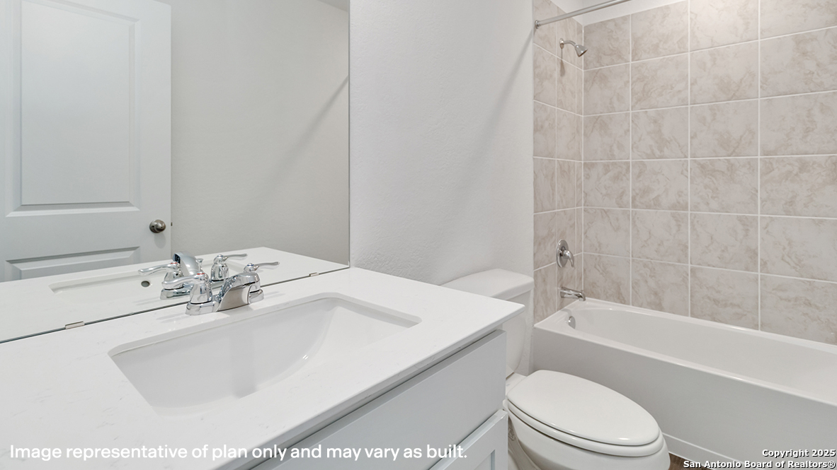 The Barton is a charming one-story home featured at Riverstone at Westpointe in San Antonio, TX. Featuring 2 classic front exteriors, this 3 bedroom, 2 bathroom home also offers 1281 square feet of living space and a 2-car garage. A front porch (per plan) welcomes you into the home and opens to the gourmet kitchen which includes quartz counter tops, quality cabinets, stainless steel appliances and an open concept floorplan with the kitchen flowing seamlessly into the dining room and living room. The main bedroom has an attractive ensuite bathroom that features a quartz vanity countertop and quality cabinetry. Enjoy additional storage with a spacious walk-in closet located off of the primary bathroom. Your secondary bedrooms all feature quality carpet flooring and a closet, and can be used as bedrooms, offices, work out spaces or other bonus rooms. The possibilities are endless with The Barton floor plan. Additional features include sheet vinyl flooring in entry, living room, and all wet areas, quartz counter tops in all bathrooms and HOME IS CONNECTED base package. Using one central hub that talks to all the devices in your home, you can control the lights, thermostat and locks, all from your cellular device.