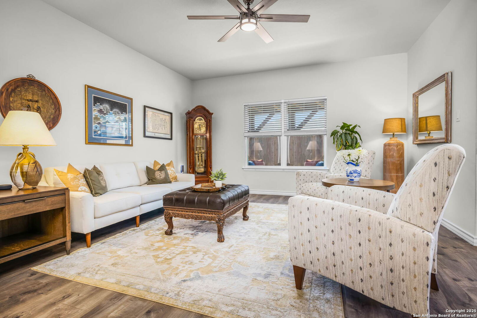 Nestled in the Heather Glen neighborhood of New Braunfels. This bright and open layout features a granite island kitchen with stainless steel appliances that seamlessly flows into the dining area and spacious living room. The private primary suite is thoughtfully separated from the three generously sized secondary bedrooms and boasts a walk-in closet, an ensuite bathroom with a garden tub, a separate shower, and dual vanities. The private backyard with hot tub and pergula. Neighborhood amenities include a pool and a park/playground. Conveniently located near the historic Gruene District, Creekside Shopping, and within the desirable Comal ISD. Don't miss the chance to make this home yours-schedule a visit today!
