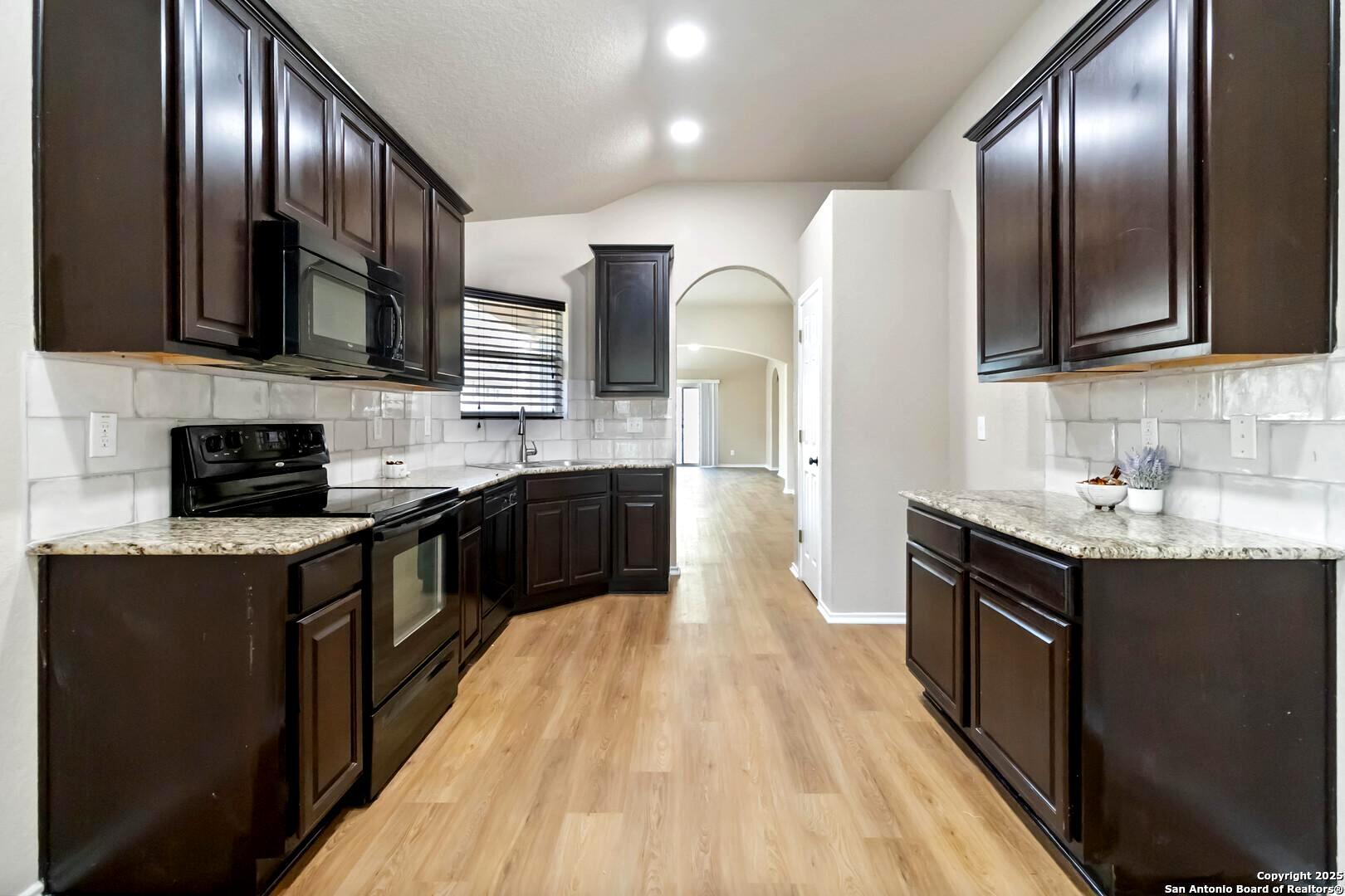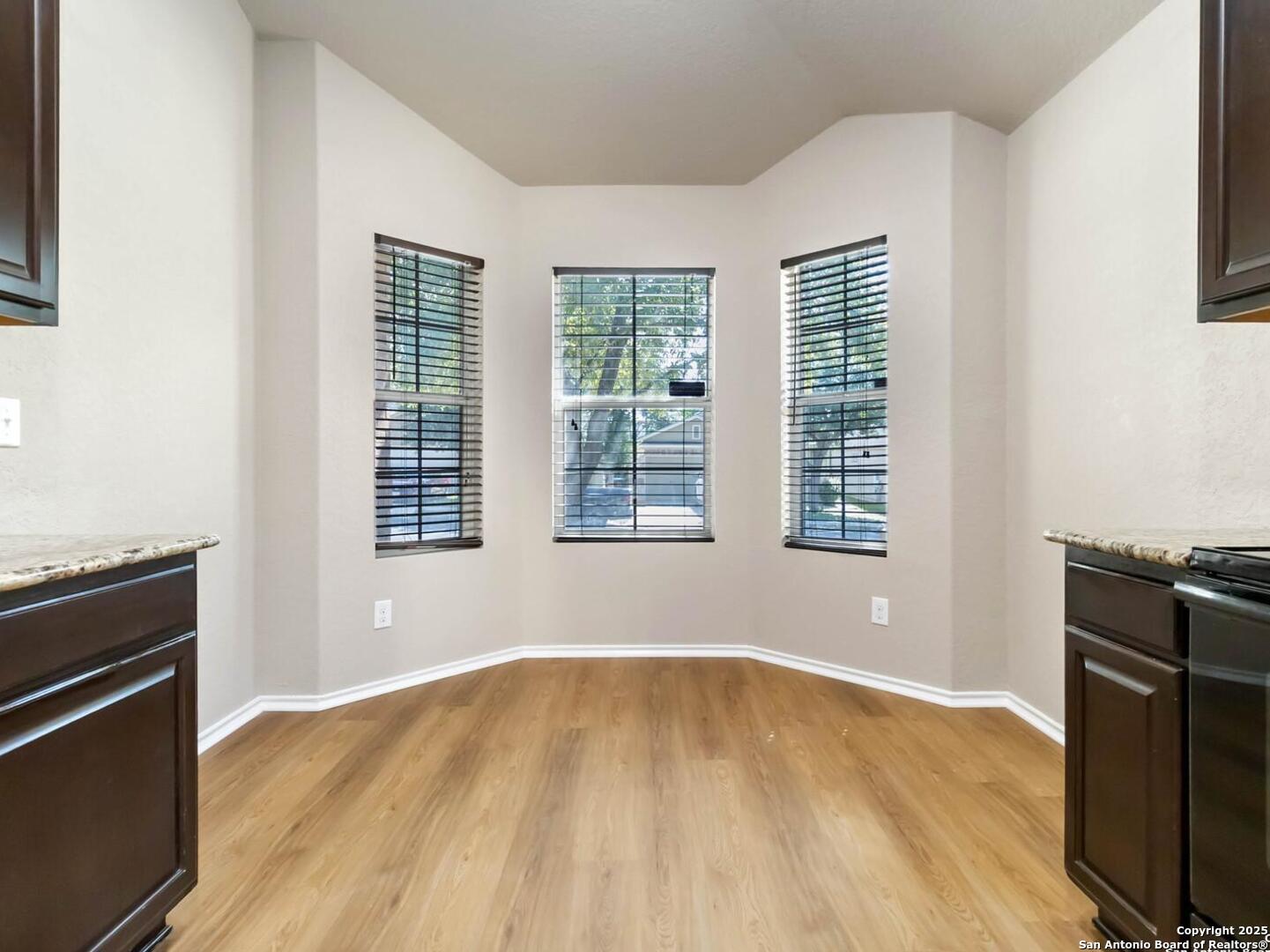 Welcome to your beautifully remodeled home in Leon Valley! This darling single-story features 3 spacious bedrooms and 2 full baths, offering comfort and style at a wonderful price point. Step inside to discover fresh paint, luxury vinyl flooring, and brand-new carpet that make the home feel crisp and inviting. The heart of the home is the bright eat-in kitchen, showcasing a gorgeous new backsplash, updated finishes, and a seamless flow into the open dining and living area-perfect for entertaining or relaxing with family. Brand-new window blinds throughout add a fresh touch and complete the move-in ready feel. Whether you're a first-time buyer or looking to downsize, this Leon Valley gem delivers incredible value with modern updates, thoughtful design, and cozy charm. 5216 Savory Gln - where style, comfort, and affordability meet!