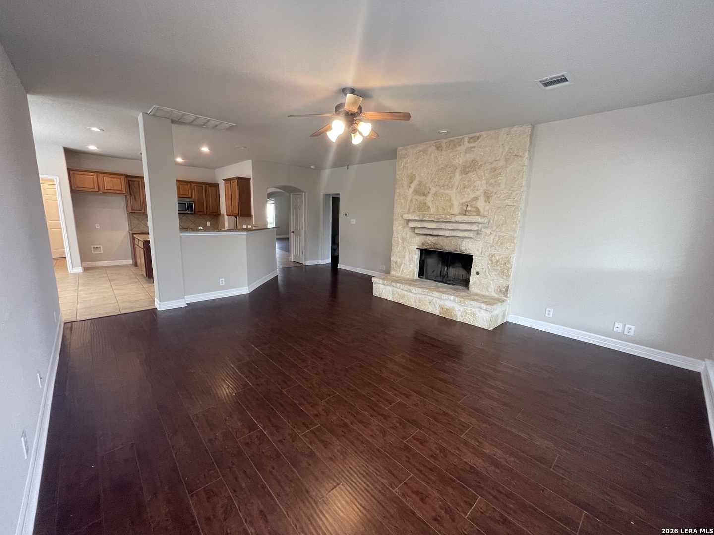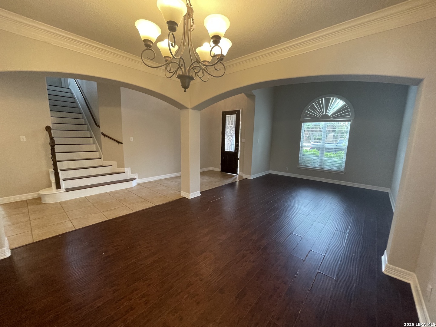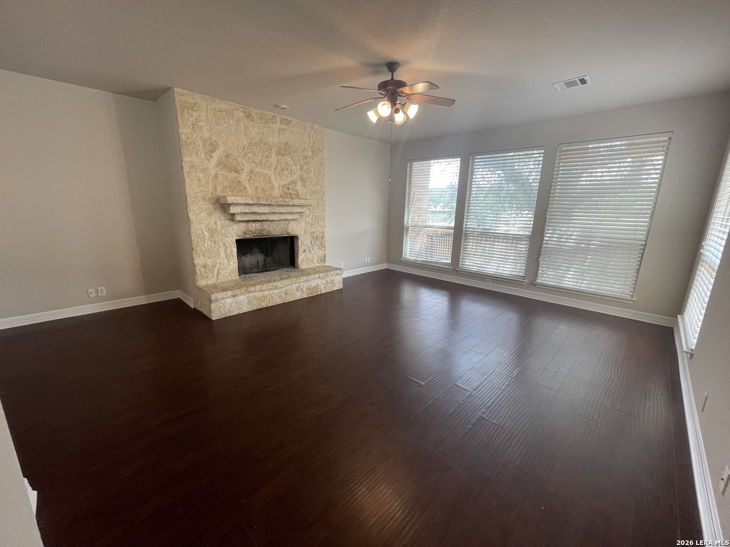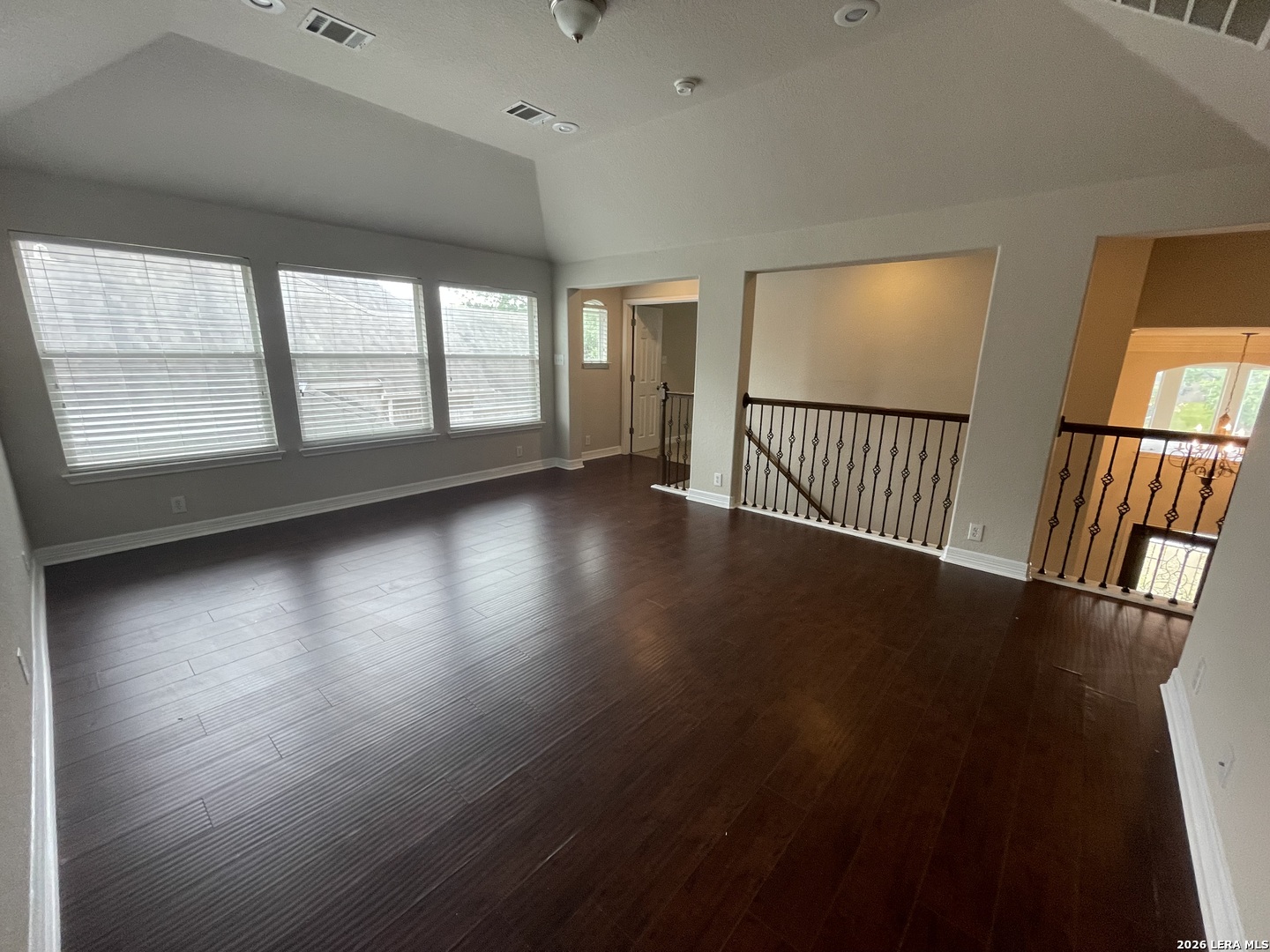 Four-bedroom, three-and-a-half-bathroom home nestled in the Ridge at Canyon Springs. This property offers an expansive layout featuring three distinct living spaces, including a dedicated media room and a game room. The open-concept kitchen is equipped with granite countertops and stainless steel appliances, flowing naturally into an eat-in breakfast area. The primary suite is conveniently located on the main floor. The home is situated on a lush greenbelt and includes a fenced backyard with a deck, providing an excellent space for outdoor entertaining. Schedule your tour today.