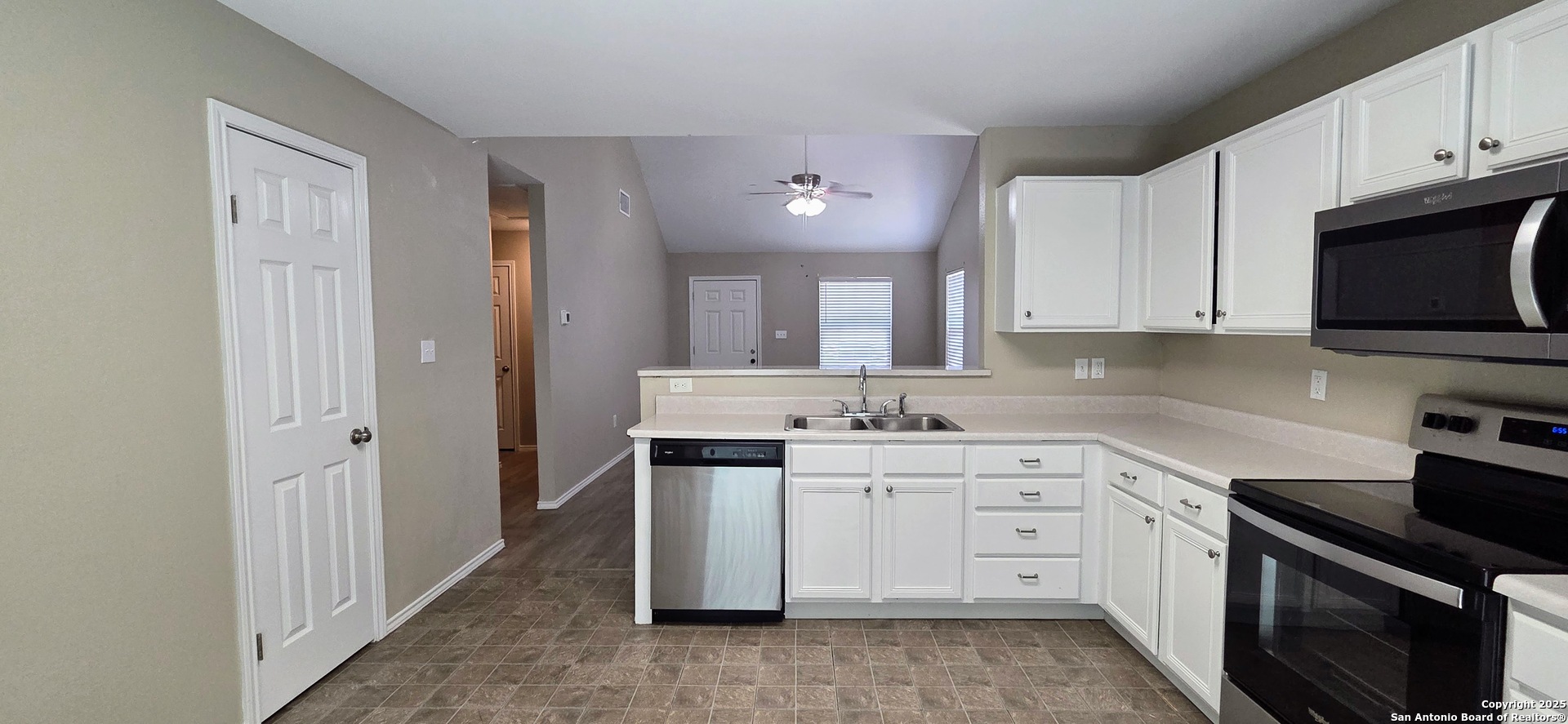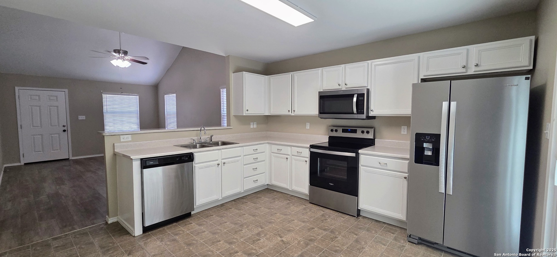 Welcome to your new home in New Braunfels, TX! This charming 2 bedroom, 2 bathroom house is less than 1 mile from Landa Park and downtown New Braunfels offering convenience and easy access to outdoor activities. The house features a private fenced backyard, perfect for enjoying the Texas weather. Inside, you'll find vaulted ceilings, ceiling fans, and 2" wood faux blinds for added comfort and style. The kitchen pantry and linen closet provide ample storage space, while additional space at front of 1-car garage provides room for 2nd fridge or stand alone freezer. With central AC, washer and dryer connections, this house has everything you need for a comfortable and convenient living experience. Don't miss out on this opportunity to make this house your new home!