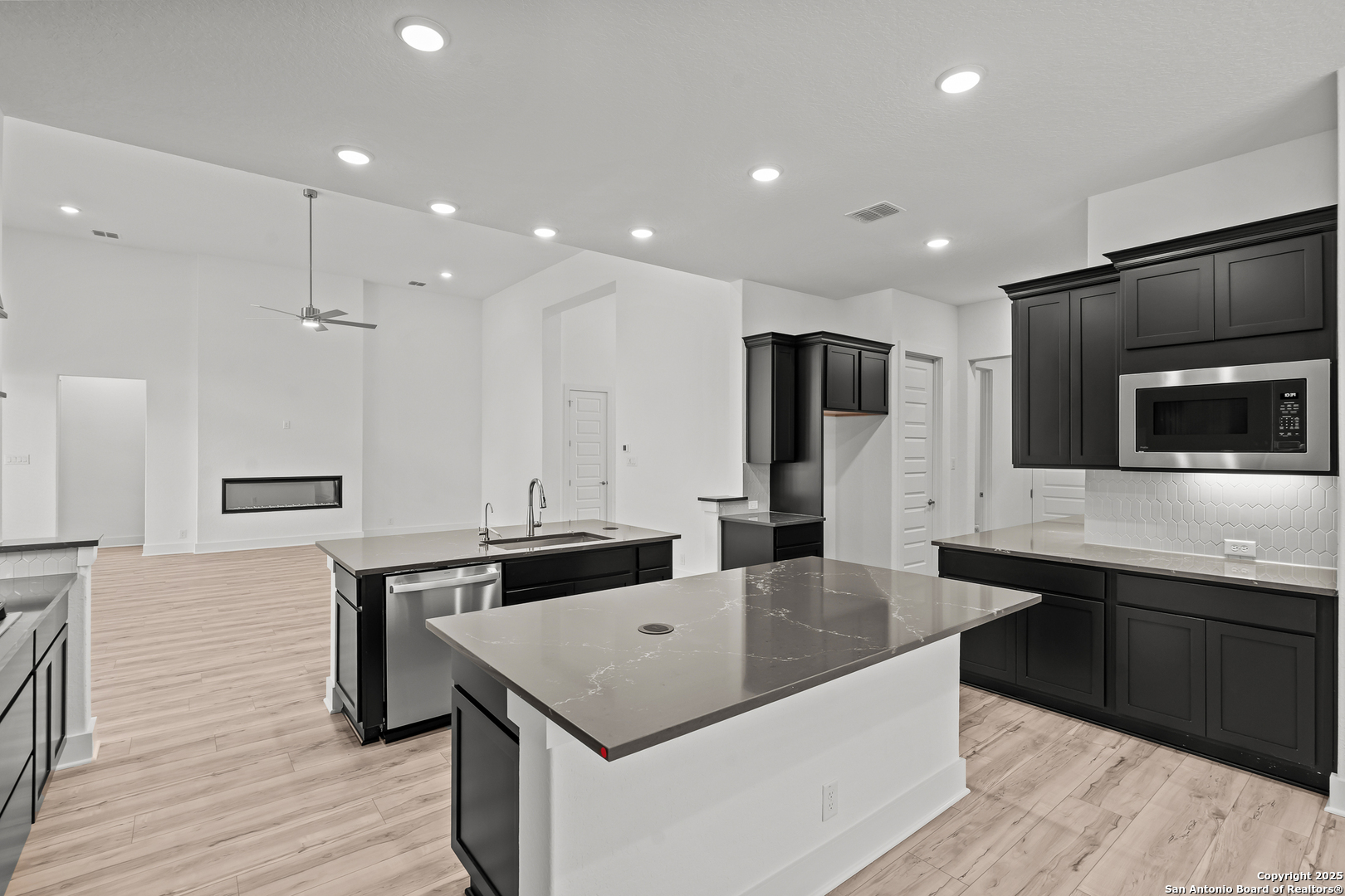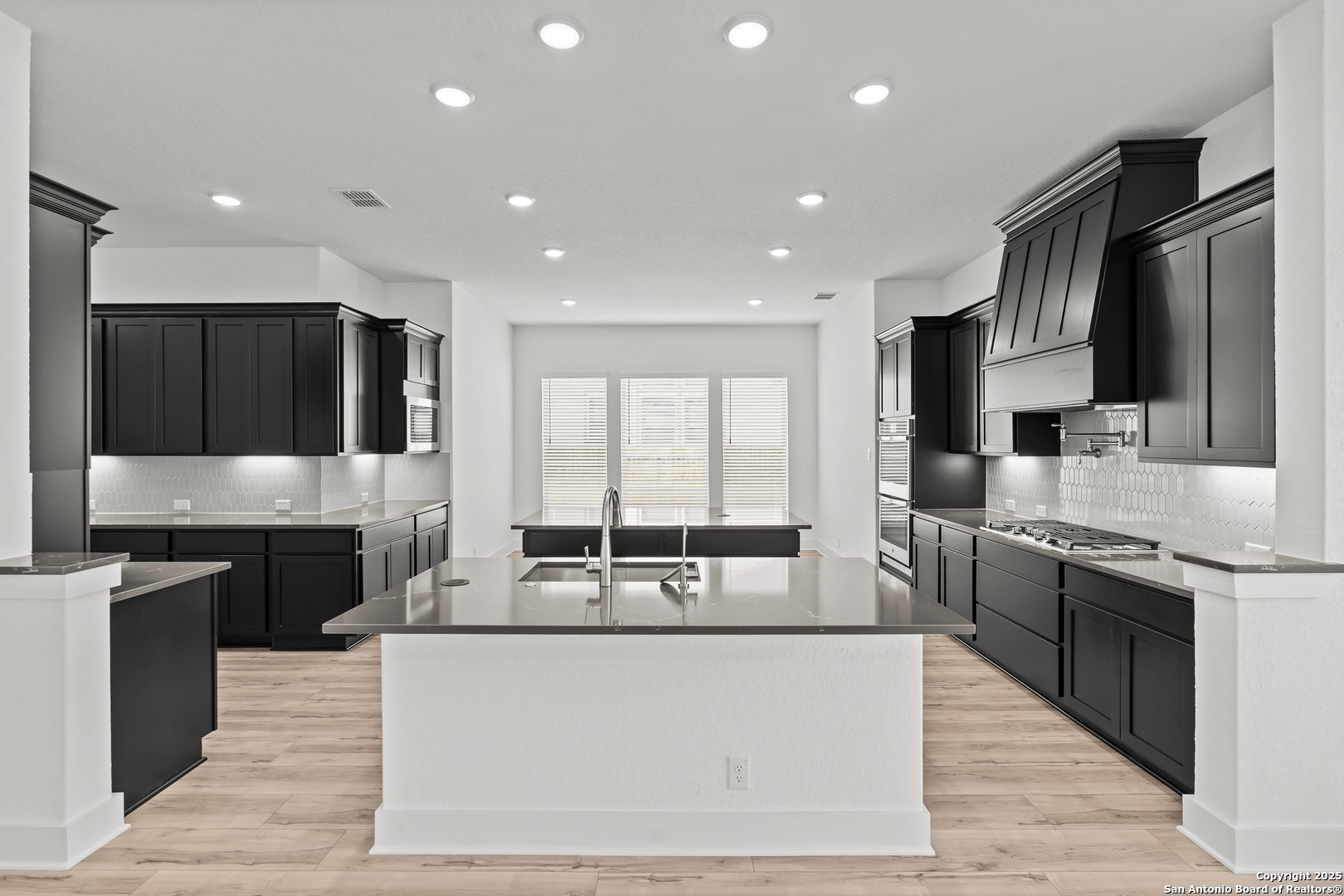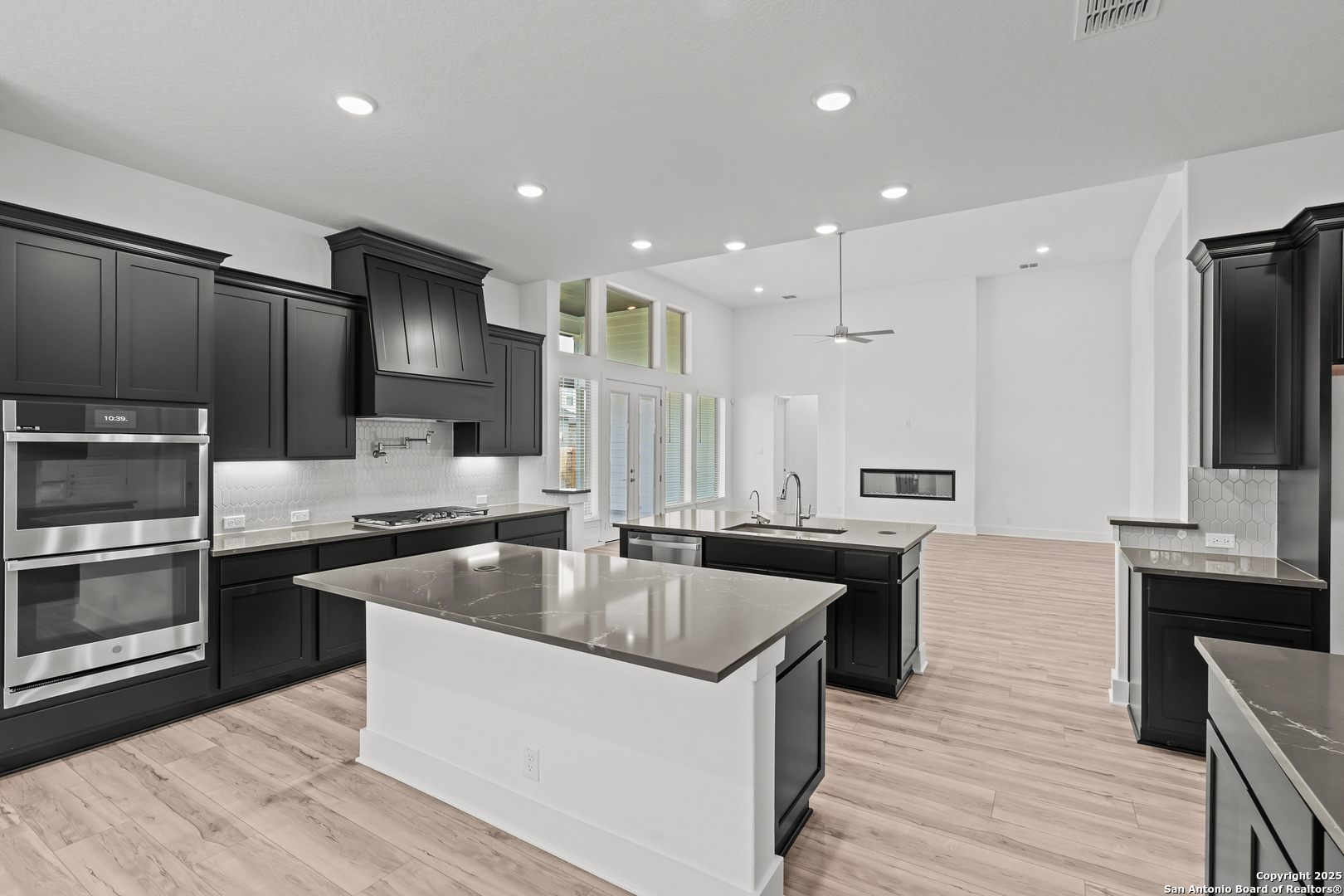 Move in Ready! Step through the 8ft entry door into the grand foyer. This leads you into the very open family room and kitchen where there are double islands set aside from a dining room, allowing plenty of space for entertaining and feasting. The oversized sliding panel doors will take you from the family room to the oversized covered back patio where you can sit around the gas fireplace. The 3.5 car tandem garage will provide plenty of parking and storage space, so you'll always be able to upgrade your vehicles to something really fun!