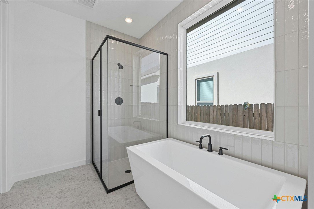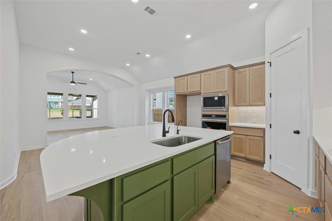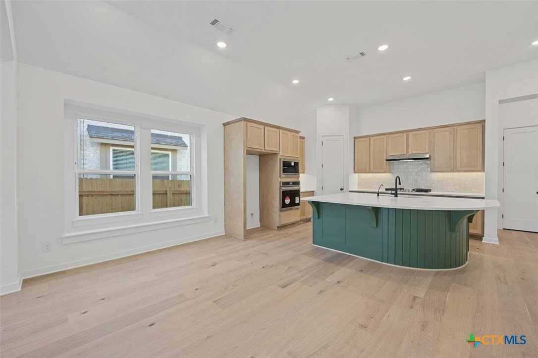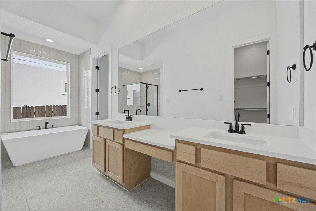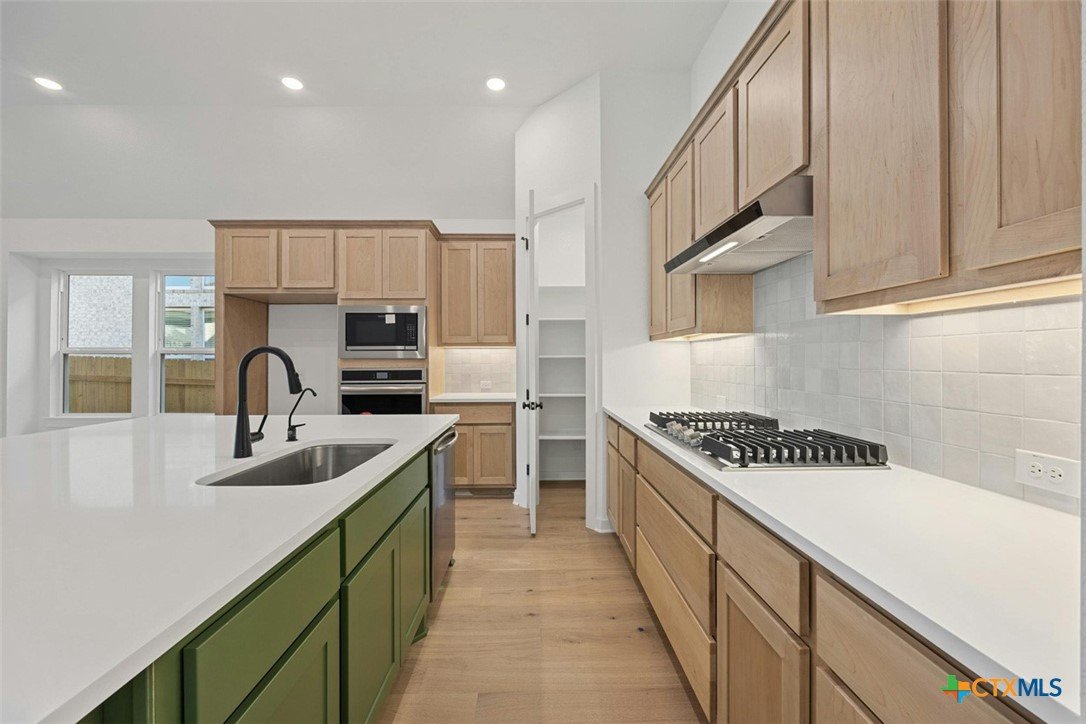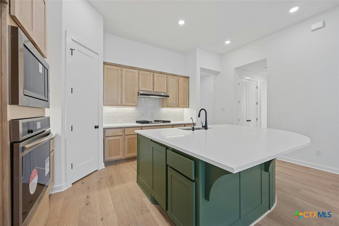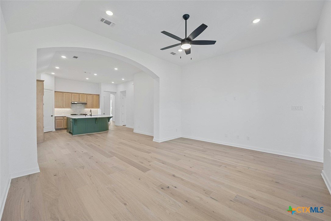 Popular Rover plan with four sides brick, 11’ ceilings and wood flooring in all common areas. Designer kitchen built in ss appliances, quartz countertops, under cabinet lighting and a filtered water loop. Primary bath has separate shower and rectangular freestanding tub. Tankless water heater and Smart Home technology. Gas drop at patio. Full sod and sprinkler system included!!!