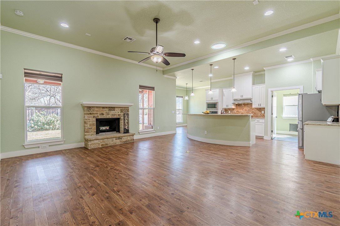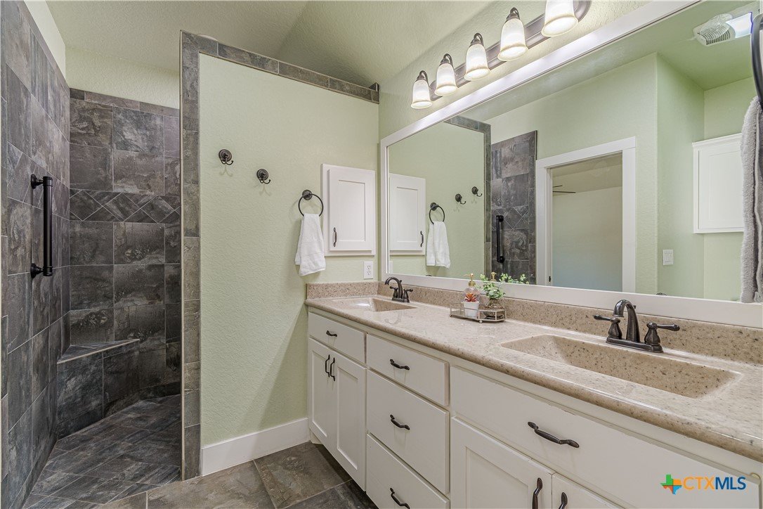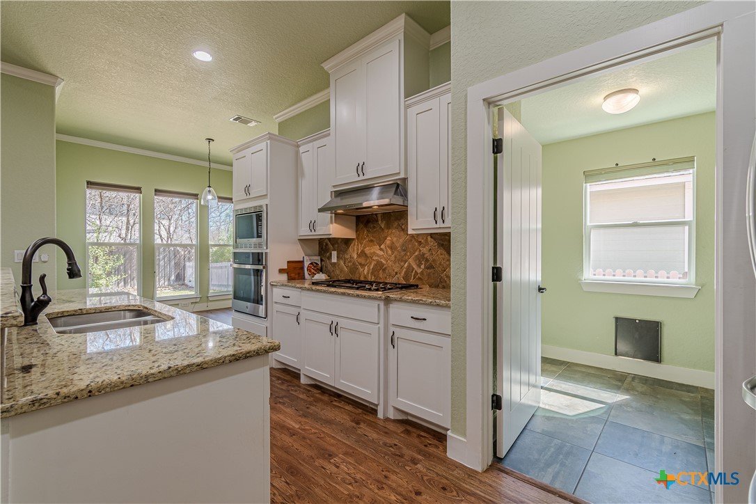 Discover this beautifully designed 4-bedroom, 3-bathroom home in the sought-after Gruene Courtyard subdivision of New Braunfels, TX! This open-concept layout features a spacious living area with a working fireplace, perfect for cozy evenings. The chef’s kitchen boasts granite countertops, upgraded appliances, and ample natural light. The primary suite is a retreat with a walk-in shower, double sink vanity, and a separate soaking tub. A secondary suite also includes a walk-in shower and a dual vanity, offering comfort for guests or family. Step outside to enjoy the backyard with a storage shed for added convenience. Unbeatable location just minutes from Gruene Hall, shopping, dining, and entertainment! Don't miss this rare find—schedule your showing today!