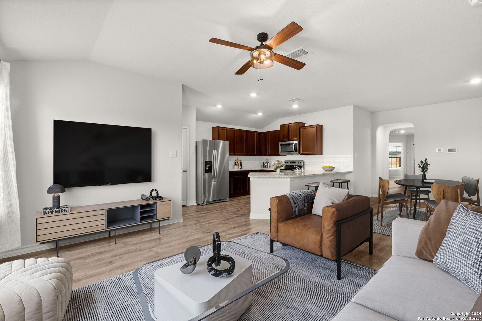 Beaming on Cypress Bayou - this one-story, Ranch-Style Home Near Nature & Parks could be yours! Welcome to this inviting home located in a prime spot near Crescent Bend Nature Park in Cibolo and Pickrell Park in Schertz, TX. Offering a perfect blend of comfort, style, and convenience, this property is a must-see for anyone seeking serene suburban living with modern touches. Enjoy cooking and entertaining in a beautifully designed kitchen featuring rich chocolate cabinets, sleek granite countertops, and a versatile peninsula island perfect for casual dining, or just a good place to hang out... cause everyone knows all guests end up in the kitchen hanging out! Nature lovers will appreciate the proximity to Crescent Bend Nature Park, perfect for hiking, bird-watching, and picnics. Families will enjoy the amenities at nearby Pickrell Park. Plus, the home is conveniently located near schools, shopping, and dining options. Don't miss the opportunity to make this charming ranch-style home your own. Schedule a viewing today and experience the perfect balance of comfort, convenience, and natural beauty!