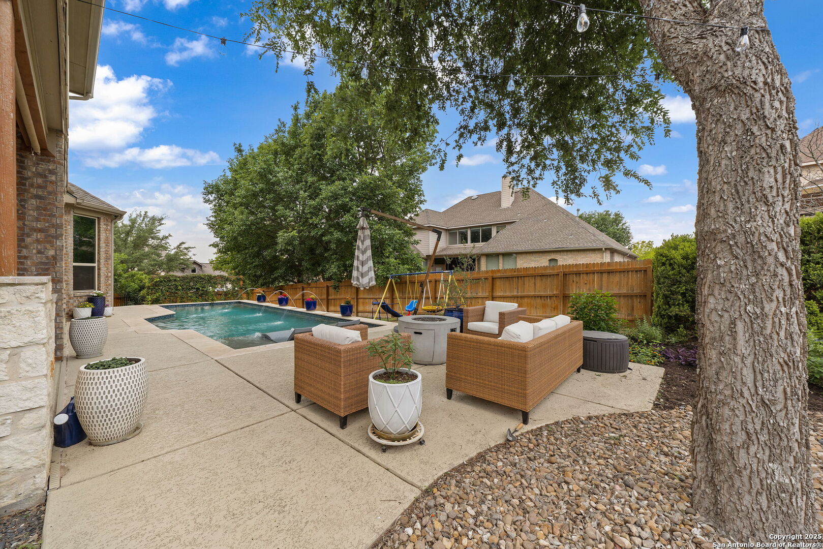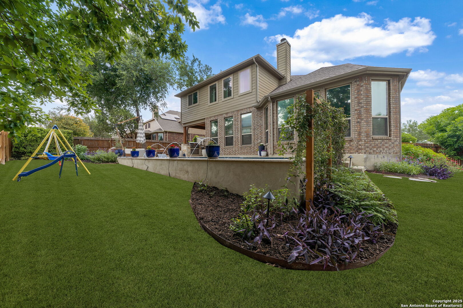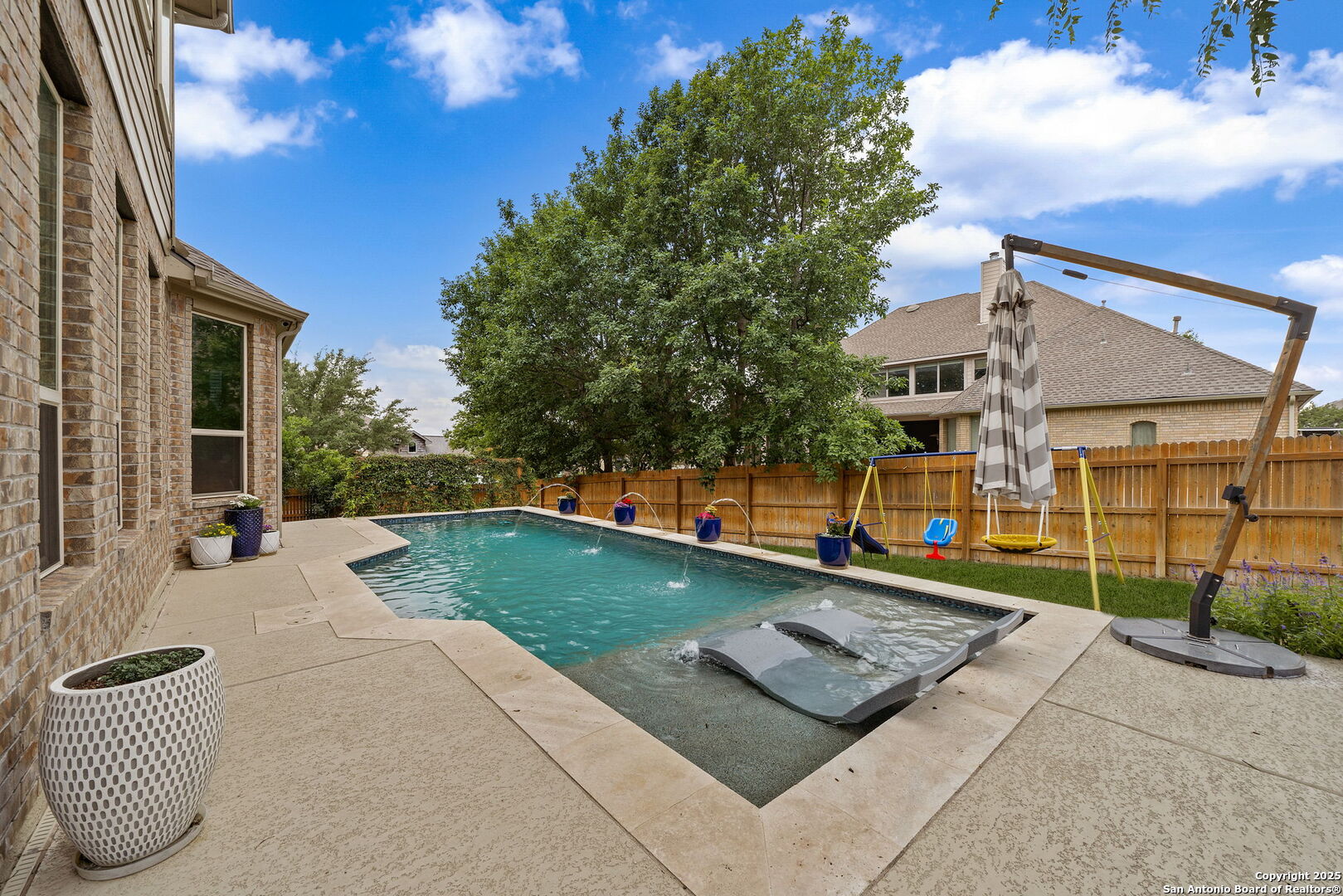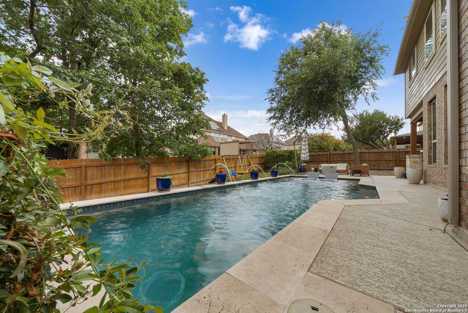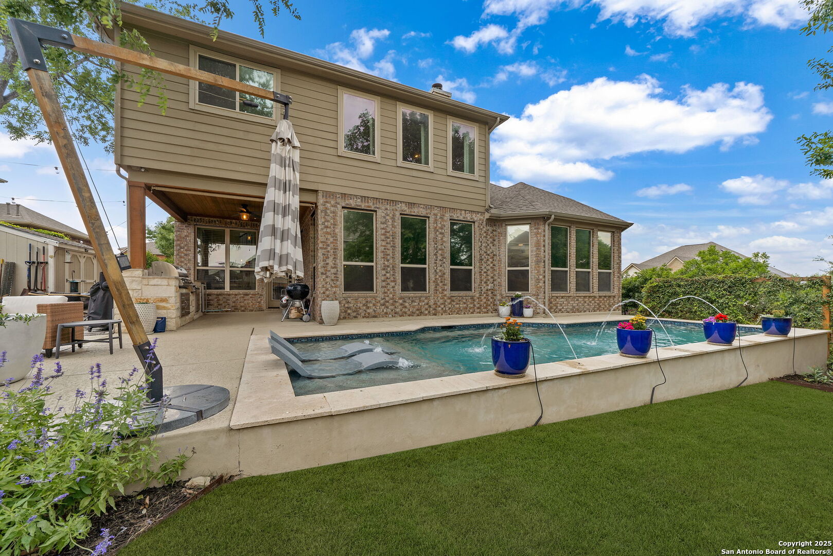 MULTIPLE OFFERS PLEASE SUBMIT HIGHEST AND BEST BEFORE 5:00 ON MONDAY MAY 5, 2025! DISCOVER this beautiful home in the gated community of The Summit at Alamo Ranch. An open floorplan, 3059 sq ft., high ceilings, an impressive grand familyroom with a cozy fireplace to snuggle by on those cold winter nights. The gourmet kitchen has gas cooking and beautiful granite countertops with a large island and seating, perfect for entertaining guests. Two dining areas- a large formal dining for entertaing and celebrations and a cozy dining area with space for a breakfast table. The primary bedroom suite has impressive windows throughout. The luxurious primary bath has a definte spa-like feel for enjoying a long relaxing bath. Thoughtfully designed, the laundry room is right off the huge primary closet. There is also a substantial office with decorative built-in shelving. Upstairs is a picturesque loft that overlooks the downstairs with amazing possibilities for a gameroom, playroom, craft room, or additional entertainment room. Three bedrooms up with two full bathrooms, there is plenty of space to enjoy and grow into. Outside, the parklike backyard offers something for everyone: An outdoor kitchen for BBQ's, an amazing pool with water features, outdoor lighting and a pool deck. Playset and space for outdoor games and fun. Racedeck garage floors with Kobalt Cabinets in this 3 car garage. WAIT there is more. Soloar Panels for savings on your energy bills, Alamo water softener, Lutron smart switches, Nest thermostats...DO NOT MISS OUT... WELCOME HOME!