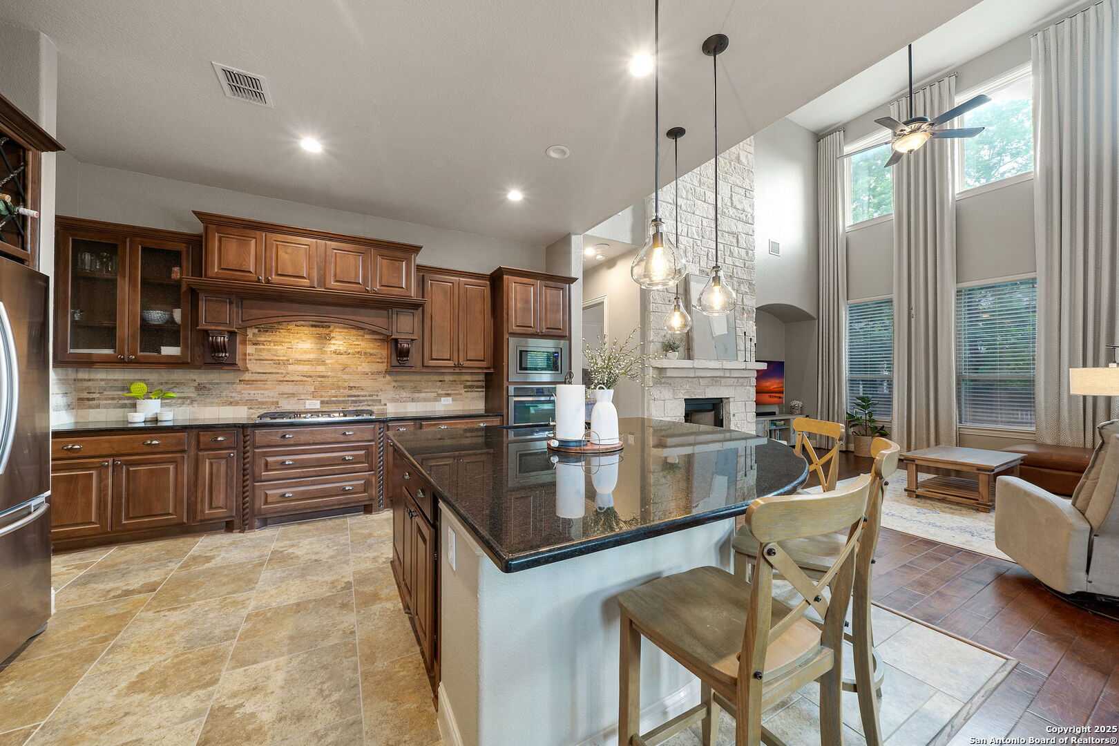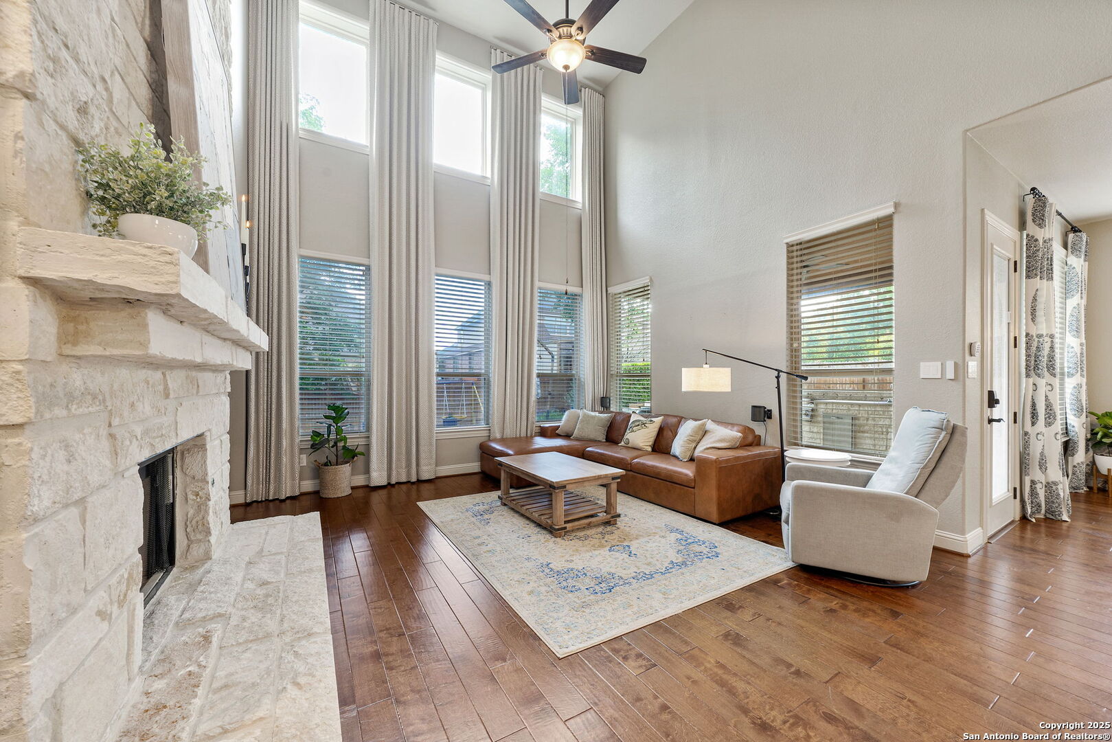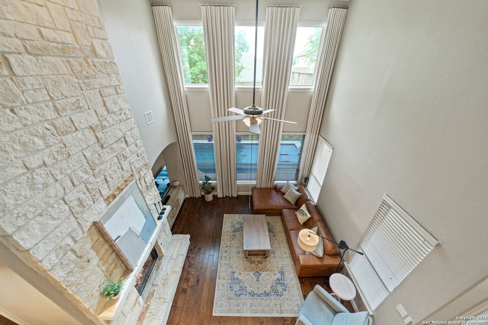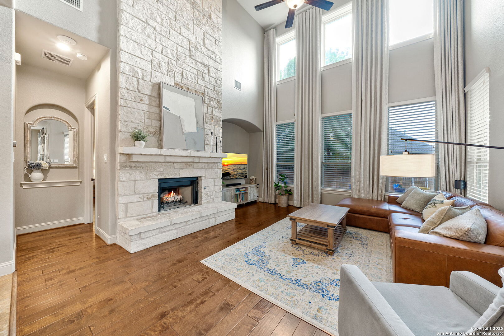 MULTIPLE OFFERS PLEASE SUBMIT HIGHEST AND BEST BEFORE 5:00 ON MONDAY MAY 5, 2025! DISCOVER this beautiful home in the gated community of The Summit at Alamo Ranch. An open floorplan, 3059 sq ft., high ceilings, an impressive grand familyroom with a cozy fireplace to snuggle by on those cold winter nights. The gourmet kitchen has gas cooking and beautiful granite countertops with a large island and seating, perfect for entertaining guests. Two dining areas- a large formal dining for entertaing and celebrations and a cozy dining area with space for a breakfast table. The primary bedroom suite has impressive windows throughout. The luxurious primary bath has a definte spa-like feel for enjoying a long relaxing bath. Thoughtfully designed, the laundry room is right off the huge primary closet. There is also a substantial office with decorative built-in shelving. Upstairs is a picturesque loft that overlooks the downstairs with amazing possibilities for a gameroom, playroom, craft room, or additional entertainment room. Three bedrooms up with two full bathrooms, there is plenty of space to enjoy and grow into. Outside, the parklike backyard offers something for everyone: An outdoor kitchen for BBQ's, an amazing pool with water features, outdoor lighting and a pool deck. Playset and space for outdoor games and fun. Racedeck garage floors with Kobalt Cabinets in this 3 car garage. WAIT there is more. Soloar Panels for savings on your energy bills, Alamo water softener, Lutron smart switches, Nest thermostats...DO NOT MISS OUT... WELCOME HOME!