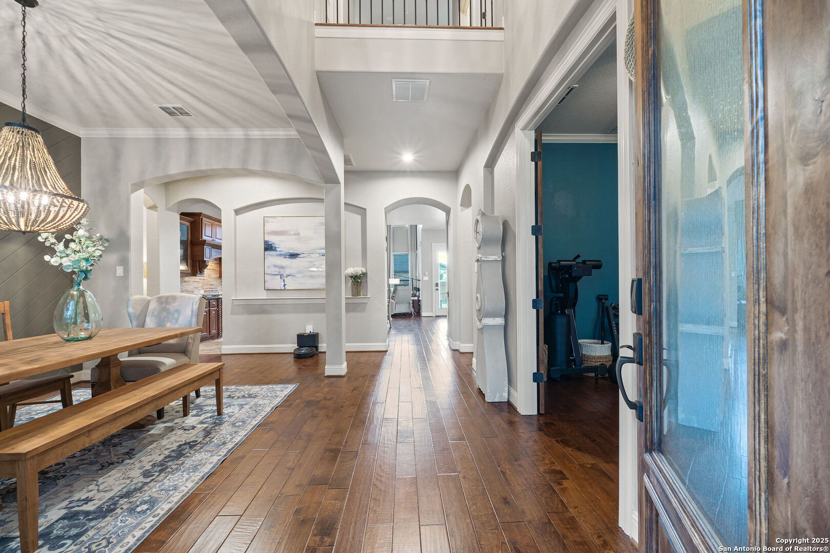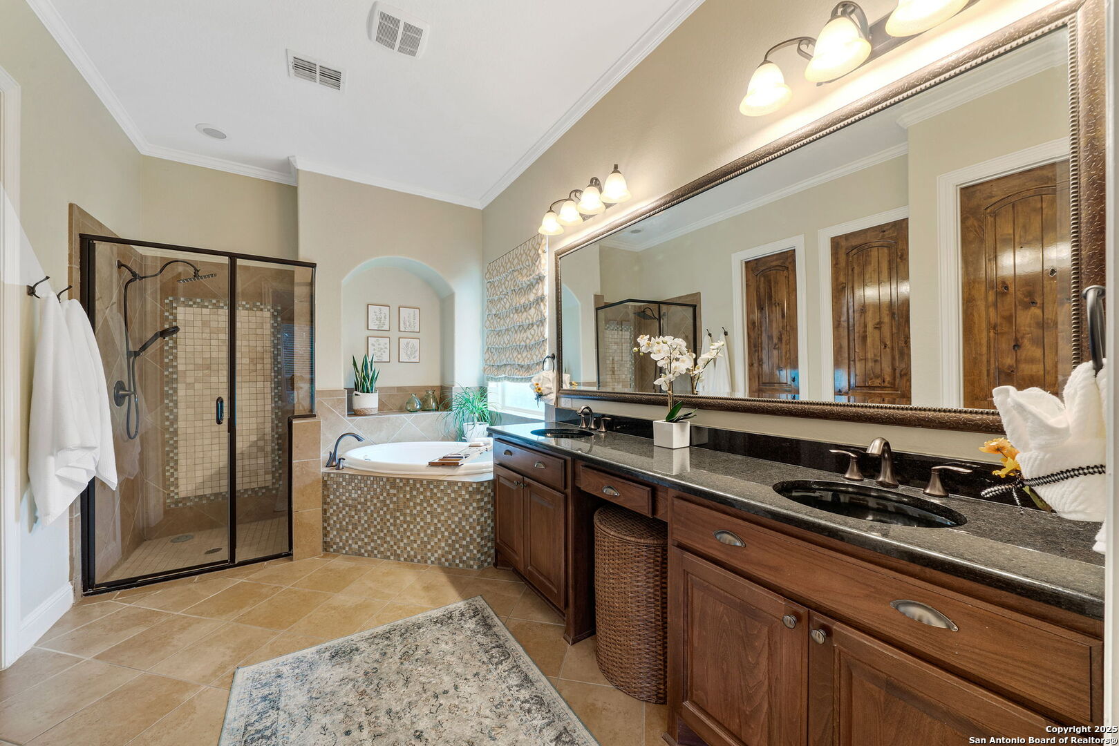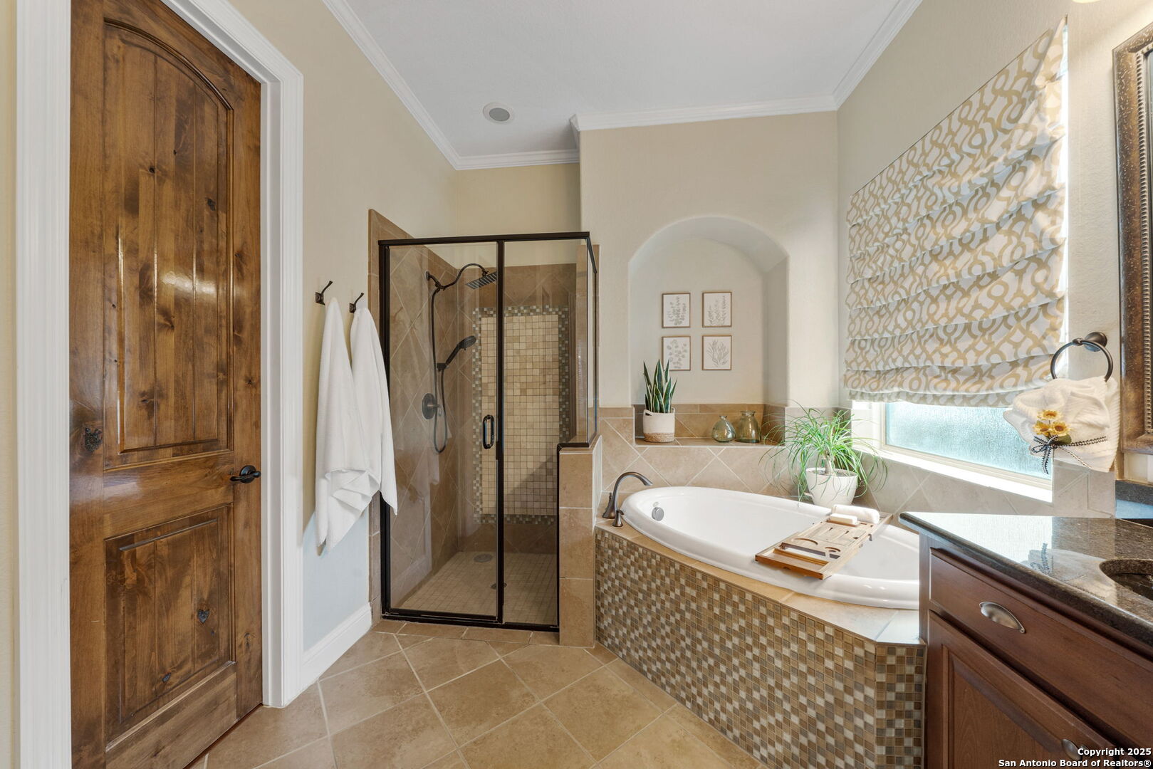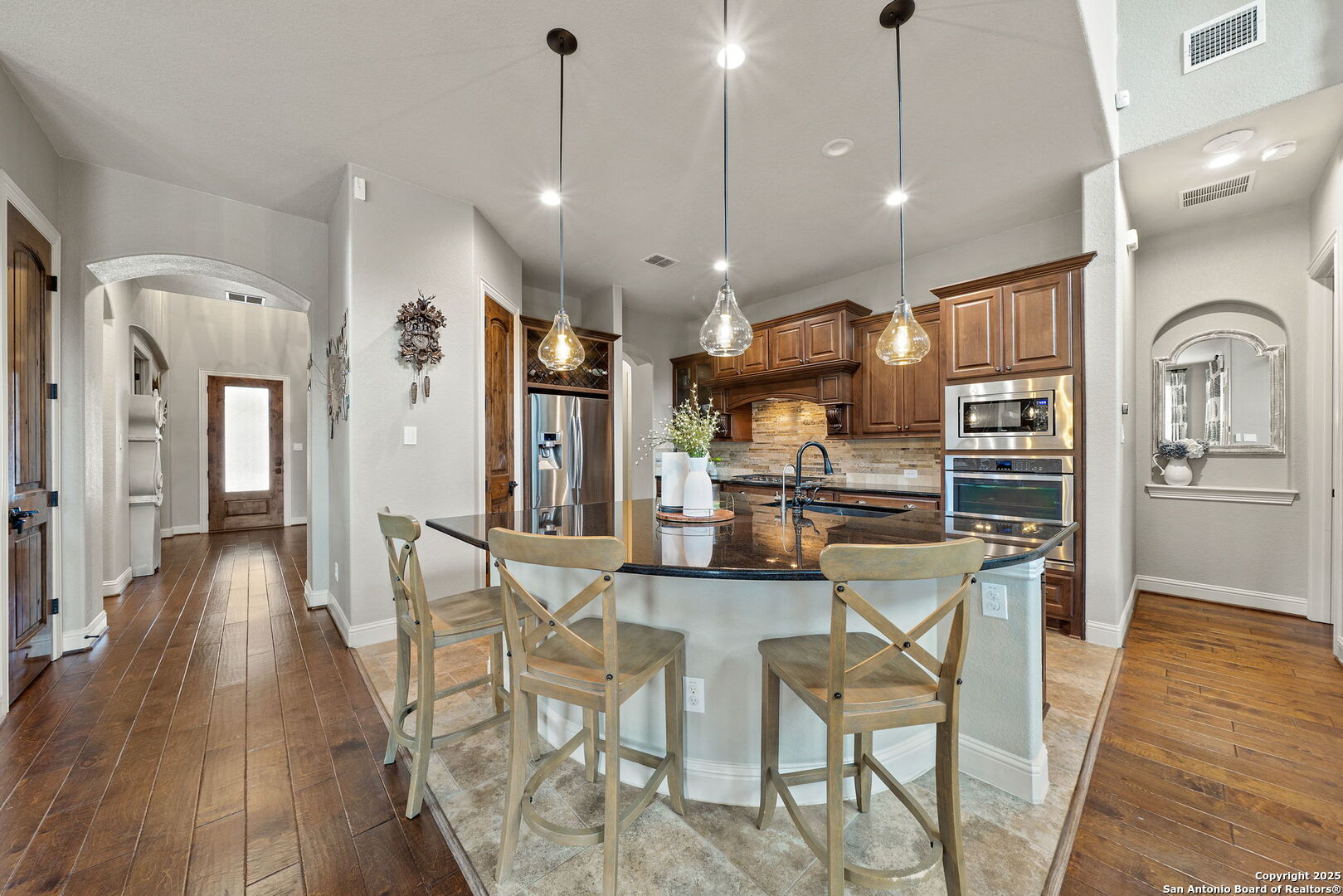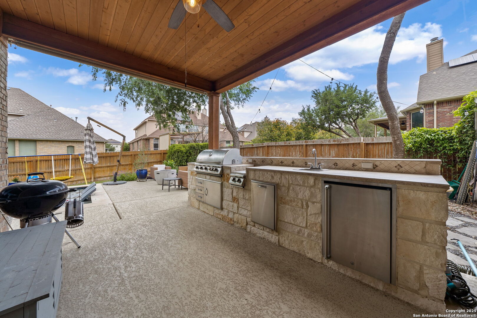 MULTIPLE OFFERS PLEASE SUBMIT HIGHEST AND BEST BEFORE 5:00 ON MONDAY MAY 5, 2025! DISCOVER this beautiful home in the gated community of The Summit at Alamo Ranch. An open floorplan, 3059 sq ft., high ceilings, an impressive grand familyroom with a cozy fireplace to snuggle by on those cold winter nights. The gourmet kitchen has gas cooking and beautiful granite countertops with a large island and seating, perfect for entertaining guests. Two dining areas- a large formal dining for entertaing and celebrations and a cozy dining area with space for a breakfast table. The primary bedroom suite has impressive windows throughout. The luxurious primary bath has a definte spa-like feel for enjoying a long relaxing bath. Thoughtfully designed, the laundry room is right off the huge primary closet. There is also a substantial office with decorative built-in shelving. Upstairs is a picturesque loft that overlooks the downstairs with amazing possibilities for a gameroom, playroom, craft room, or additional entertainment room. Three bedrooms up with two full bathrooms, there is plenty of space to enjoy and grow into. Outside, the parklike backyard offers something for everyone: An outdoor kitchen for BBQ's, an amazing pool with water features, outdoor lighting and a pool deck. Playset and space for outdoor games and fun. Racedeck garage floors with Kobalt Cabinets in this 3 car garage. WAIT there is more. Soloar Panels for savings on your energy bills, Alamo water softener, Lutron smart switches, Nest thermostats...DO NOT MISS OUT... WELCOME HOME!
