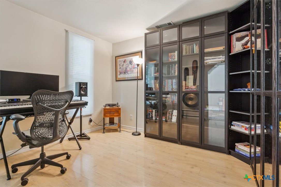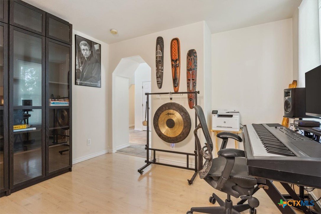 2.3 assumable loan. Welcome to this uniquely designed 3-bedroom, 2.5-bath home in Belton ISD, nestled on a spacious 0.8-acre lot. This versatile property features a dedicated office, an open loft, and an additional bedroom located just beyond the stairs—ideal for guests or a quiet retreat. The third bay of the garage has been converted into a sound-insulated music studio, offering creative potential or easy conversion back to a full 3-car garage. Enjoy the privacy of a fenced backyard complete with a covered patio, pergola, and a charming treehouse, all surrounded by mature trees. With its flexible layout, outdoor amenities, and prime location, this home offers comfort, character, and room to grow.