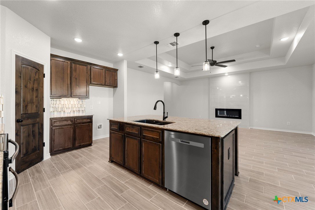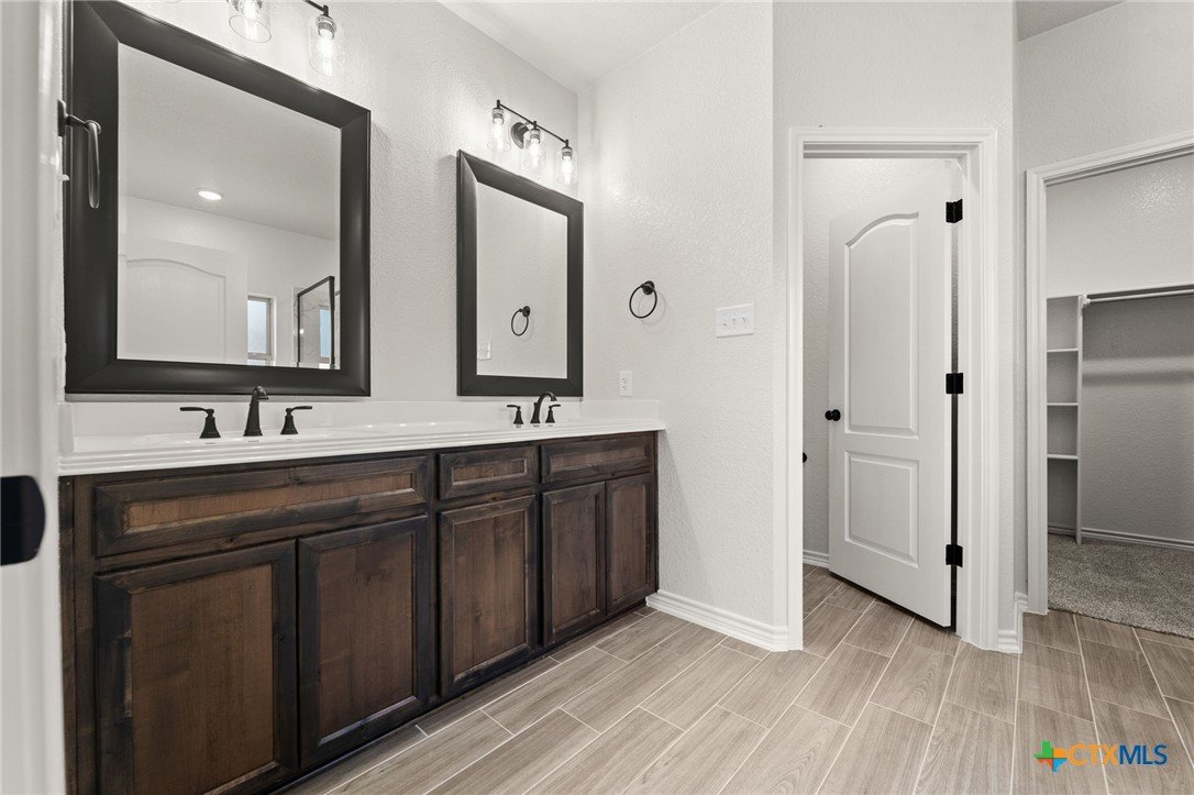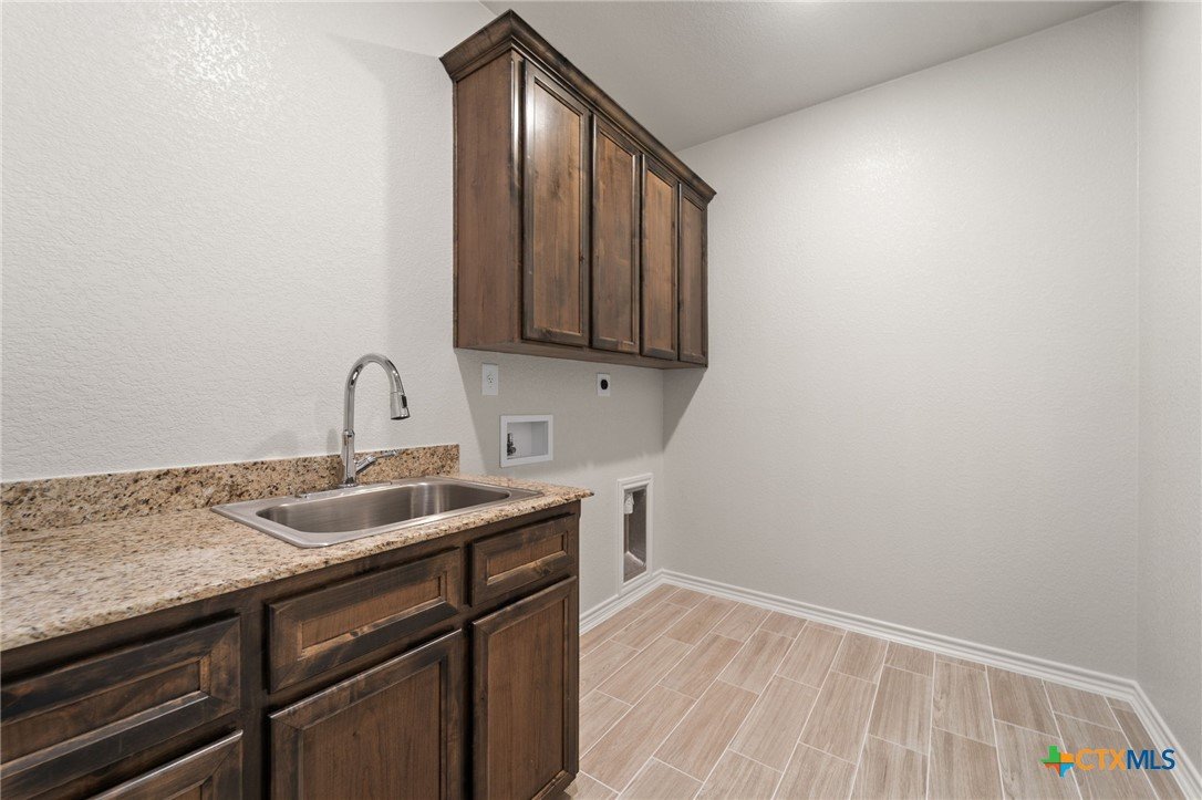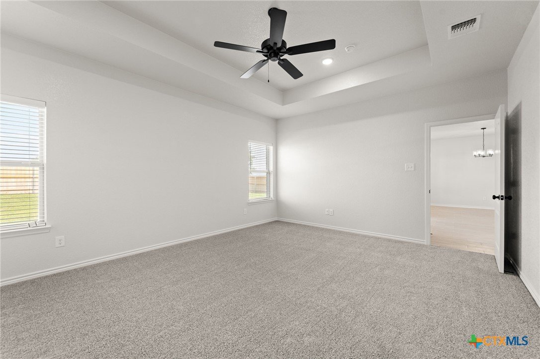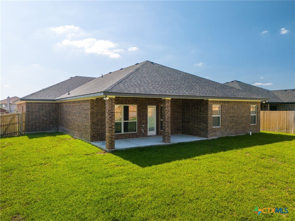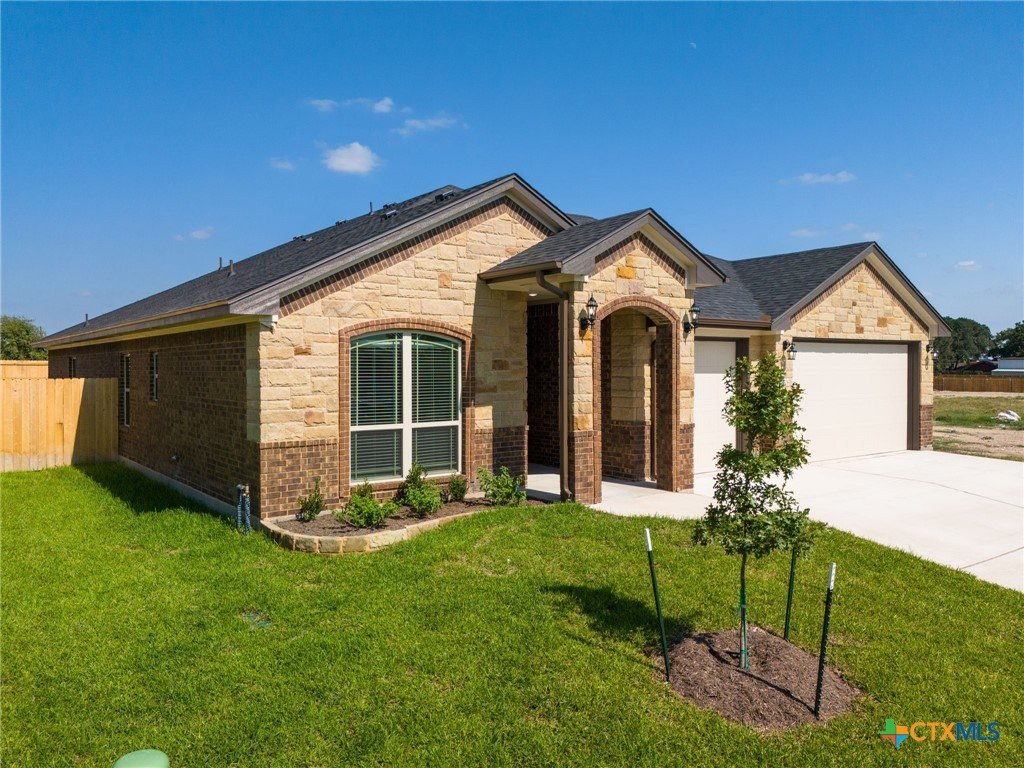 The Bellagio floorplan by Carothers Homes welcomes you home with a beautiful foyer, setting the tone for the charm that flows throughout. This spacious open layout is highlighted by a large living room with a beautiful fireplace. The kitchen features a large island that seamlessly connects the living area and breakfast nook, offering granite countertops, a tiled backsplash, and a walk-in pantry. The master bedroom is complemented by a generously sized private bathroom, featuring a walk-in closet, garden tub, walk-in shower, and dual vanities. The mother-in-law suite includes a private bath with a walk-in shower and a closet. Two additional bedrooms are generously sized and provide ample closet space. Additional features of this home, including a covered patio, privacy fence, front and back sod, and a sprinkler system, are standard with every Carothers Home.
