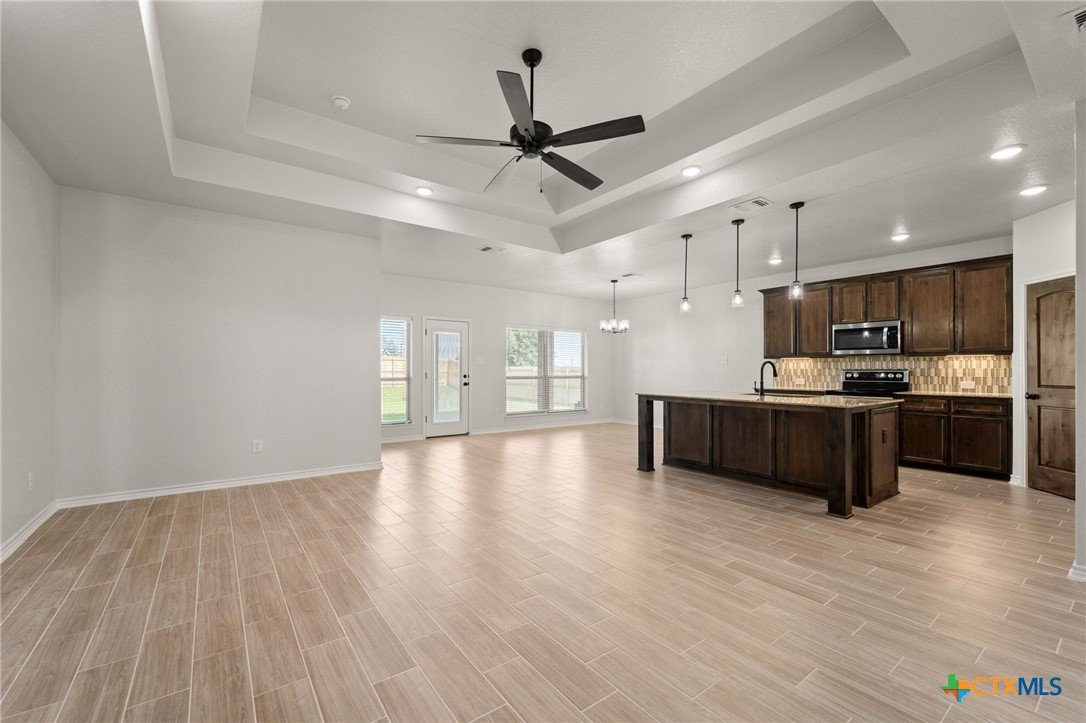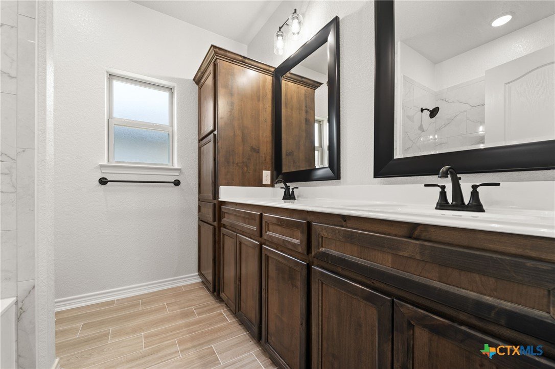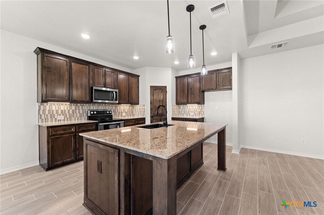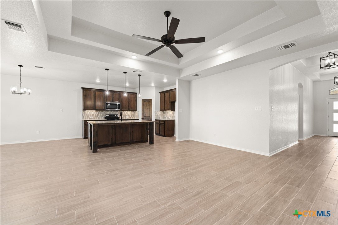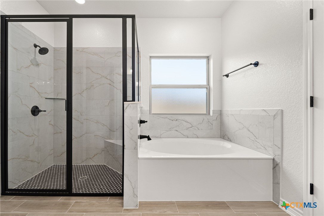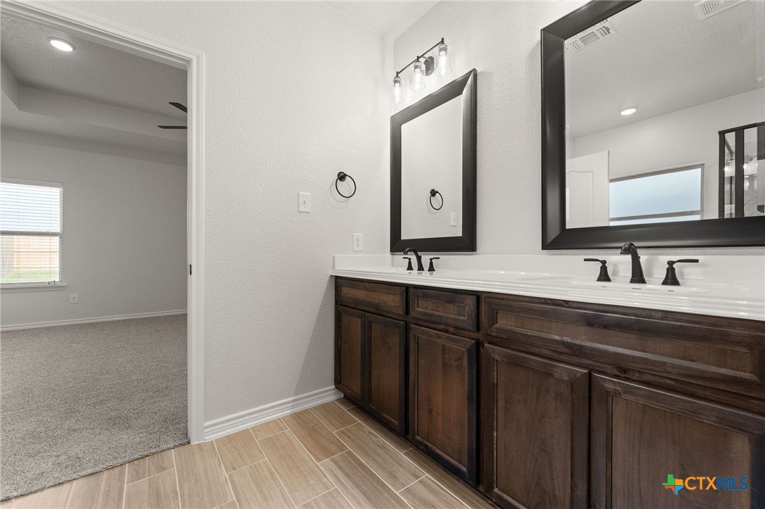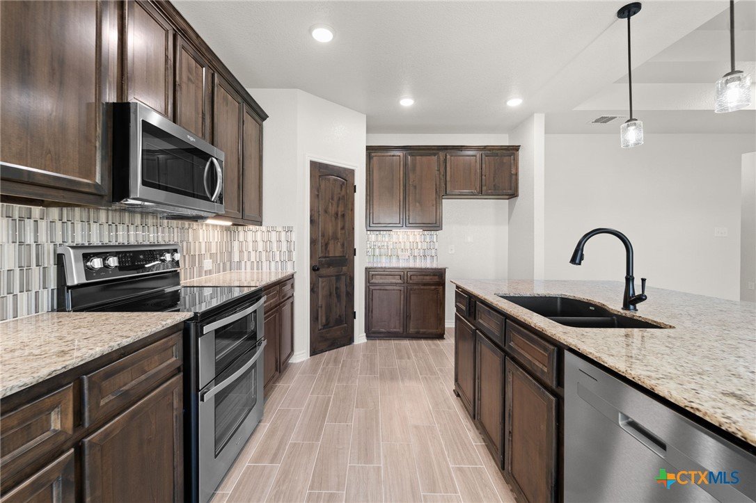 The Bellagio floorplan by Carothers Homes welcomes you home with a beautiful foyer, setting the tone for the charm that flows throughout. This spacious open layout is highlighted by a large living room with a beautiful fireplace. The kitchen features a large island that seamlessly connects the living area and breakfast nook, offering granite countertops, a tiled backsplash, and a walk-in pantry. The master bedroom is complemented by a generously sized private bathroom, featuring a walk-in closet, garden tub, walk-in shower, and dual vanities. The mother-in-law suite includes a private bath with a walk-in shower and a closet. Two additional bedrooms are generously sized and provide ample closet space. Additional features of this home, including a covered patio, privacy fence, front and back sod, and a sprinkler system, are standard with every Carothers Home.