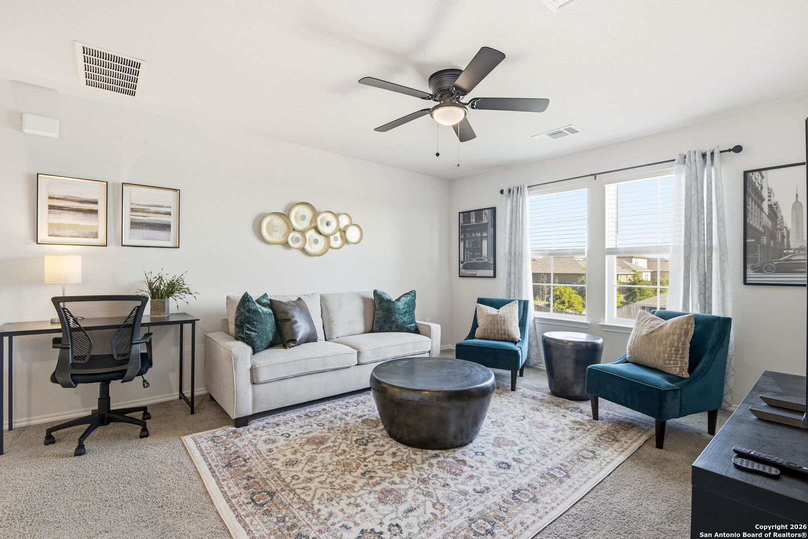 FULLY Furnished!! Located in the beautiful Riverstone at Westpointe community, this gorgeous air-conditioned home built in December 2023 is perfect for you! This 3-bedroom home with a loft is perfect for a place for a professional needing an extended stay or long-term home which provides full furnishings including multiple TVs, a washer/dryer, Keurig and French Press Coffee makers, and a fully equipped kitchen with all appliances! Enjoy relaxing in the backyard, especially at night, with solar-powered lighting...it is a must-see! Not only will the home provide you with comfort and more, this community offers access to a water park with water slides, an Olympic-sized swimming pool, and a playground. Located outside of LP 1604, you have quick access to major universities, La Cantera, SeaWorld, and multiple military bases, including Camp Bullis and Lackland AFB. Tour this spectacular home today and apply to make it yours! 6 month lease options available!
