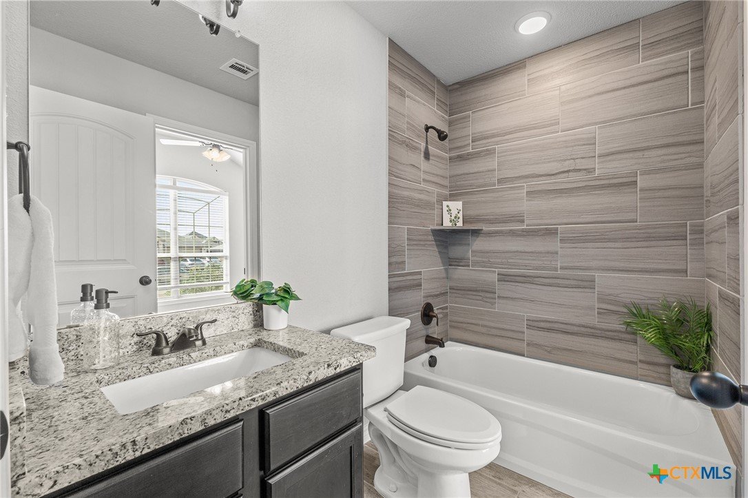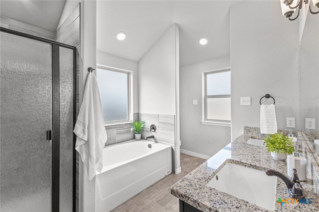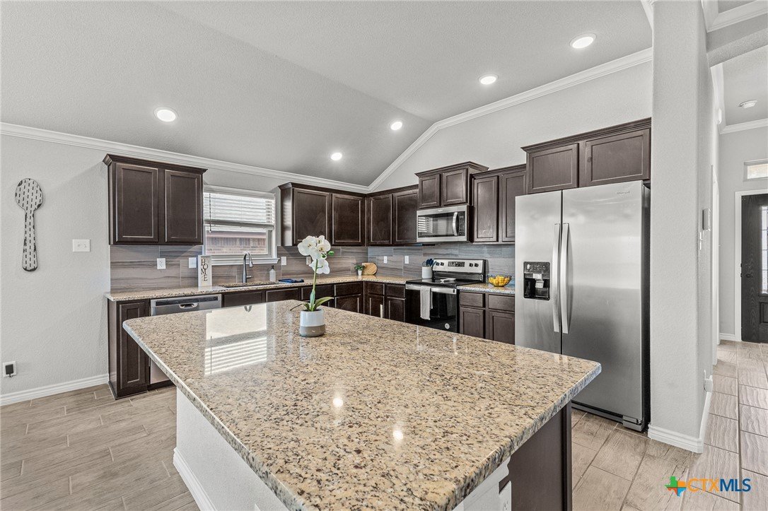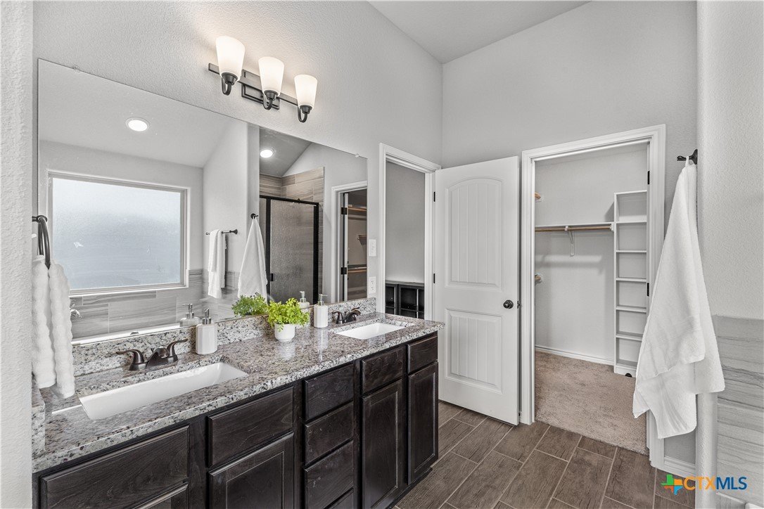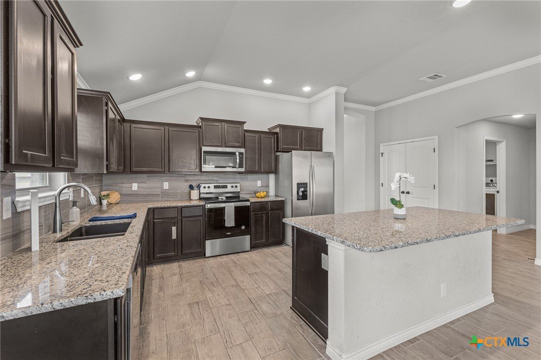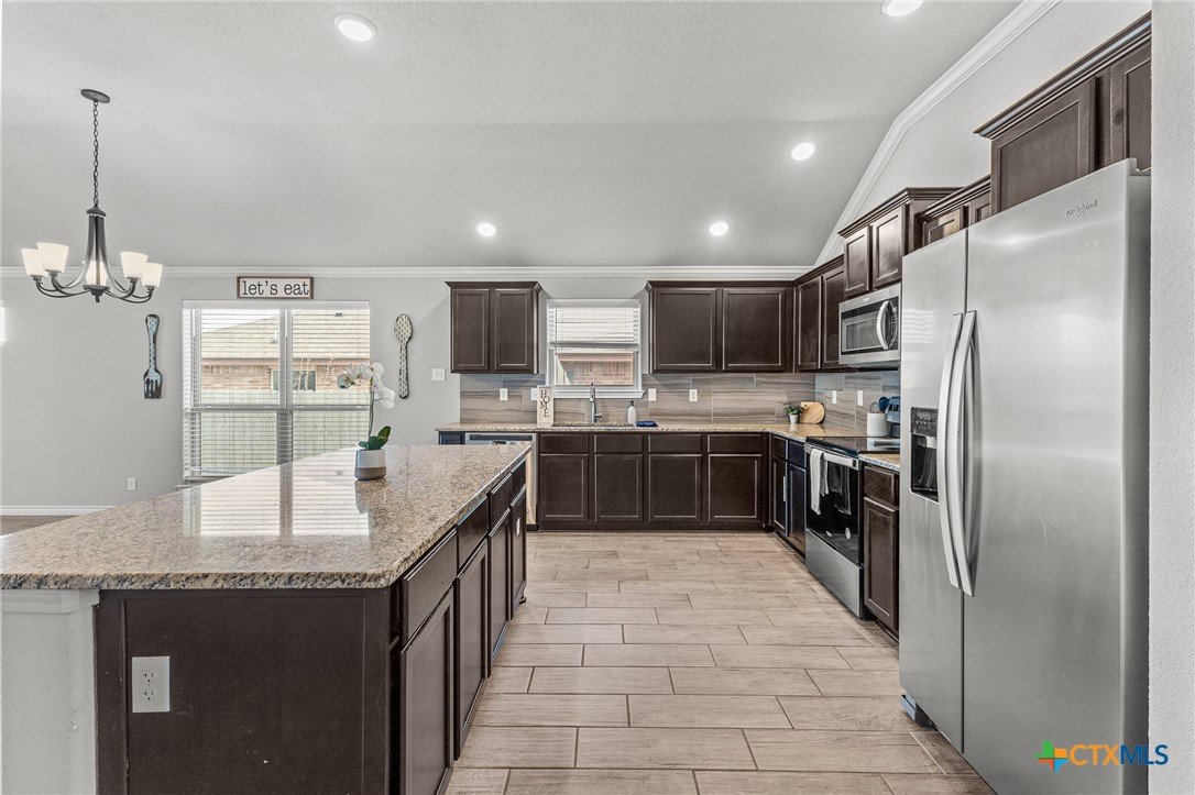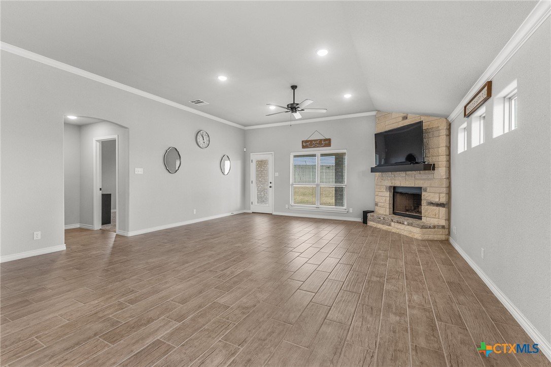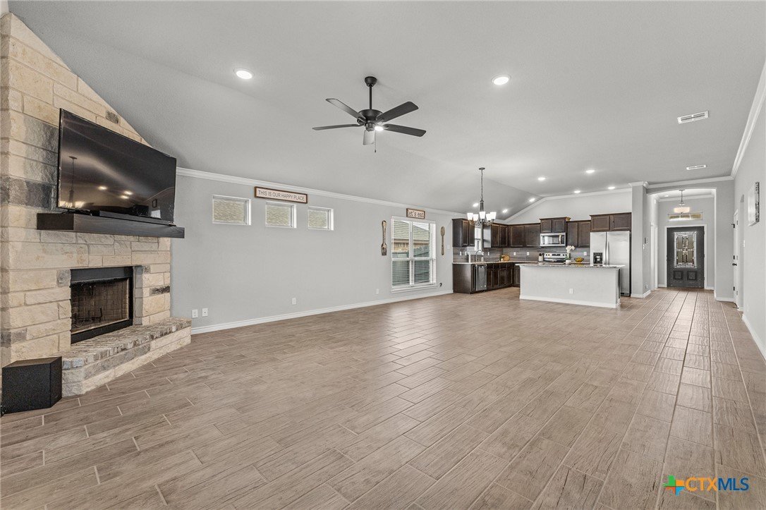 This stunning Luxor plan from Carothers is a 4 bed, 3 full bath home that boasts nearly 2400 sqft of thoughtfully designed living space. Step inside to an open-concept floor plan featuring a spacious kitchen with granite countertops, sleek stainless steel appliances, and ample storage. The inviting living room is highlighted by a cozy stone fireplace, perfect for gathering with loved ones. Generous-sized bedrooms ensure comfort for everyone, while the primary suite offers a luxurious retreat with a walk-in closet, dual vanities, and a soaking tub. The expansive backyard with a covered patio is ideal for relaxing evenings or weekend barbecues. Plus, solar panels provide excellent energy efficiency, helping you save on utility costs! Don't miss this beautiful home that offers comfort, style, and sustainability all in one. Contact us today to schedule your showing!