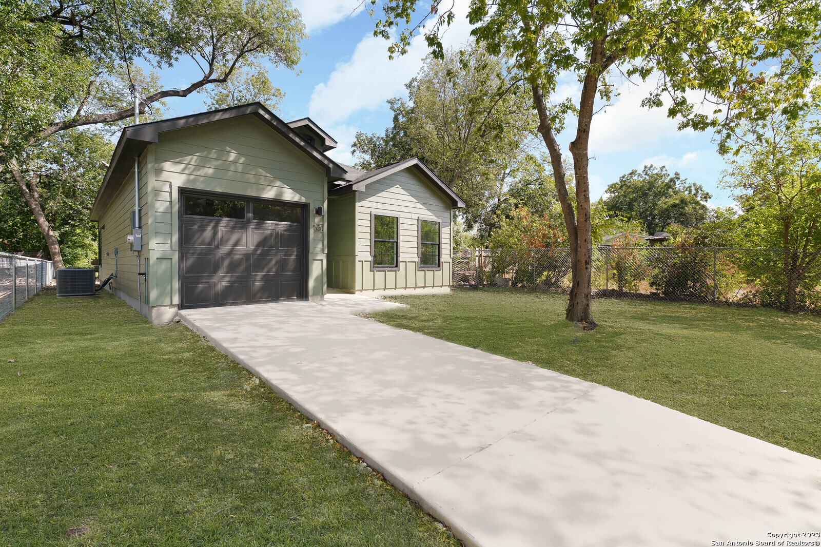 Newly built contemporary style home is located minutes from downtown and has easy access to Highway 90, Highway 37 & IH 35. It features 3 bedrooms & 2 full baths.The entire home has 9' ceilings and sealed concrete floors which make for easy care.The kitchen is open with lots of natural light and includes an island, stainless steel appliances, granite counter tops, recessed lighting, ceramic tile backsplash, and plenty of counter space.The one car garage measures 20 feet long and includes an electric car charger. You will surely enjoy the shaded and spacious fenced in backyard!