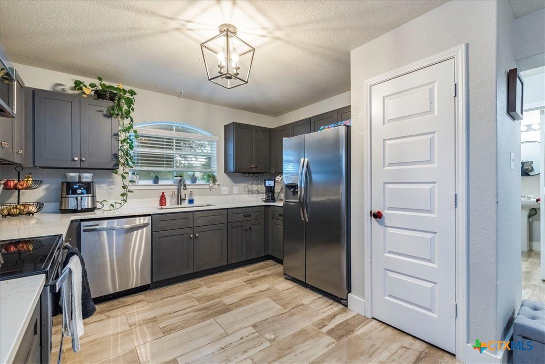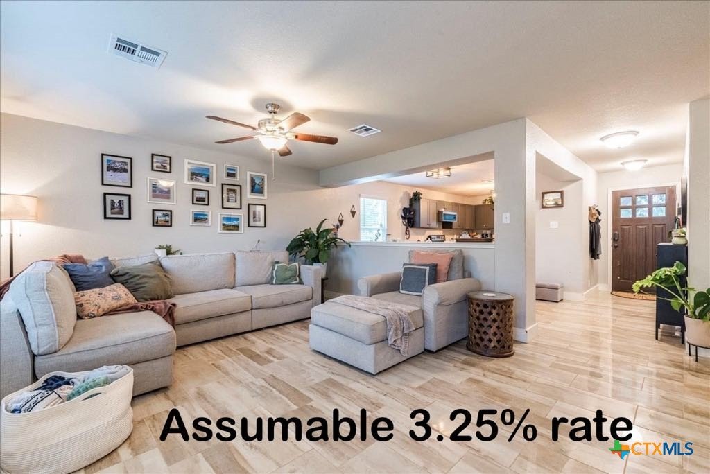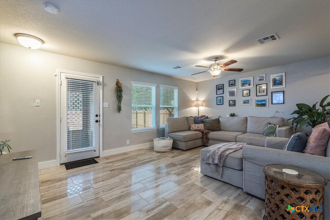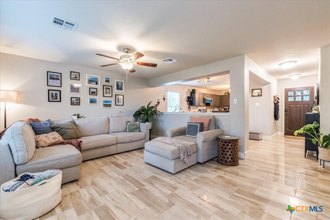 Step inside this adorable two-story home and feel instantly welcomed by the freshly upgraded porcelain tile flooring that flows throughout the main level. The spacious kitchen is a dream, featuring recently replaced cabinets, sleek quartz countertops, and all appliances included — fridge, washer, and dryer — offering a fantastic savings for the new homeowner. Upstairs, enjoy comfort and durability with new Lifeproof carpet featuring Petproof technology — perfect for families and furry friends alike. The fully fenced backyard has a brand-new privacy fence, creating a safe and serene outdoor space. A large screened-in porch connects the home to the garage, making it a great space for relaxing or entertaining. Ideally located near Freiheit Country Store, Creekside shopping, Buc-ee’s, restaurants, and all the charm New Braunfels has to offer!