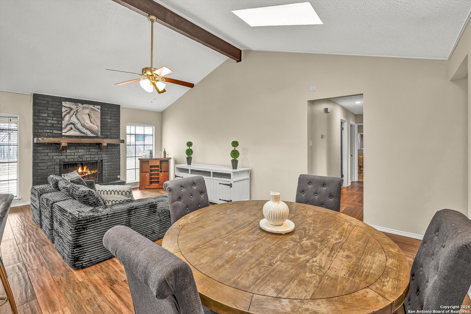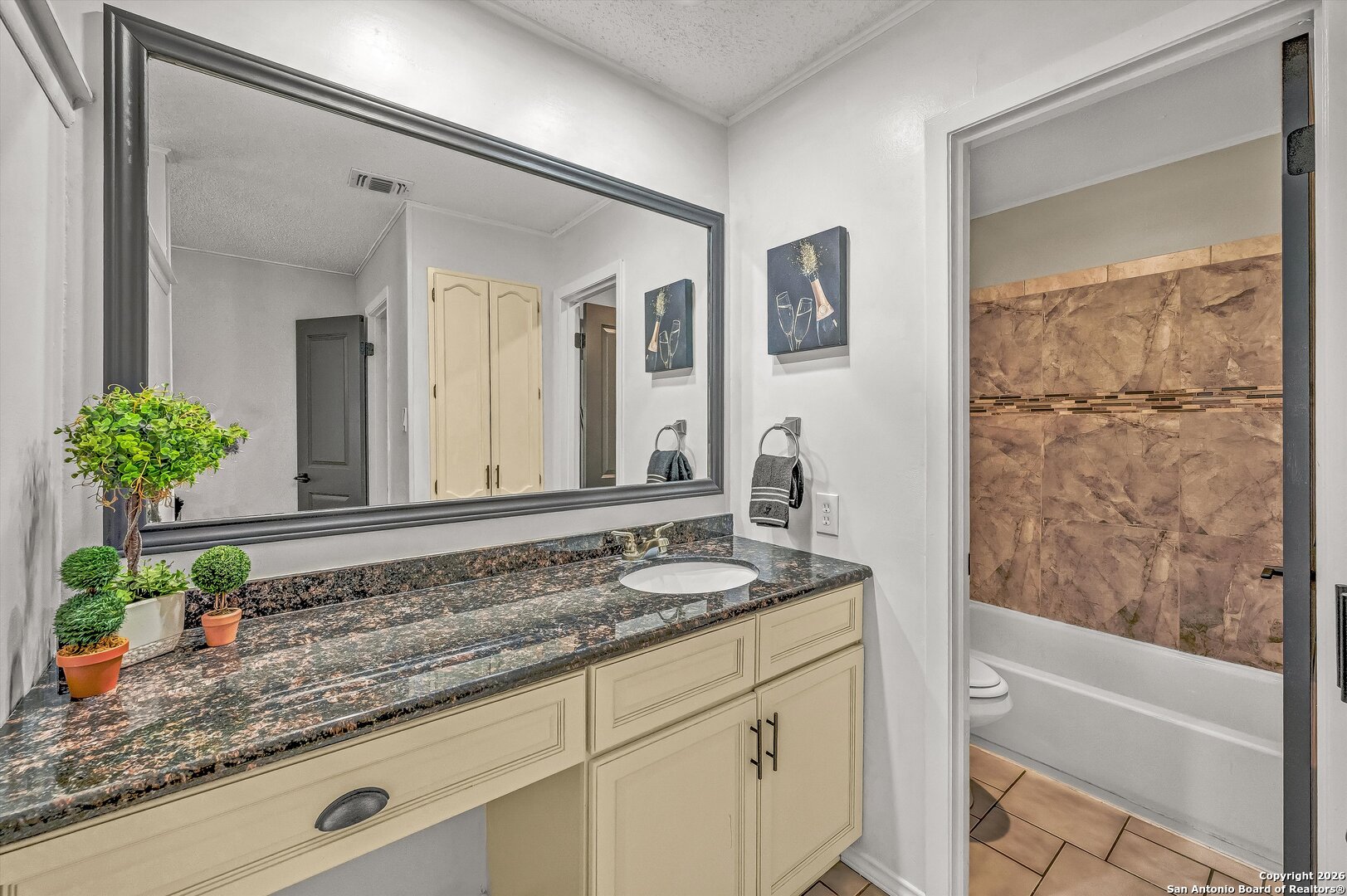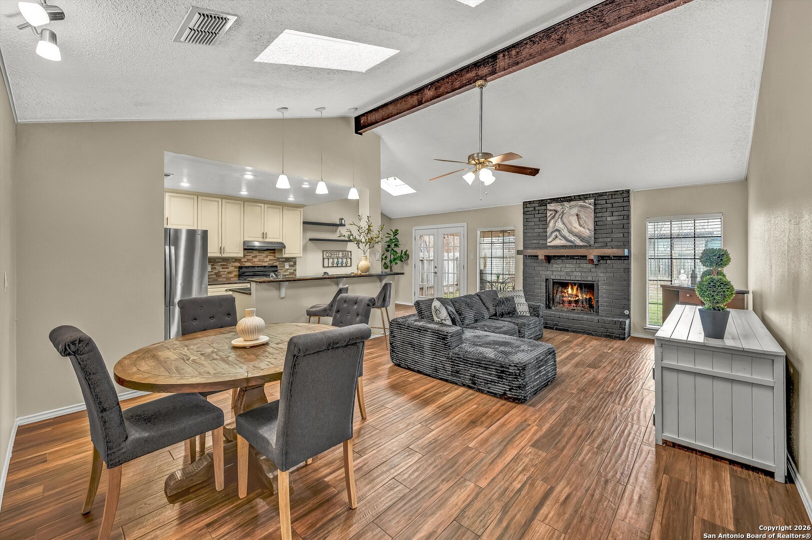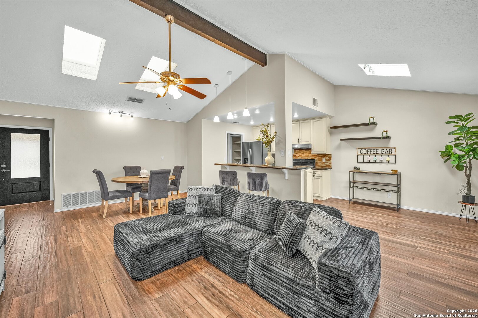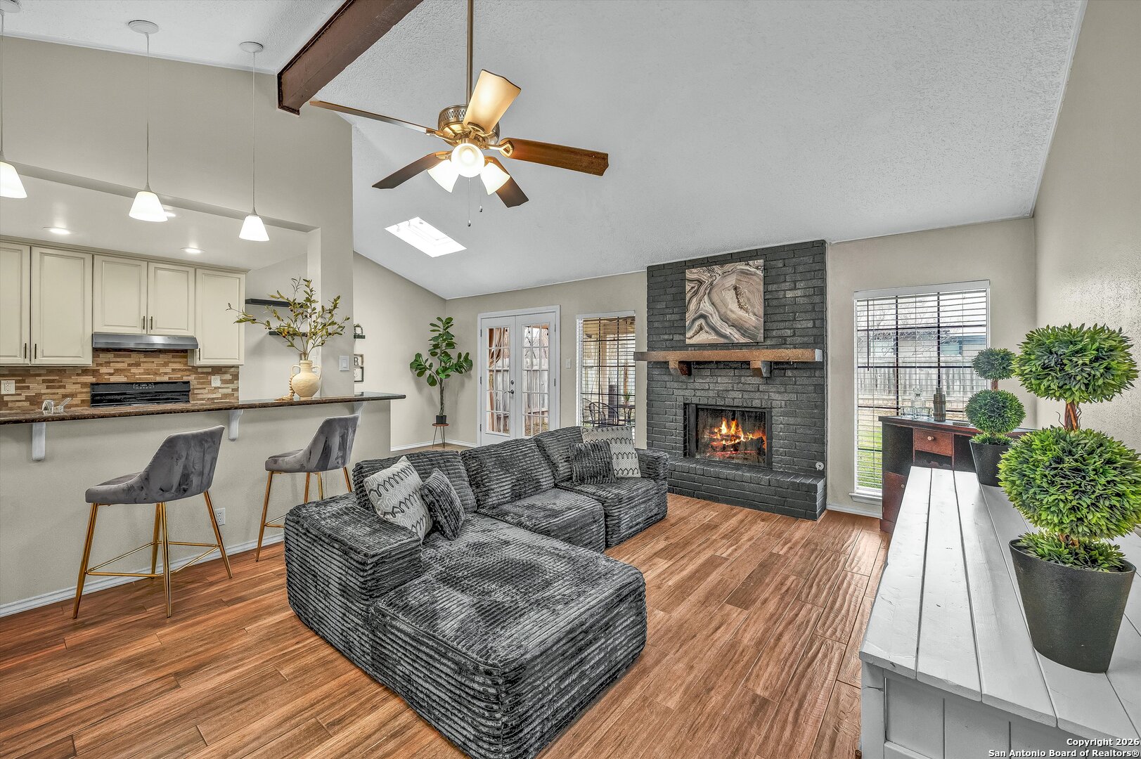 Cute and quaint updated home in a great location! This 3-bedroom, 2-bath home features a private primary suite with an attached bath and study/nursery, tile flooring in the main living areas, and bright skylights that fill the common areas with natural sunlight. Enjoy a covered patio with an extended area perfect for entertaining or barbecuing. Convenient highway access and zoned to NEISD schools make this home a must-see!