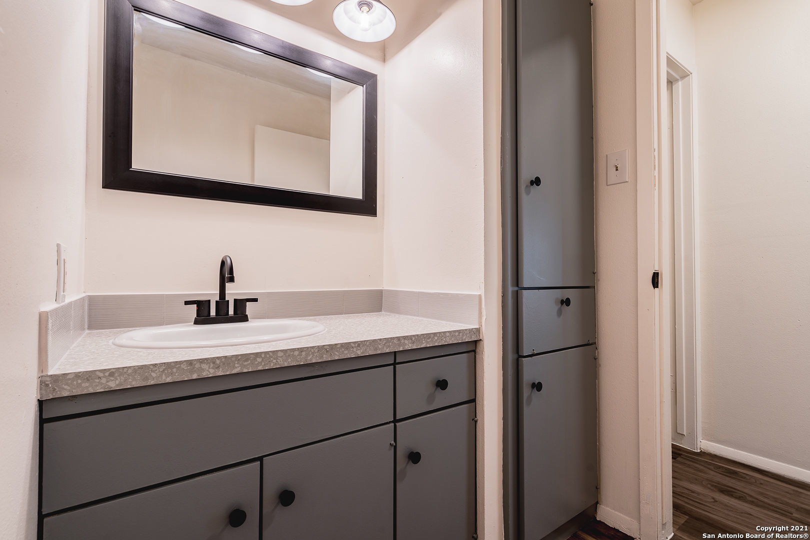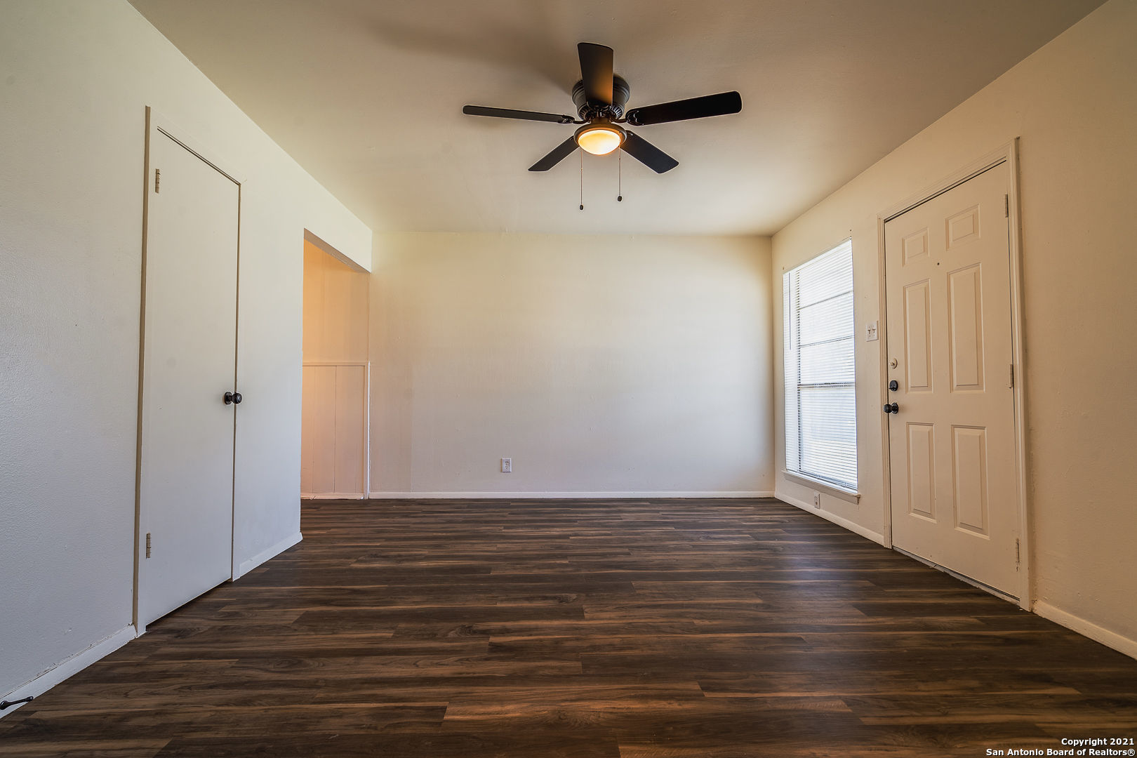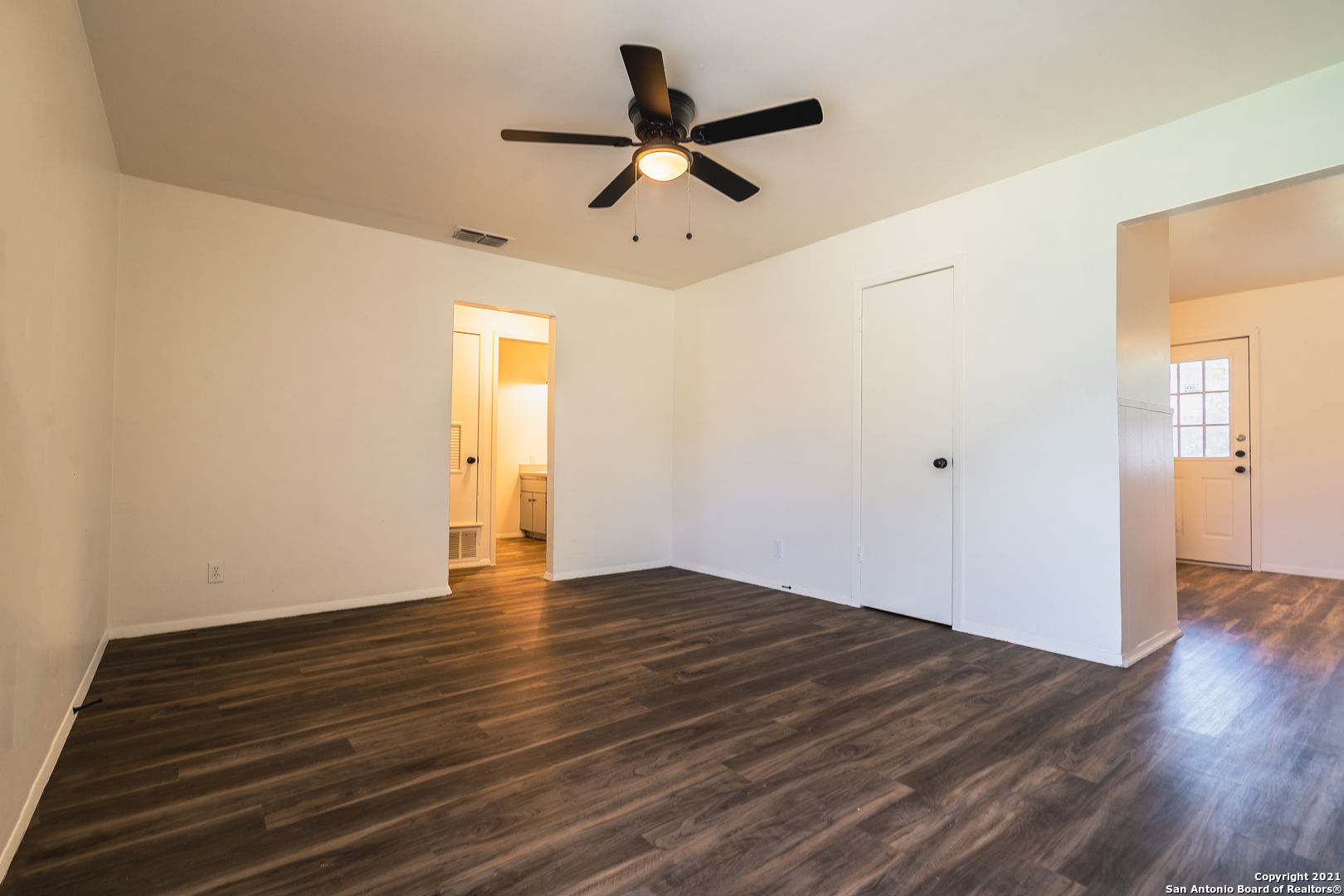This duplex offers 2 bedrooms and 2 full bathrooms with a practical floor plan and covered parking. The property includes a spacious backyard with mature trees and is conveniently located near Loop 410, Hwy 281, North Star Mall, and San Antonio International Airport. Please review application instruction and tenant selection criteria.