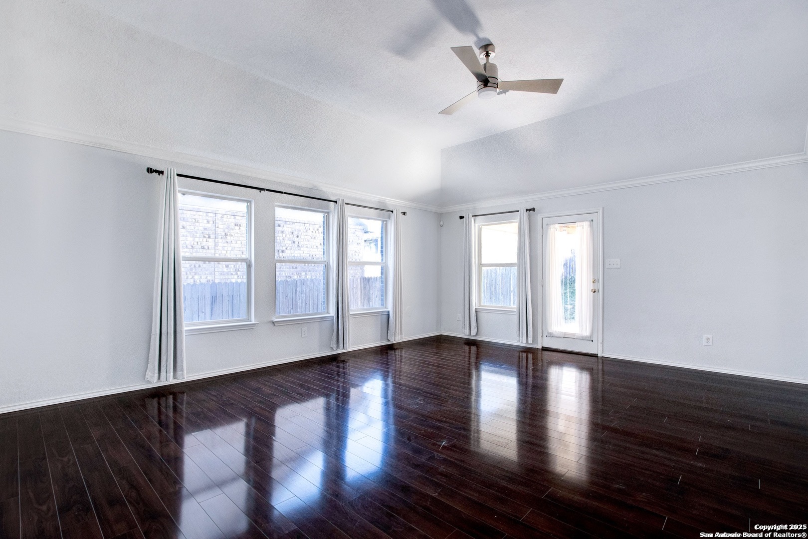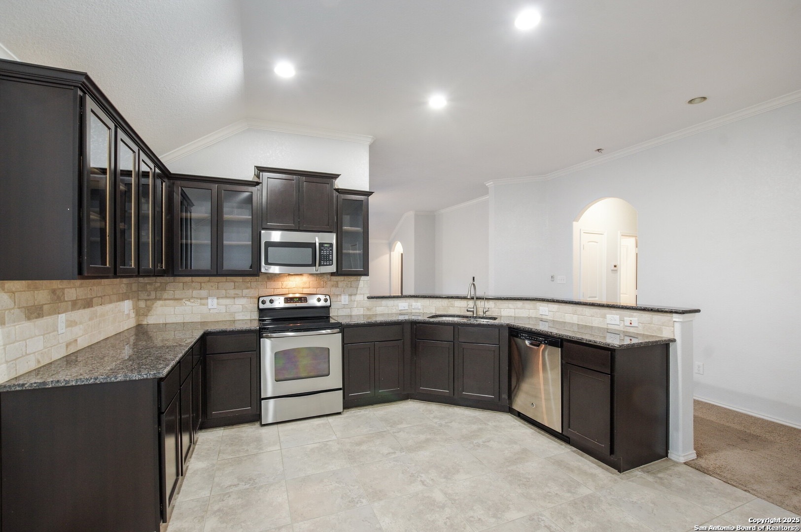 Discover the perfect blend of comfort and convenience in this exquisite single-story home near Steele High School. With 4 bedrooms plus a study, there's plenty of space for family living and remote work. The kitchen is a chef's dream with rich wood cabinetry, sleek granite countertops, and modern stainless appliances (refrigerator included). The spacious living room with elegant wood flooring and high ceilings is perfect for relaxation and gatherings. Work from home easily in the dedicated study with charming French doors. The master suite features a walk-in closet and a luxurious bathroom with a double vanity, garden tub, and shower. Enjoy outdoor living on the covered patio and private fenced backyard, perfect for barbecues or a quiet afternoon with a book. Located near I-35, it's a commuter's dream to San Antonio or New Braunfels, with proximity to Randolph AFB.
