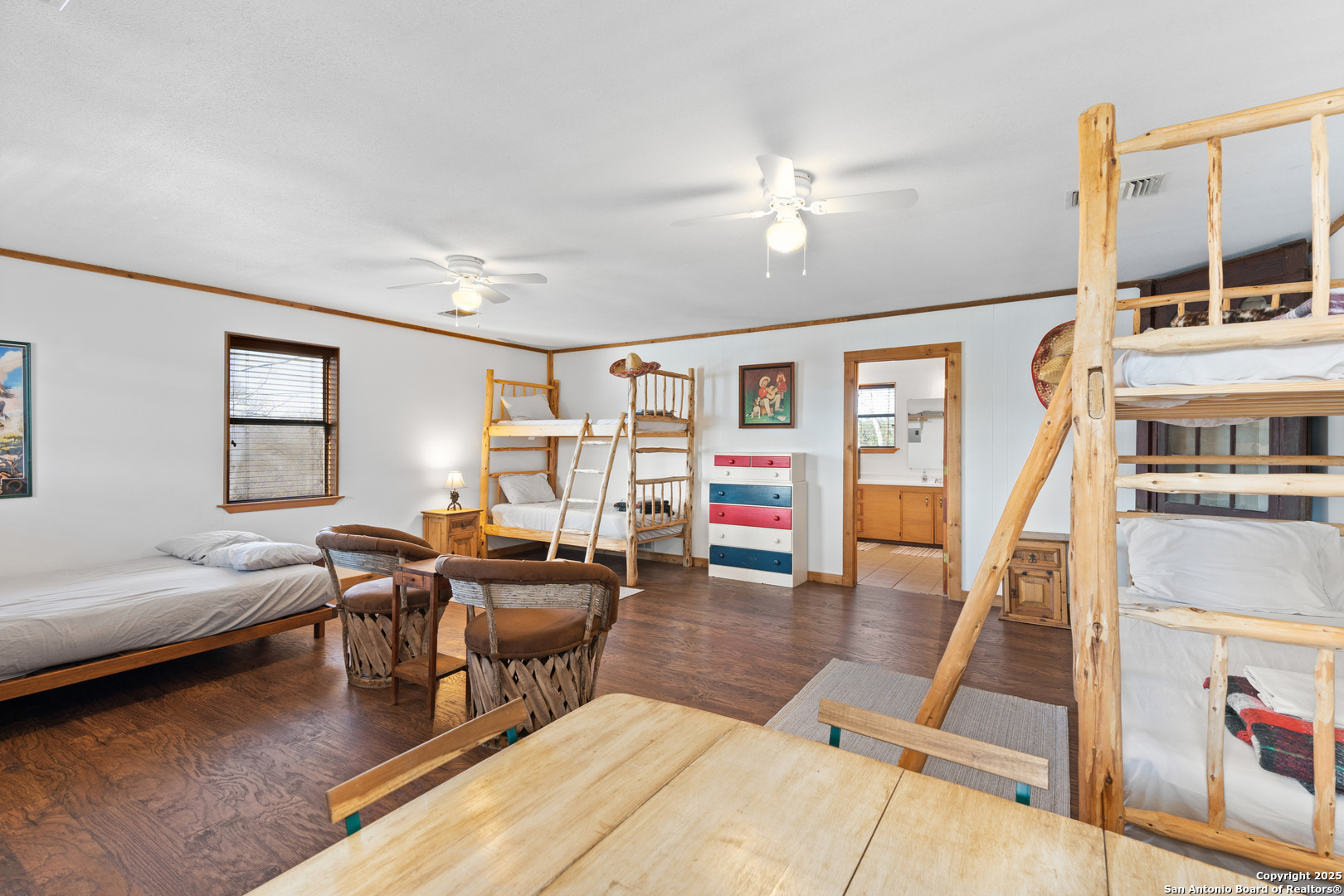 Commercial Riverfront Estate | Turn-Key Short-Term Rental Investment | Bandera, Texas A rare opportunity to acquire a historic, income-producing riverfront estate located just minutes from downtown Bandera. This 1920s original private ranch spans 6.62 acres with direct, private access to the Medina River and is already operating as a successful short-term rental. The property is offered as a turn-key investment and can continue to operate seamlessly as an income-producing asset by utilizing the existing professional management company, subject to buyer confirmation and agreements. Fully furnished interiors are included, featuring a well-curated collection of antique and period-appropriate furnishings that complement the historic character of the estate. Certain items do not convey but are negotiable. The main building comprises approximately 4,729 square feet and includes five bedrooms, five bathrooms, two full kitchens, and multiple large gathering rooms. Original stone interior walls, historic finishes, and architectural details reflect authentic Texas Hill Country craftsmanship while supporting modern hospitality use. A secondary building of approximately 1,800 square feet provides four additional bedrooms and four bathrooms, offering flexibility for guest accommodations, owner use, or operational support. Total improvements measure approximately 7,000 square feet with nine bedrooms and nine bathrooms across the estate. The grounds feature mature trees, open outdoor gathering areas, private river frontage, and an irrigated pecan and peach orchard, enhancing both guest experience and long-term land value. The setting supports a range of commercial uses including short-term lodging, retreats, small events, or destination hospitality. Conveniently located 5-10 minutes from Bandera's restaurants, shopping, and live music venues, with approximately 30-45 minute access to Comfort, Kerrville, and Fredericksburg, and near Hill Country destinations such as Lost Maples State Natural Area and Garner State Park, this property combines historic significance, operational continuity, and strong investment fundamentals. A premier Texas Hill Country offering-historic, riverfront, fully furnished, and positioned for immediate income with long-term upside.