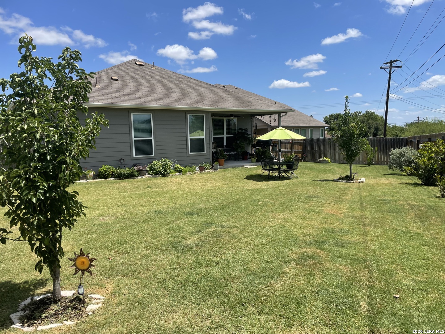 Beautifully maintained and move-in ready, this 4-bedroom, 2-bath home sits on an oversized, fully-irrigated and landscaped lot featuring a fenced backyard and a spacious two-car garage. Step inside to discover a bright, modern open-concept design perfect for both everyday living and entertaining. The inviting family room flows seamlessly into a stylish kitchen featuring granite countertops throughout and a central granite island. Appliances are a mix of stainless steel and other high-quality finishes, complemented by abundant cabinetry, under-cabinet lighting, and ceramic tile flooring throughout the main living areas. Upgraded lighting fixtures and recessed lights add warmth and contemporary charm throughout the home. The thoughtfully designed split-bedroom floor plan provides both functionality and privacy, while the generous living spaces offer plenty of room to gather and entertain with ease. Out back, enjoy peaceful mornings and relaxing evenings on the patio overlooking a serene greenbelt - with no rear neighbors for added privacy. The fully fenced and irrigated backyard is beautifully landscaped with attractive plants, shrubs, and trees. (Please note: the primary photos were taken before the landscaping had fully greened up. Additional photos at the end showcase the yard in full spring bloom.). Ideally located near schools, shopping, dining, and entertainment, this home offers the perfect balance of space, privacy, and convenience. Don't miss your chance to make this exceptional property your own - schedule your showing today! *** Seller offering up to $8,000 in concessions, buy down rate, closing costs. ***