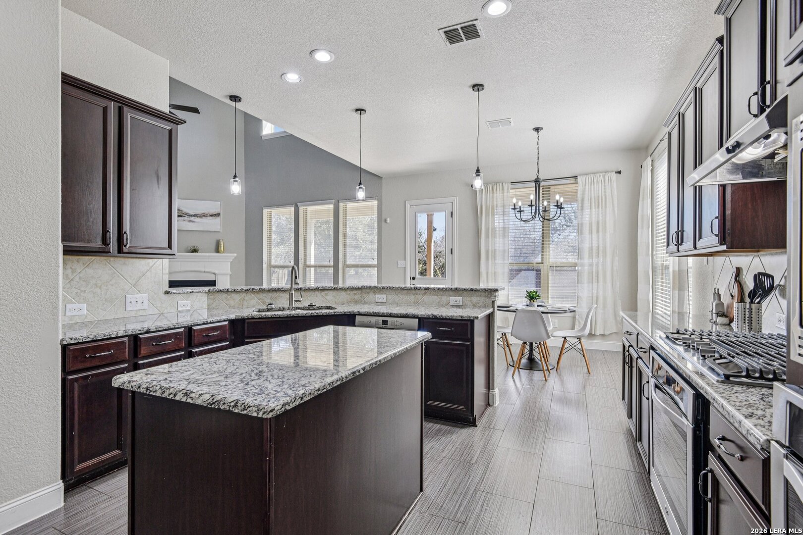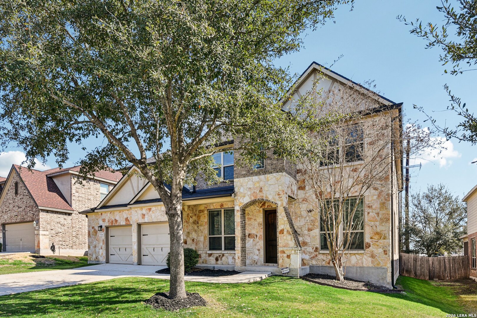 Welcome to 5334 Anemone - an exceptional two-story residence offering over 4,000 square feet of refined living in the highly sought-after Alamo Ranch area. Thoughtfully updated with beautiful finishes throughout, this 5-bedroom, 3.5-bath home blends sophistication with everyday functionality. The main-level primary suite is a private retreat, complete with expansive walk-in closets and a spa-inspired bath. The open-concept kitchen, anchored by a generous island and breakfast bar, flows effortlessly into the dining and living spaces - creating an elegant setting for entertaining or quiet evenings at home. Designed for versatility, the home features multiple living areas, a dedicated theater room, and an expansive game room, offering endless possibilities for work, recreation, or relaxation. A custom dog wash station adds a distinctive touch, while the 2.5-car garage provides valuable additional storage and flexibility. Step outside to a covered patio overlooking the fenced backyard and tranquil greenbelt beyond - a rare backdrop that enhances both privacy and natural views. Situated within a gated community, residents enjoy access to neighborhood amenities including a community pool, along with convenient proximity to shopping, dining, and major thoroughfares for seamless connectivity across San Antonio. A rare combination of scale, updates, and location - this home delivers elevated living at every turn.