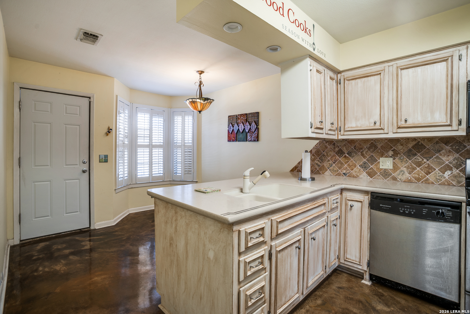 Check out this cozy home! Located in a quiet gated condo community in the heart of the Medical Center. This first-floor 2-bedroom, 2-bath unit has concrete floors in the main areas and laminate in the bedrooms. The kitchen and bathrooms feature granite and Corian counters, plus there's a wet bar, extra built-in cabinets, plantation shutters, and stylish paint. Stainless steel appliances and a private carport are included-ready for you to move in!