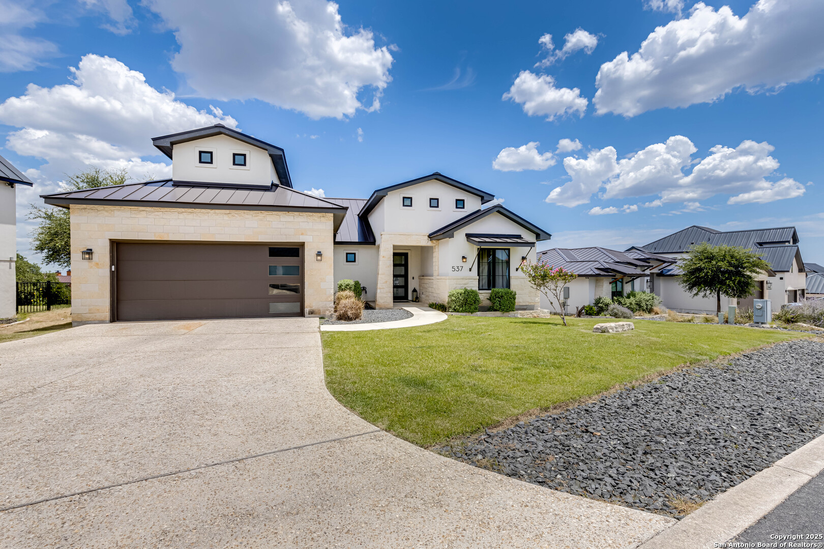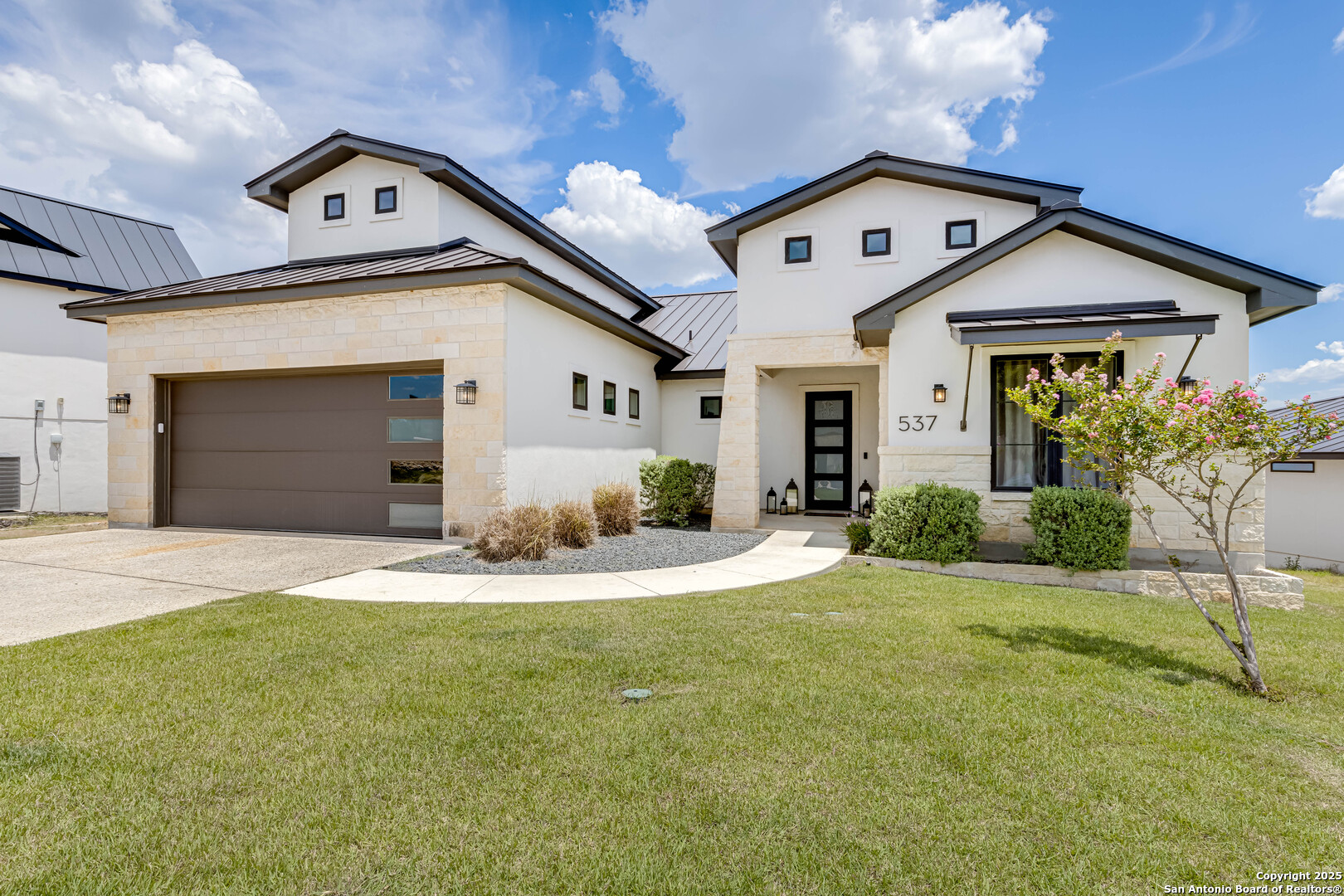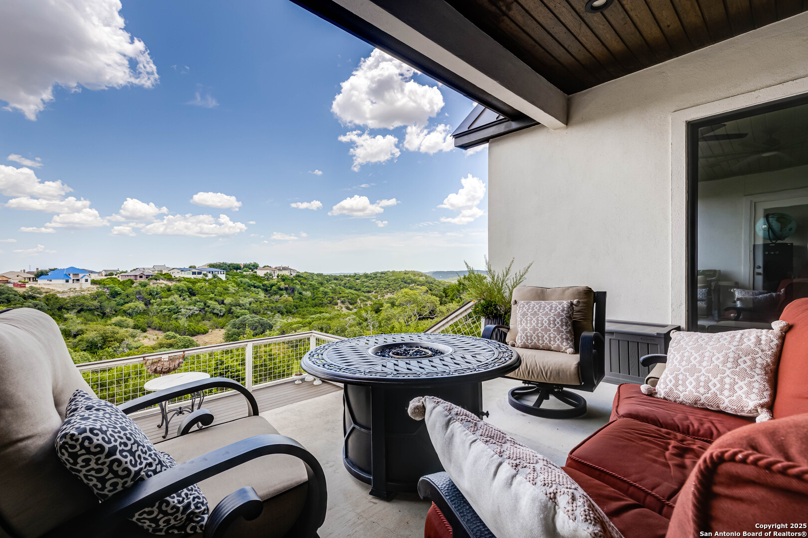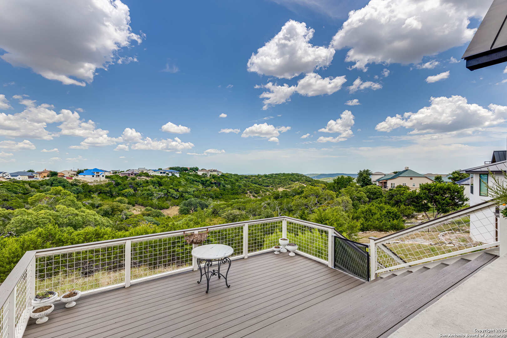 Located within the gated Highlands at Tapatio Springs, this elegant 4-bedroom, 2.5-bath home spans over 2,700 sq ft with classic Texas Hill Country appeal. A handcrafted stone facade sets the scene as you step into a sunlit, open living area where oversized windows frame rolling limestone hills. The gourmet kitchen is designed for both everyday living and entertaining, featuring a sprawling island with built-in seating, a massive walk-in pantry, and a sleek wine display. With plenty of space at the island and in the adjacent dining area, you'll have room for casual breakfasts, dinner parties, and everything in between. The primary suite offers seamless indoor-outdoor living, opening onto a covered patio and delivering a spa-inspired bath complete with dual vanities, a walk-in shower, and a generous closet that connects directly to the laundry room. Outside, an expansive patio flows into a large raised deck, a perfect place for entertaining or peaceful sunset watching with sweeping Hill Country vistas. A two-car garage with dedicated golf-cart space keeps all your gear neatly stored. Highlands residents can join the Tapatio Springs community to enjoy championship golf, tennis courts, a resort-style pool, clubhouse dining, and a cutting-edge fitness center that are all conveniently located just steps from home or a short golf-cart ride away.