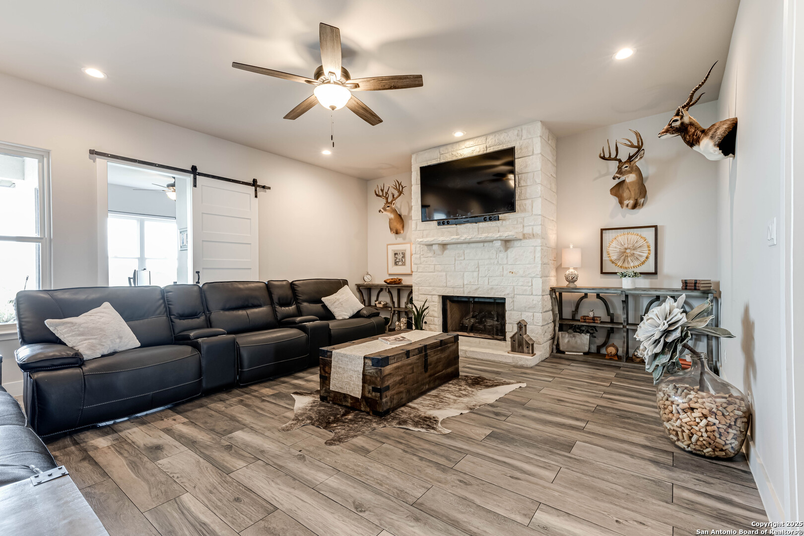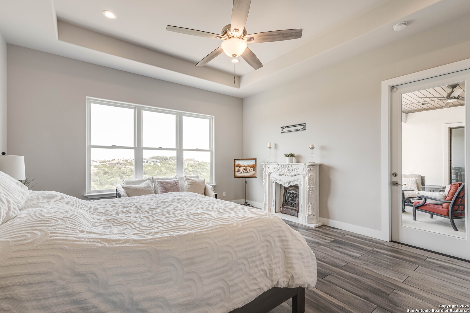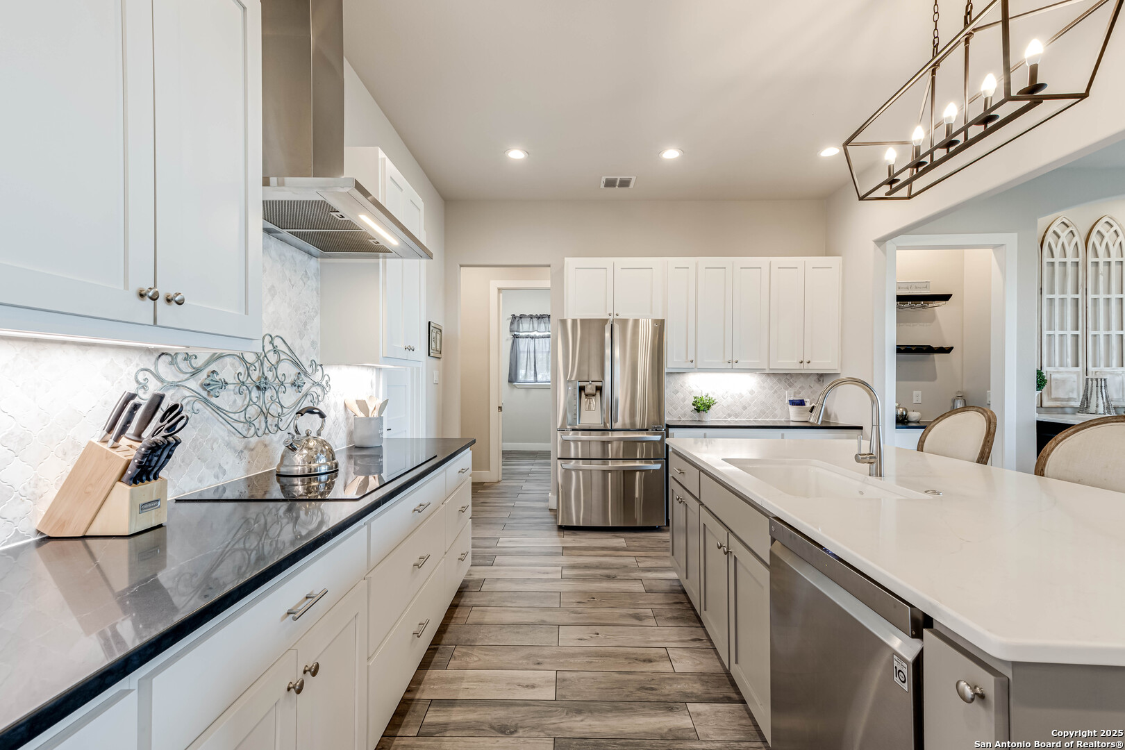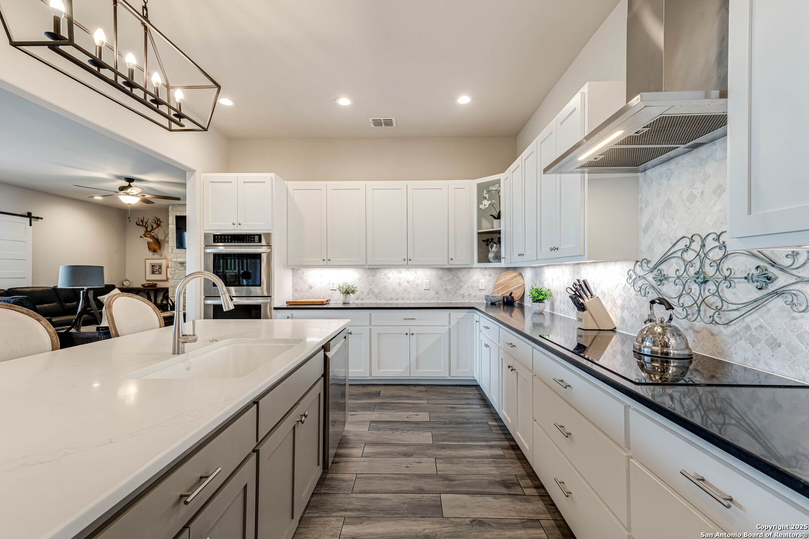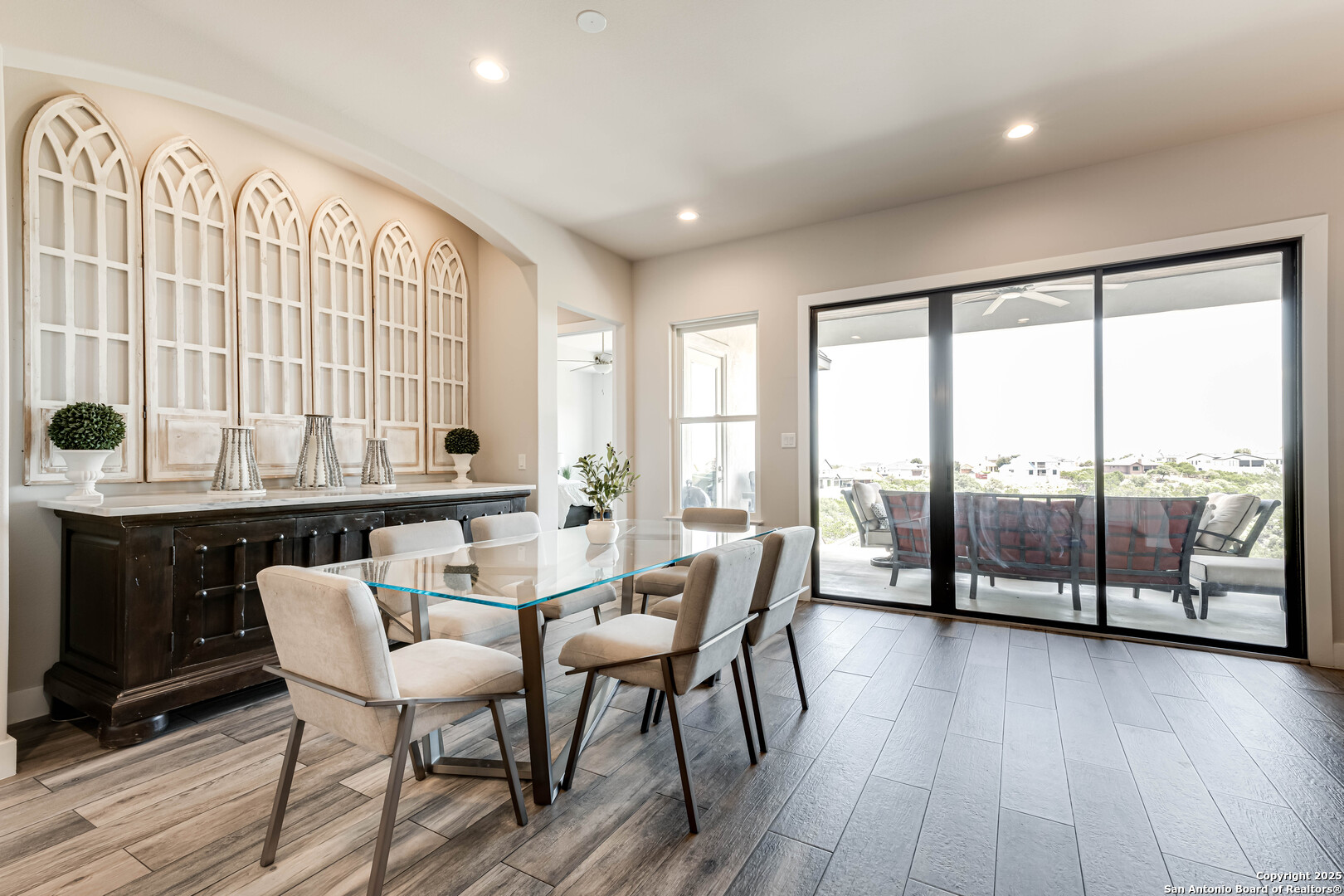 Located within the gated Highlands at Tapatio Springs, this elegant 4-bedroom, 2.5-bath home spans over 2,700 sq ft with classic Texas Hill Country appeal. A handcrafted stone facade sets the scene as you step into a sunlit, open living area where oversized windows frame rolling limestone hills. The gourmet kitchen is designed for both everyday living and entertaining, featuring a sprawling island with built-in seating, a massive walk-in pantry, and a sleek wine display. With plenty of space at the island and in the adjacent dining area, you'll have room for casual breakfasts, dinner parties, and everything in between. The primary suite offers seamless indoor-outdoor living, opening onto a covered patio and delivering a spa-inspired bath complete with dual vanities, a walk-in shower, and a generous closet that connects directly to the laundry room. Outside, an expansive patio flows into a large raised deck, a perfect place for entertaining or peaceful sunset watching with sweeping Hill Country vistas. A two-car garage with dedicated golf-cart space keeps all your gear neatly stored. Highlands residents can join the Tapatio Springs community to enjoy championship golf, tennis courts, a resort-style pool, clubhouse dining, and a cutting-edge fitness center that are all conveniently located just steps from home or a short golf-cart ride away.