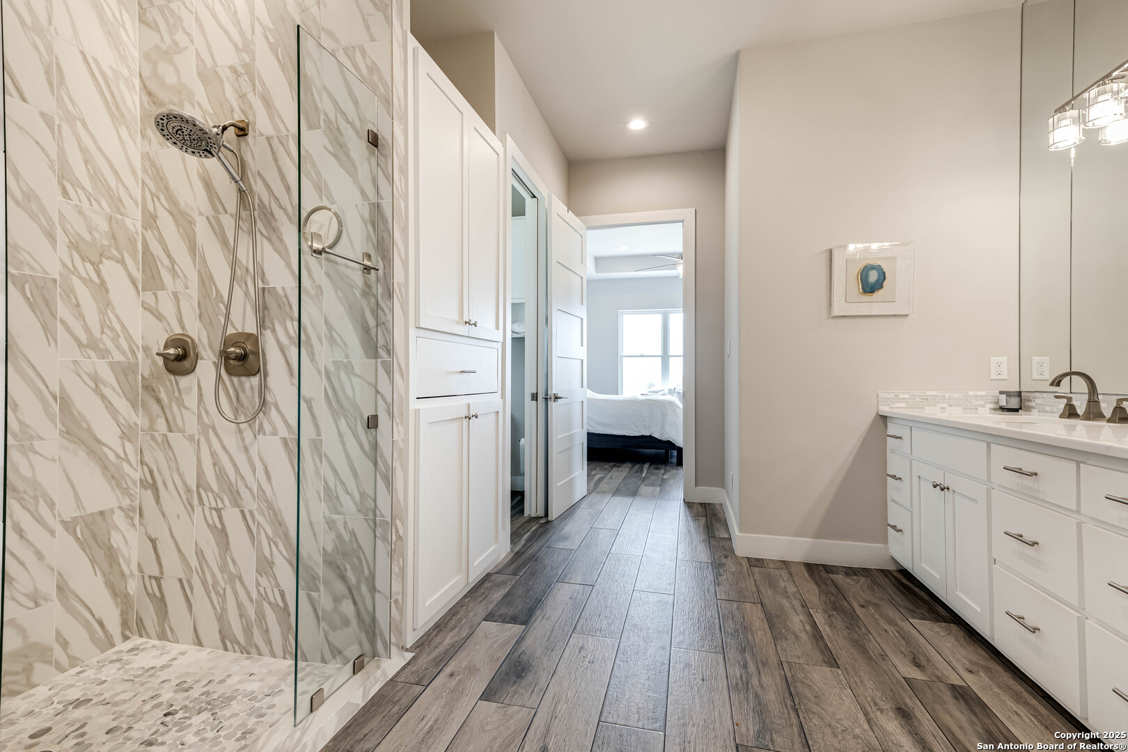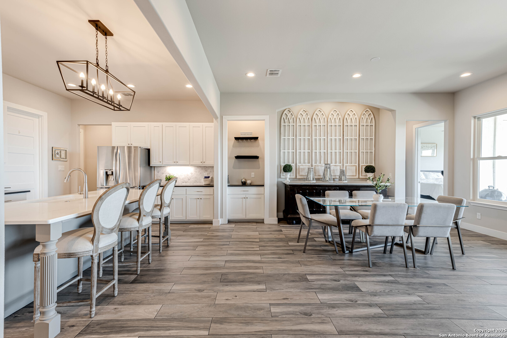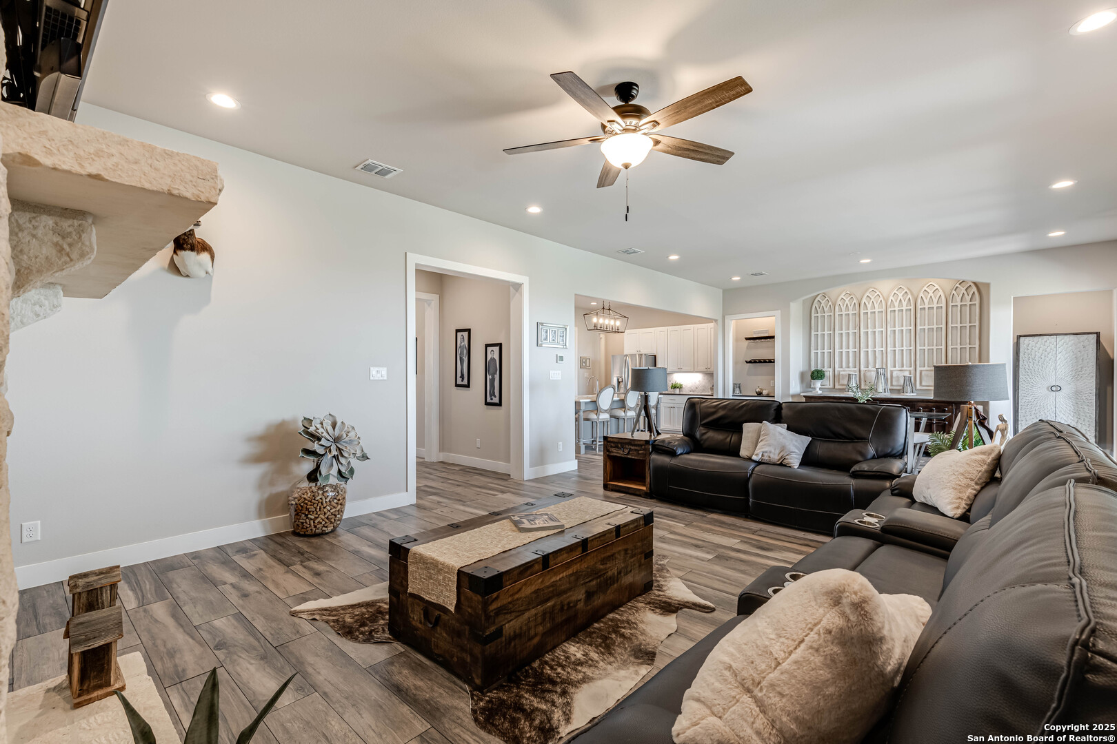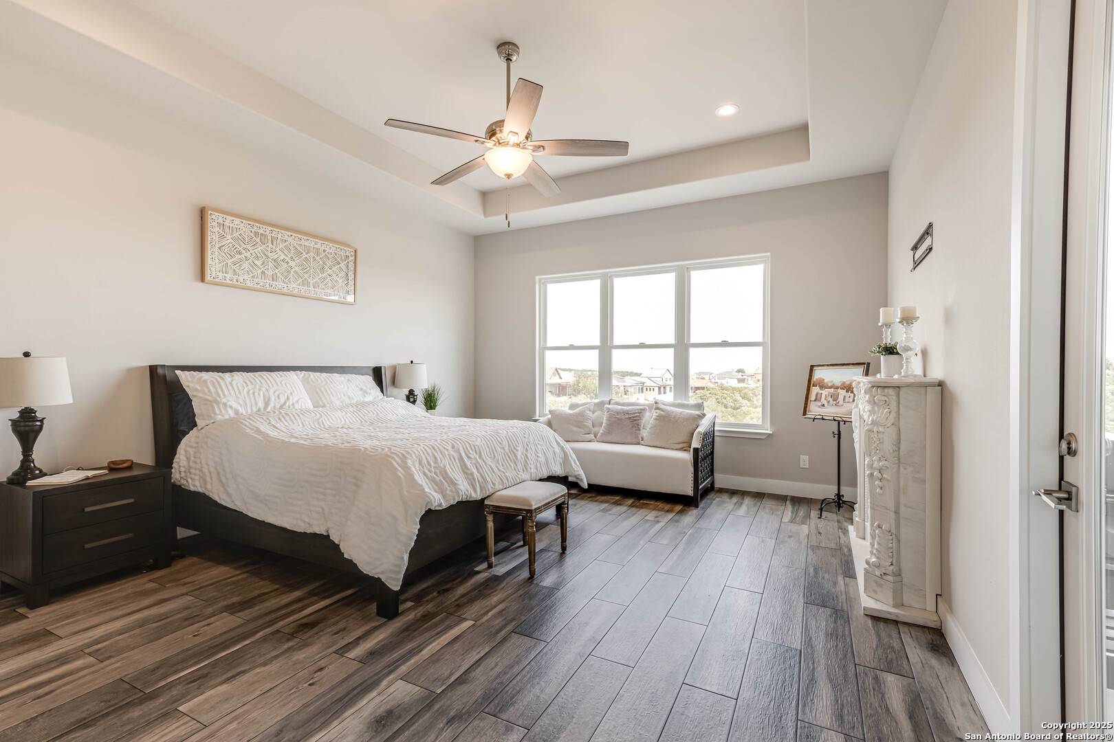 Located within the gated Highlands at Tapatio Springs, this elegant 4-bedroom, 2.5-bath home spans over 2,700 sq ft with classic Texas Hill Country appeal. A handcrafted stone facade sets the scene as you step into a sunlit, open living area where oversized windows frame rolling limestone hills. The gourmet kitchen is designed for both everyday living and entertaining, featuring a sprawling island with built-in seating, a massive walk-in pantry, and a sleek wine display. With plenty of space at the island and in the adjacent dining area, you'll have room for casual breakfasts, dinner parties, and everything in between. The primary suite offers seamless indoor-outdoor living, opening onto a covered patio and delivering a spa-inspired bath complete with dual vanities, a walk-in shower, and a generous closet that connects directly to the laundry room. Outside, an expansive patio flows into a large raised deck, a perfect place for entertaining or peaceful sunset watching with sweeping Hill Country vistas. A two-car garage with dedicated golf-cart space keeps all your gear neatly stored. Highlands residents can join the Tapatio Springs community to enjoy championship golf, tennis courts, a resort-style pool, clubhouse dining, and a cutting-edge fitness center that are all conveniently located just steps from home or a short golf-cart ride away.