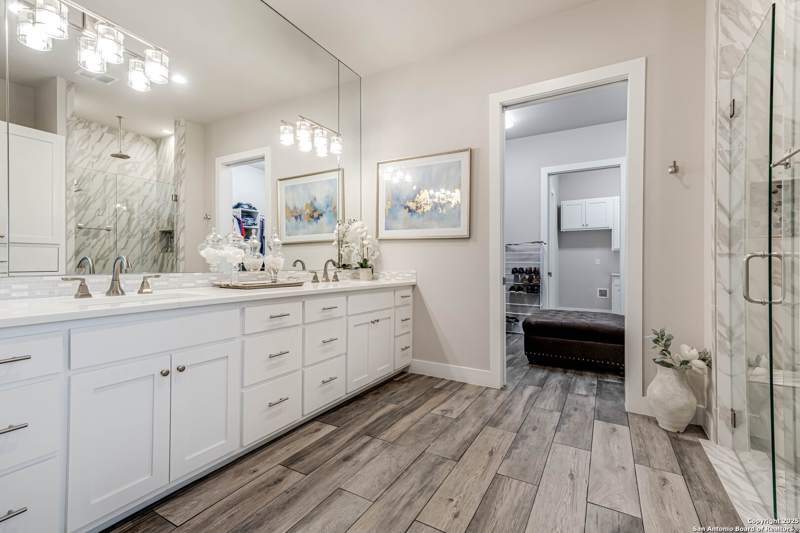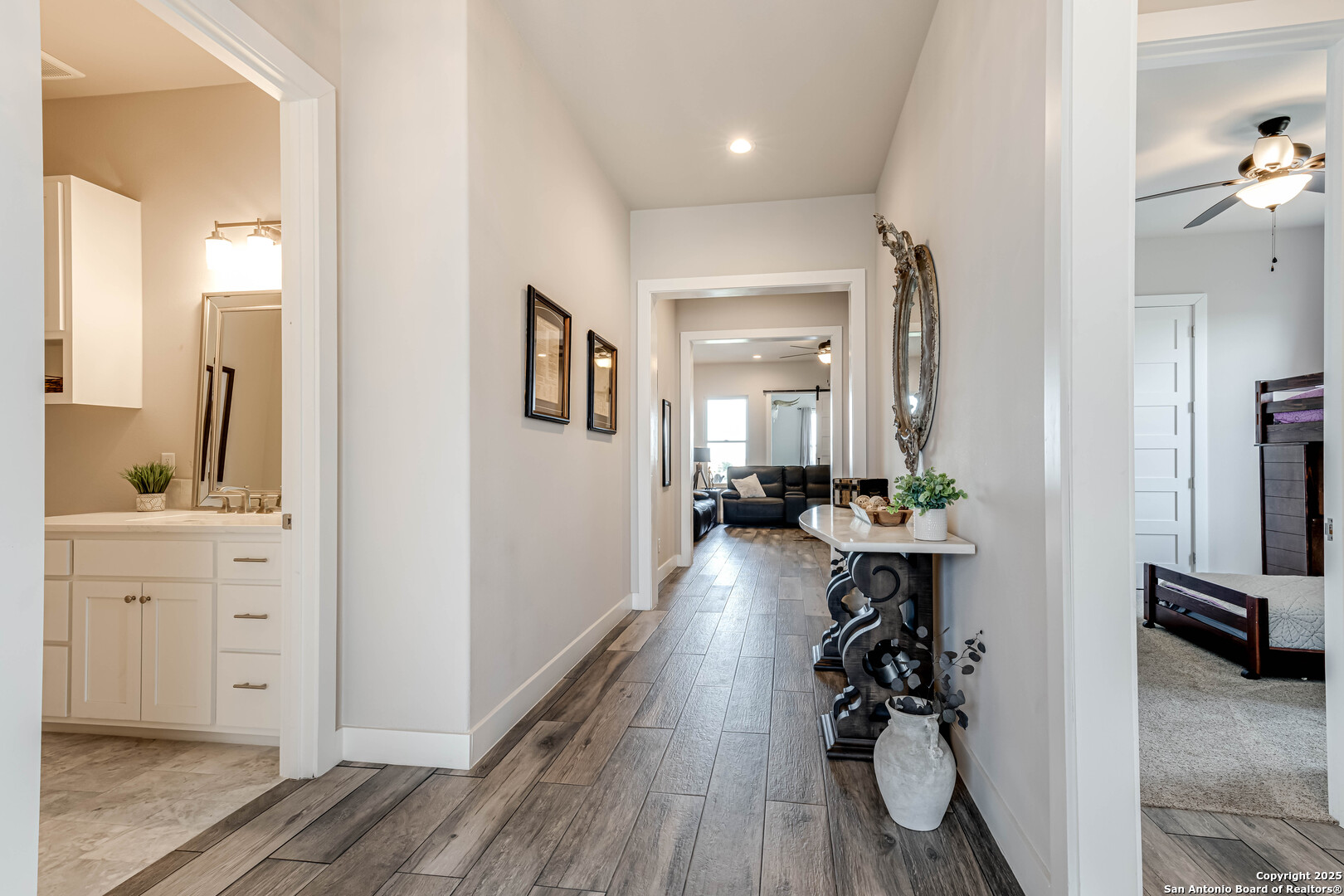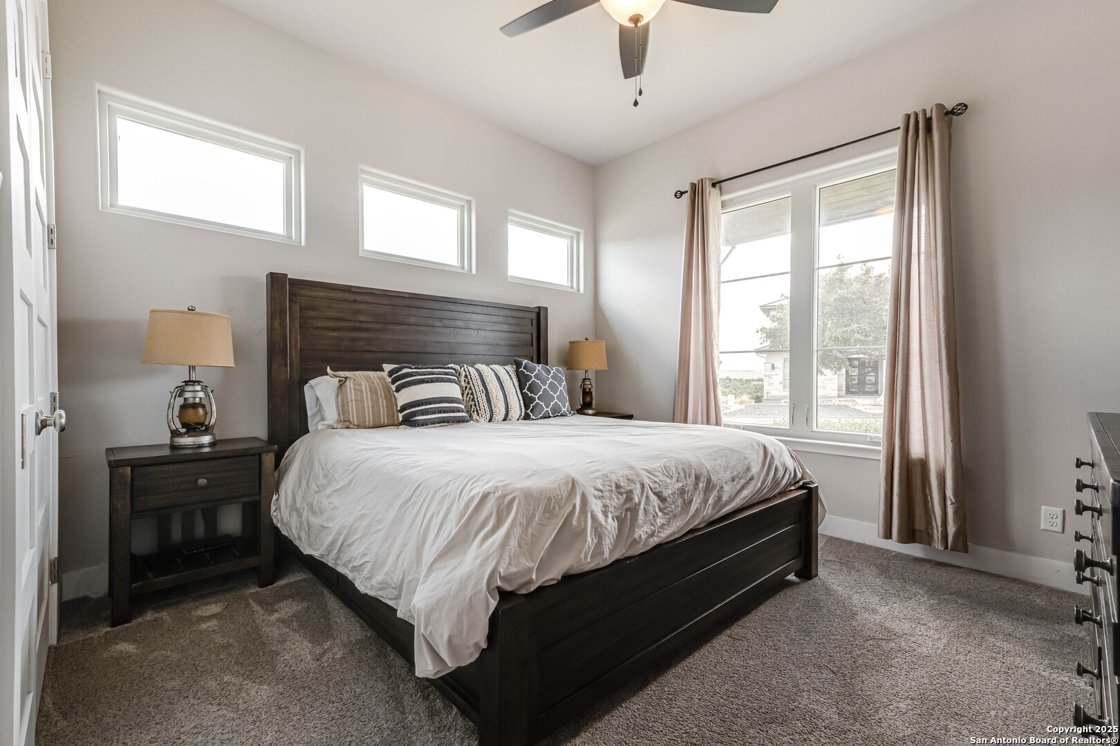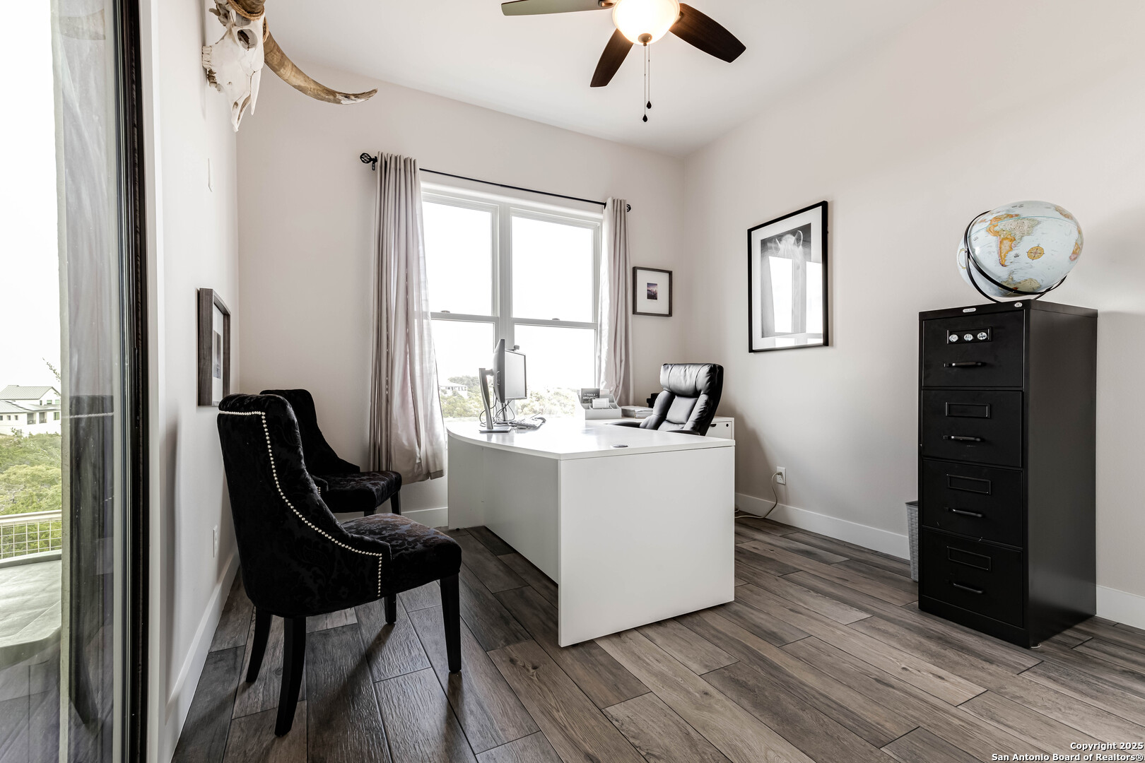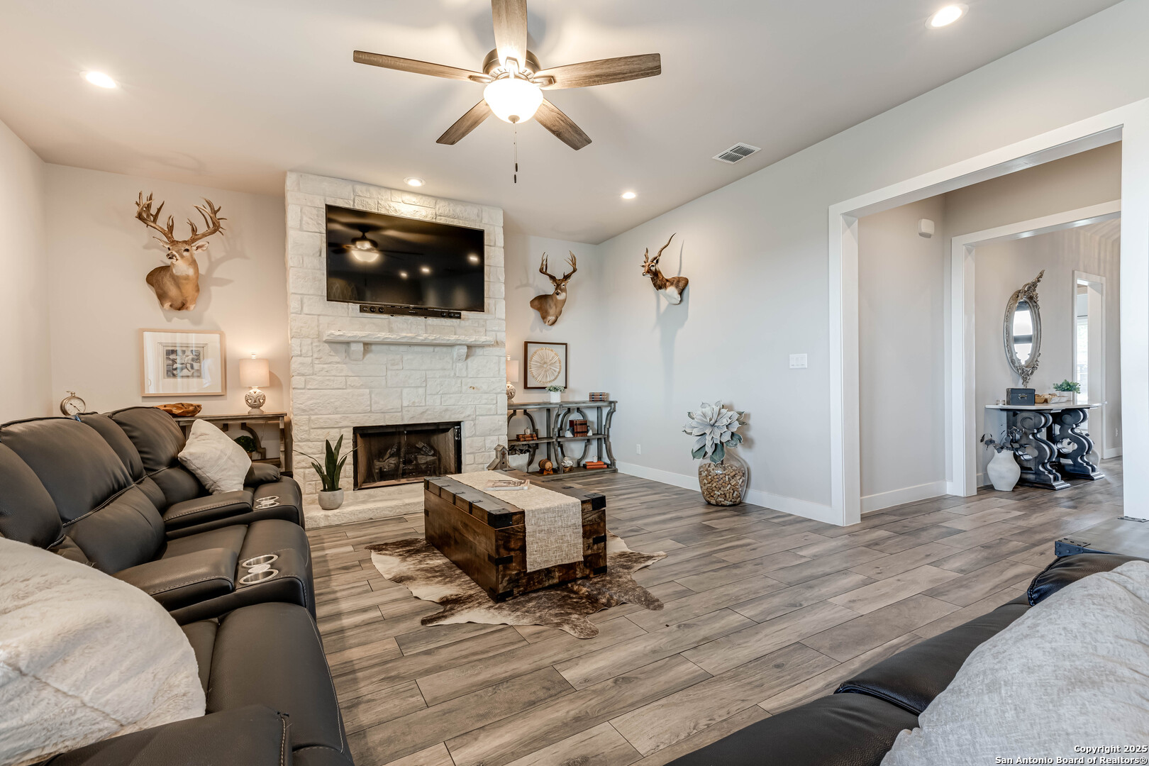 Located within the gated Highlands at Tapatio Springs, this elegant 4-bedroom, 2.5-bath home spans over 2,700 sq ft with classic Texas Hill Country appeal. A handcrafted stone facade sets the scene as you step into a sunlit, open living area where oversized windows frame rolling limestone hills. The gourmet kitchen is designed for both everyday living and entertaining, featuring a sprawling island with built-in seating, a massive walk-in pantry, and a sleek wine display. With plenty of space at the island and in the adjacent dining area, you'll have room for casual breakfasts, dinner parties, and everything in between. The primary suite offers seamless indoor-outdoor living, opening onto a covered patio and delivering a spa-inspired bath complete with dual vanities, a walk-in shower, and a generous closet that connects directly to the laundry room. Outside, an expansive patio flows into a large raised deck, a perfect place for entertaining or peaceful sunset watching with sweeping Hill Country vistas. A two-car garage with dedicated golf-cart space keeps all your gear neatly stored. Highlands residents can join the Tapatio Springs community to enjoy championship golf, tennis courts, a resort-style pool, clubhouse dining, and a cutting-edge fitness center that are all conveniently located just steps from home or a short golf-cart ride away.