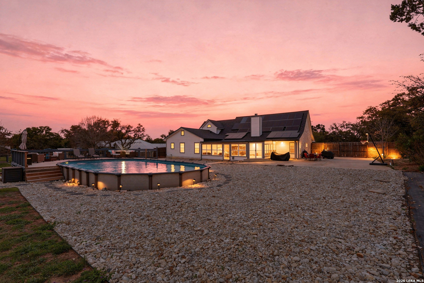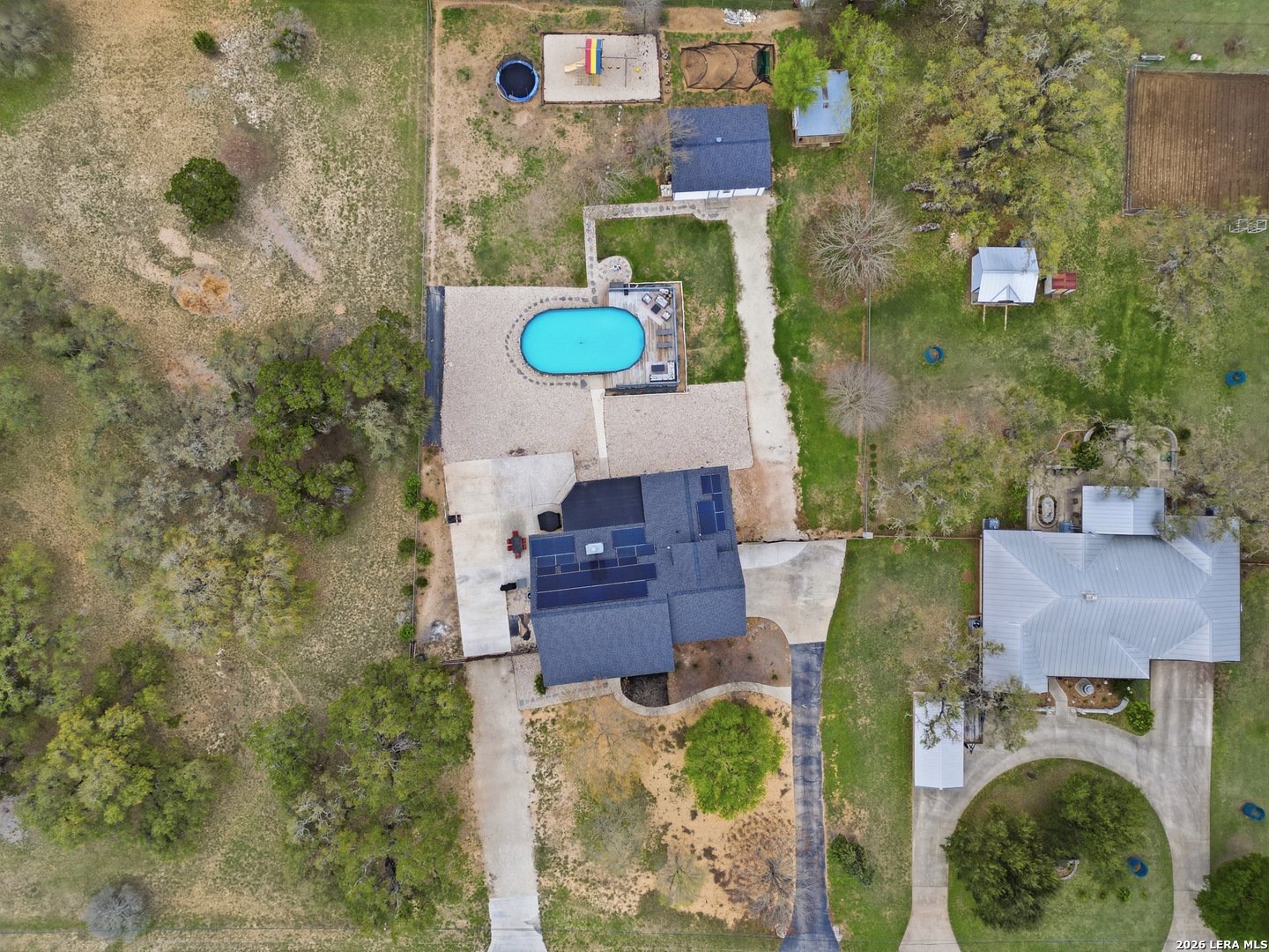 Sitting on a full acre in a peaceful country setting, this stunning property offers the perfect blend of privacy, charm, and convenience. From the moment you arrive, you'll be captivated by a welcoming front porch, ideal for morning coffee, evening sunsets, and everything in between. Inside, the home boasts a beautifully designed open-concept layout, perfect for both everyday living and entertaining. The spacious living room is anchored by a cozy wood-burning fireplace, creating a warm and inviting focal point. While the majority of the home lives comfortably on one level, upstairs you'll find an incredible bonus space complete with a full bathroom and easy access to an expansive walk-in attic that's perfect for storage. Whether you envision a fourth bedroom, media room, playroom, or private retreat, this versatile space can truly adapt to your needs. The recently renovated kitchen is a showstopper, featuring granite countertops, a large island with ample workspace, and an effortless flow into the main living areas. Just off the laundry room, a butler's pantry offers exceptional additional storage and organization options. Step outside and discover even more to love. An oversized enclosed patio provides endless possibilities-use it as a second living area, entertainment space, or game room. Just beyond, an extended concrete patio is perfect for grilling and outdoor gatherings and features a full RV hookup. Further on, a short pathway leads you to a beautiful deck that overlooks a huge pool area for all of your Summer fun. The property continues to impress with a detached building that includes a full bathroom, offering incredible potential as a guest house, pool house, in-law suite, or additional garage space. Tucked away at the back of the property, a charming workshop with its own small porch provides additional storage or hobby space. To top off this wonderful property, enjoy greatly reduced electric bills with the help of solar panels. Residents of this quiet community enjoy access to neighborhood amenities, including a walking trail, playground, pavilion, and baseball diamond-adding to the lifestyle appeal of this exceptional home. With its thoughtful layout, abundant features, and unbeatable setting, this one-of-a-kind property truly has it all. Schedule your tour today!