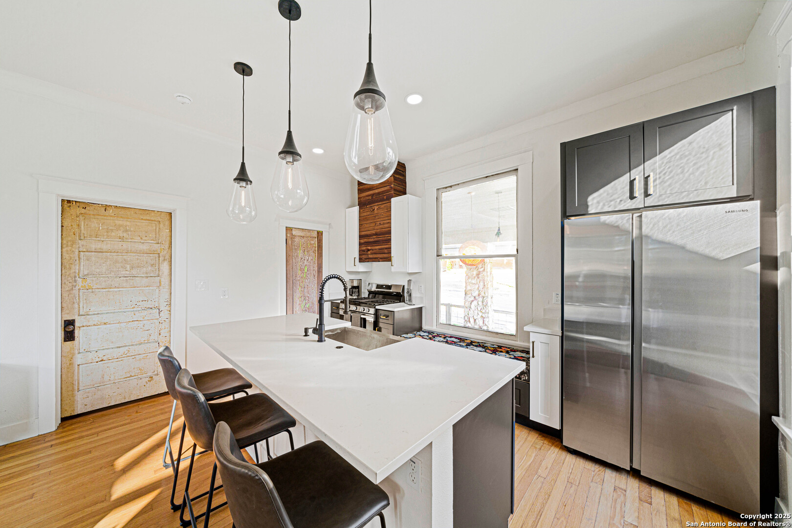 Beautiful fully renovated home in Historic King William. Two blocks from the San Antonio River! Designer finishes and high-end furniture throughout. Home & appliances are in like-new condition. 2 bedroom with en-suite baths, and walk-in closets. Original wood floors, and 3+ parallel off-street parking spots. Available for medium or long term rent.