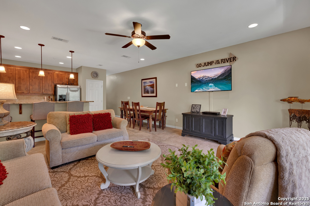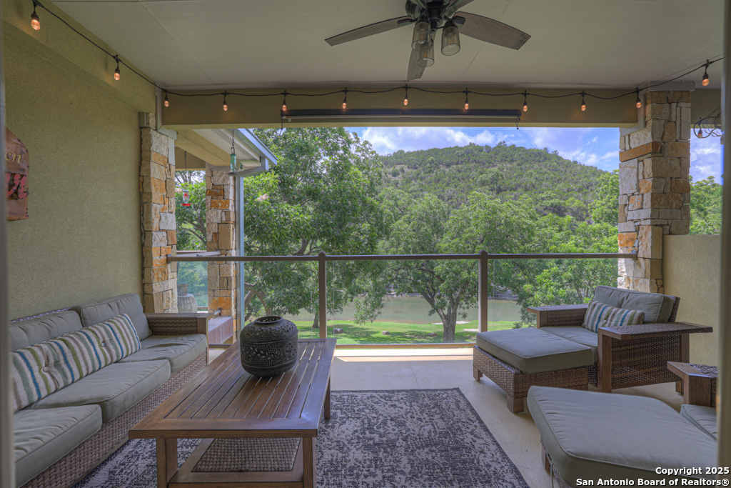 Welcome to your dream getaway or income-producing investment in Rio Guadalupe! This beautifully maintained third-floor riverfront condo overlooks the peaceful Guadalupe River and is nestled within a sought-after gated community. Whether you're enjoying the community swimming pool or stepping down to the riverfront for tubing and relaxation, this location offers the best of Hill Country living. The fully furnished condo features an abundance of natural light and a spacious, open layout. The well-appointed kitchen is complete with granite countertops, stainless steel appliances, and a convenient breakfast bar-perfect for entertaining or enjoying a quiet morning coffee. Each room offers generous space and comfort, while the large balcony provides serene water views with no upstairs neighbors to disturb the peace. The oversized attic is a great space that allows the option for extra storage. Covered parking and extra storage are available for added convenience. Whether you're looking for a primary residence, a vacation home, or a proven Airbnb rental, this property checks all the boxes. Located just minutes from the famous Whitewater Amphitheater, the Horseshoe for tubing adventures, Canyon Lake, and local dining and shopping options-this condo is perfectly positioned for fun and relaxation. Centrally located and move-in ready, it's time to experience riverfront living at its best!
