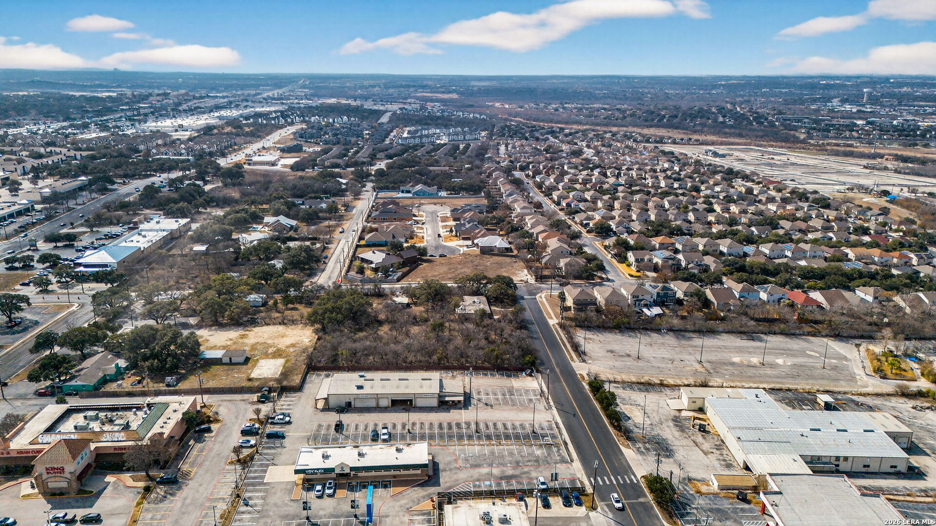 A total of 1.105 Acres of Prime corner commercial opportunity in Leon Valley. Located at the intersection of Thistle Dr and Watercrest Dr, this 1.1046-acre B-2 zoned property offers outstanding visibility, dual street frontage, and flexible development potential in an established residential and commercial corridor. The site is ideally suited for a neighborhood retail strip center of approximately 10,000 to 15,000 square feet, making it an excellent fit for restaurants, medical or dental offices, boutique fitness, personal services, specialty retail, or professional offices. The size and corner positioning allow for efficient parking design, strong storefront exposure, and prominent signage-key elements for long-term business success. The property is being sold for land value; however, it includes a 1,942 square foot home built in 1945 situated on approximately 0.51 acres of the total tract. The home features four bedrooms, two bathrooms, a detached one-car garage, an eat-in kitchen, a den, a separate family room, a laundry room off the kitchen, and three wood-burning fireplaces. For a buyer who sees opportunity beyond redevelopment, the existing structure offers potential for refurbishment and adaptive reuse as a professional office, boutique studio, or other approved commercial use under B-2 zoning. It also presents a strategic option for phased development, allowing an owner to utilize or lease the home while planning future commercial improvements on the remainder of the property. Whether you envision developing a neighborhood retail center, establishing your own flagship location, or leveraging the existing structure for immediate use while holding for future growth, this property offers flexibility, scale, and long-term upside. Corner commercial sites of this size with multiple pathways to value are increasingly rare in Leon Valley.