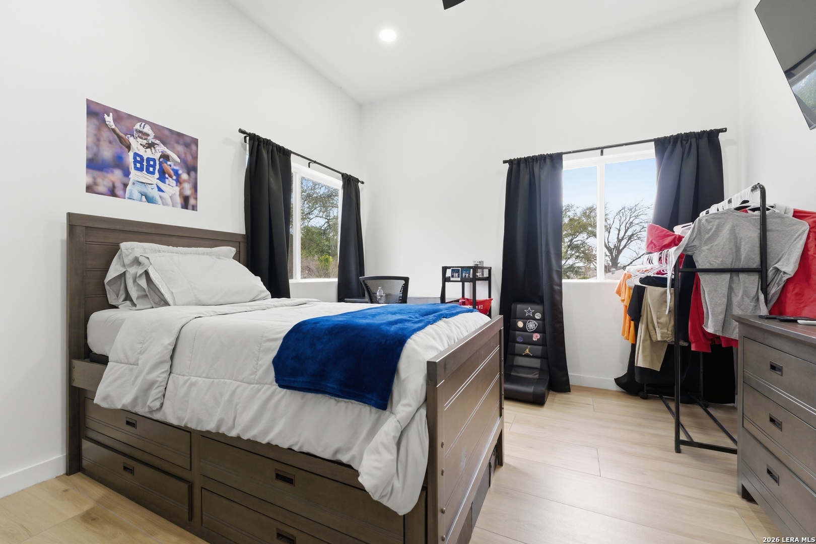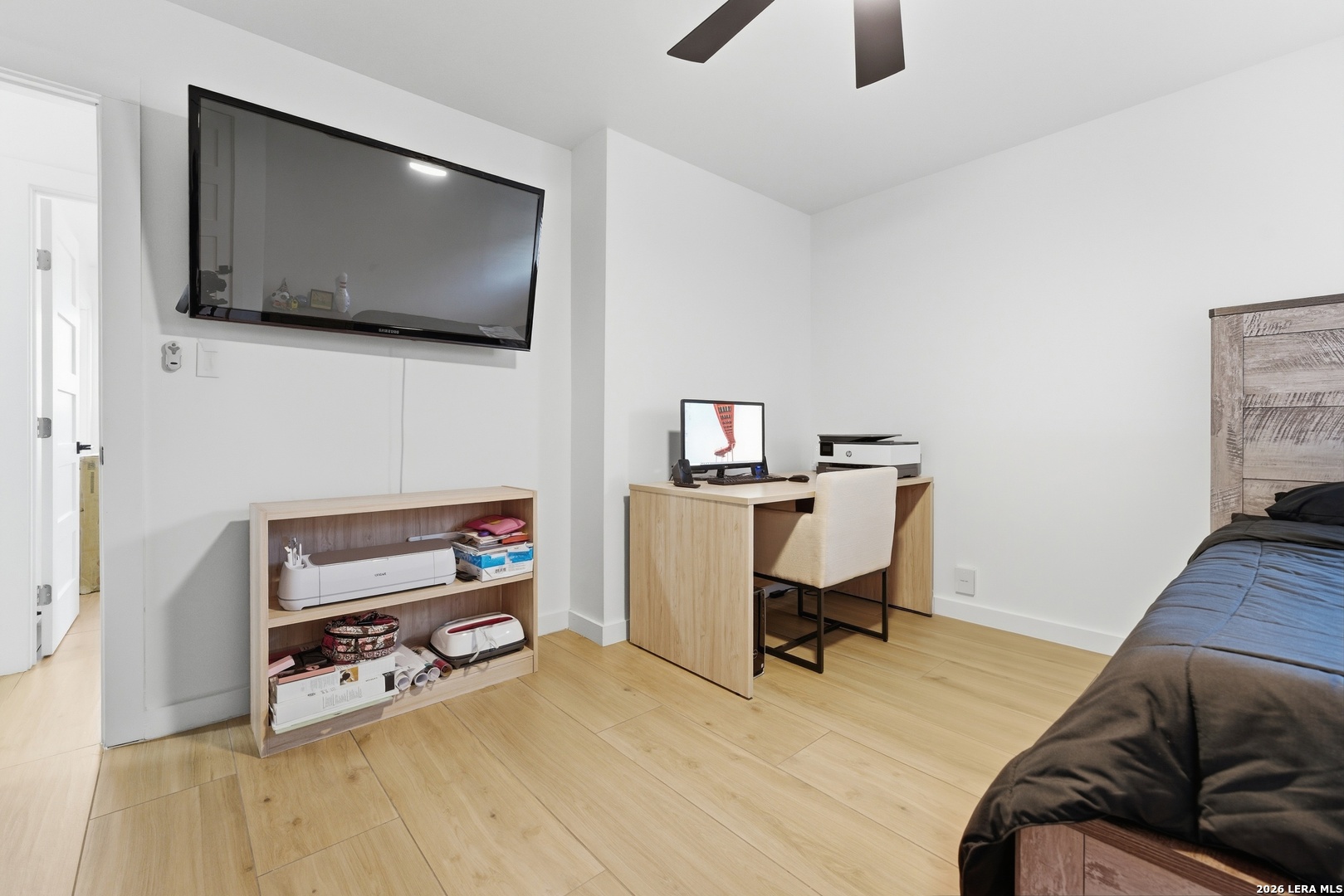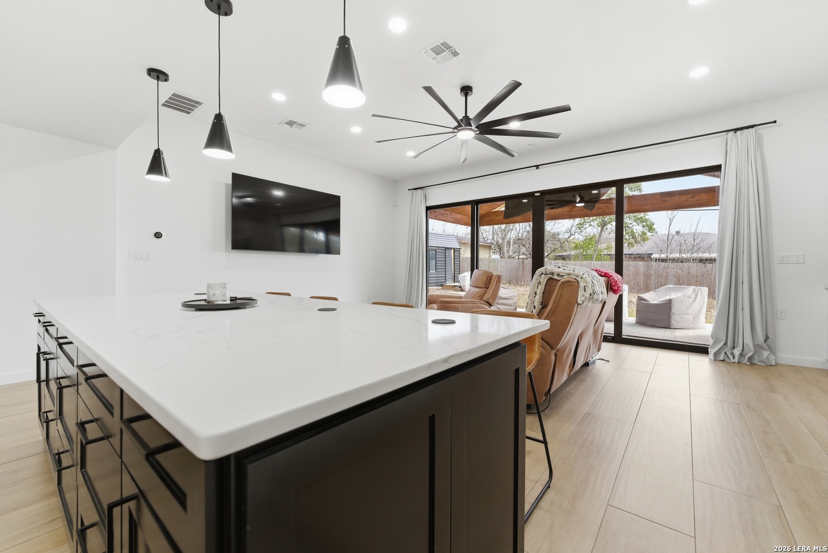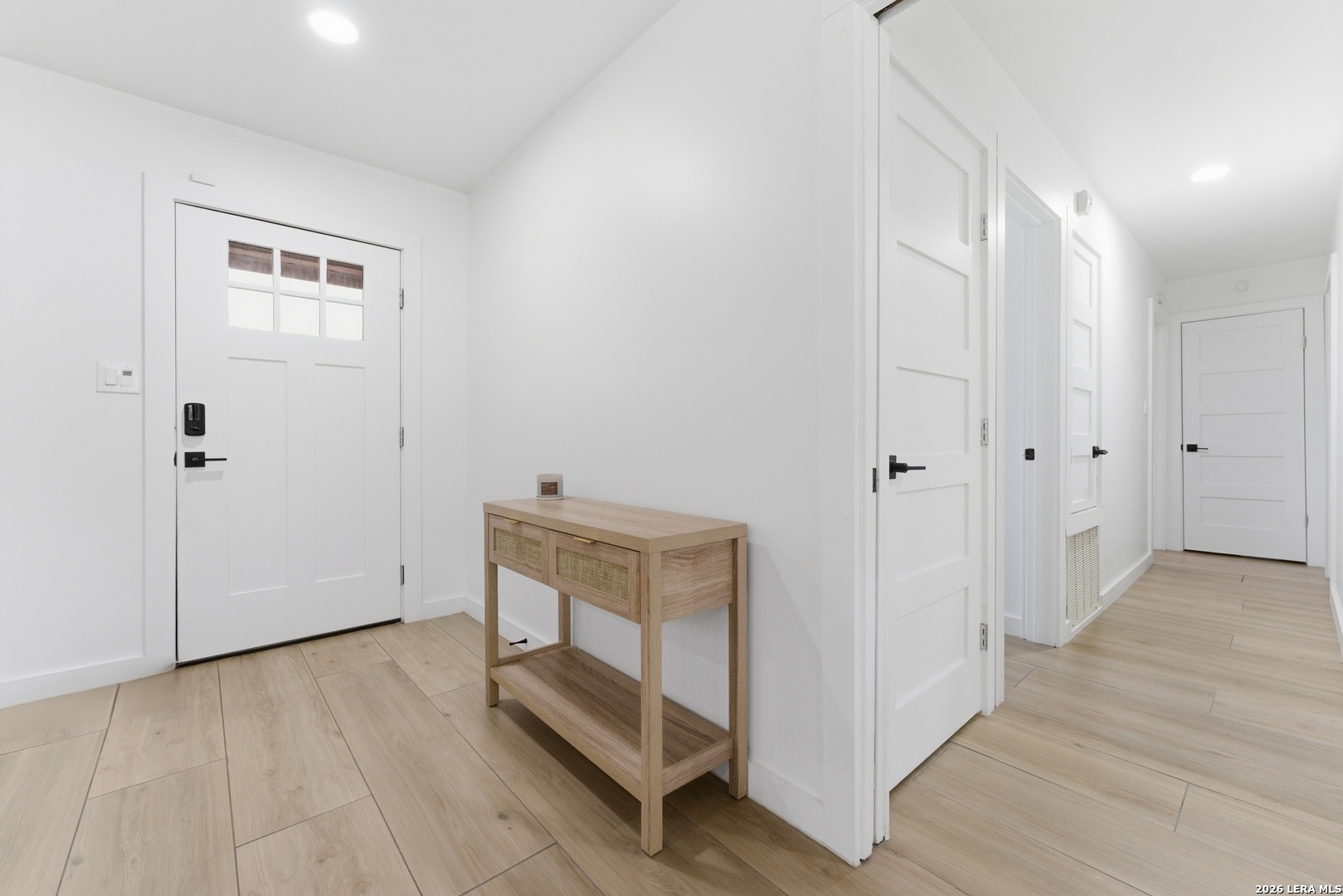 Uniquely remodeled and greatly expanded ONE STORY home right by the Medical Center and minutes from IH-10 and Loop 410. Four bedrooms, three and a half baths with NO CARPET, the home was remodeled and added on to in 2023 to include new roof, water heater, one HVAC system, and approximately 1000 square feet with designer tile, modern fans, fixtures, hardware, appliances, massive island, bar, quartz counters and paint throughout the entire home for seamless integration. Back patio addition in 2025. Extra 20 by 7 foot utility and laundry area with built in shelving to store anything you can dream up in the full size two car garage. Plus a 16 by 32 foot storage barn in the large back yard. Gas cooking and utilities. Sprinkler system. Security lighting and cameras too.