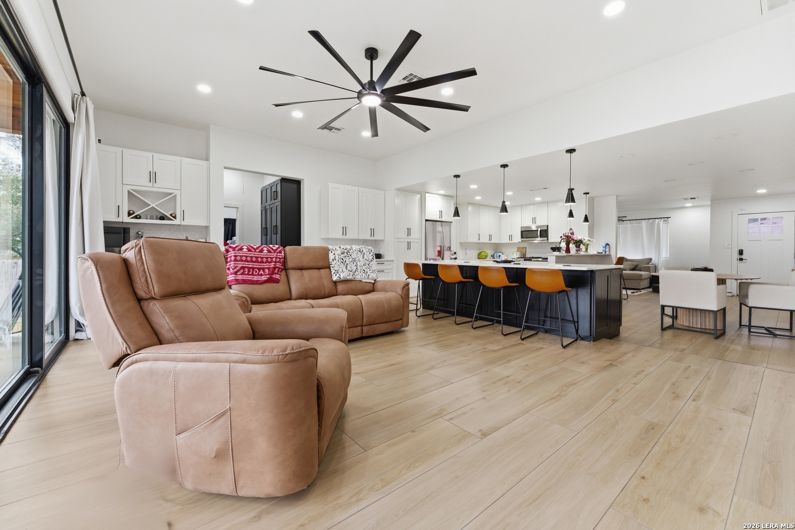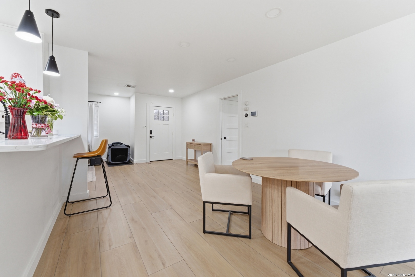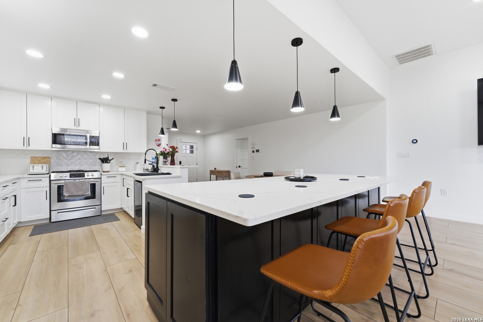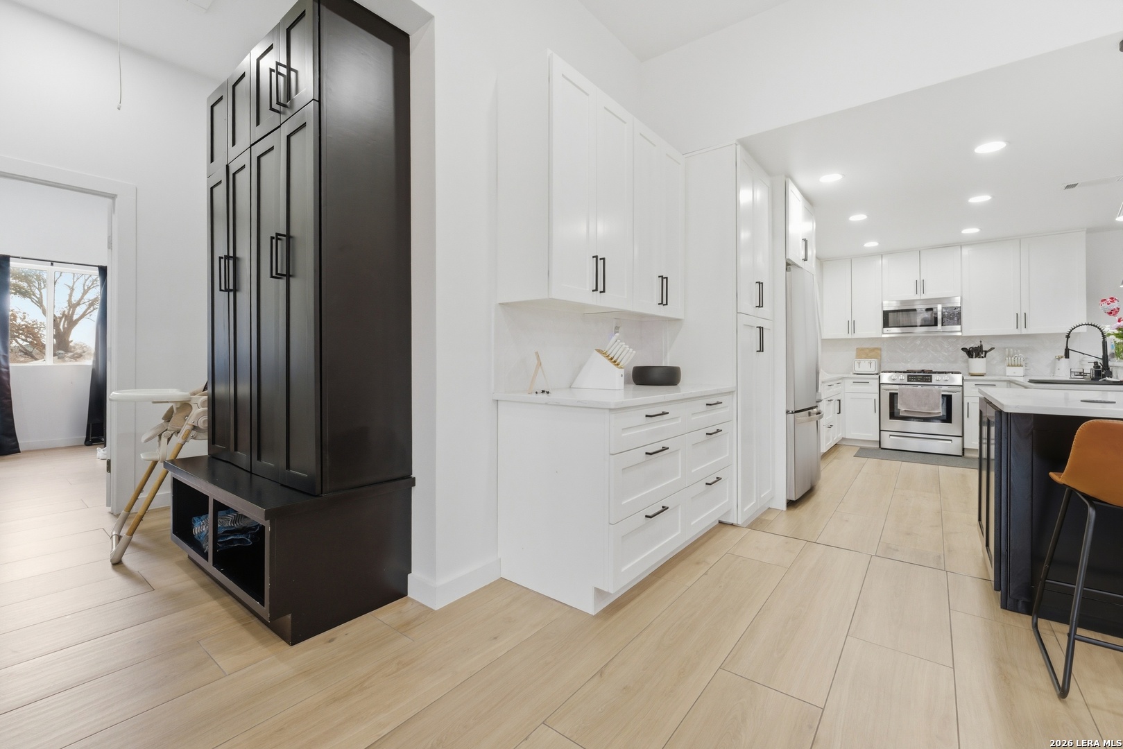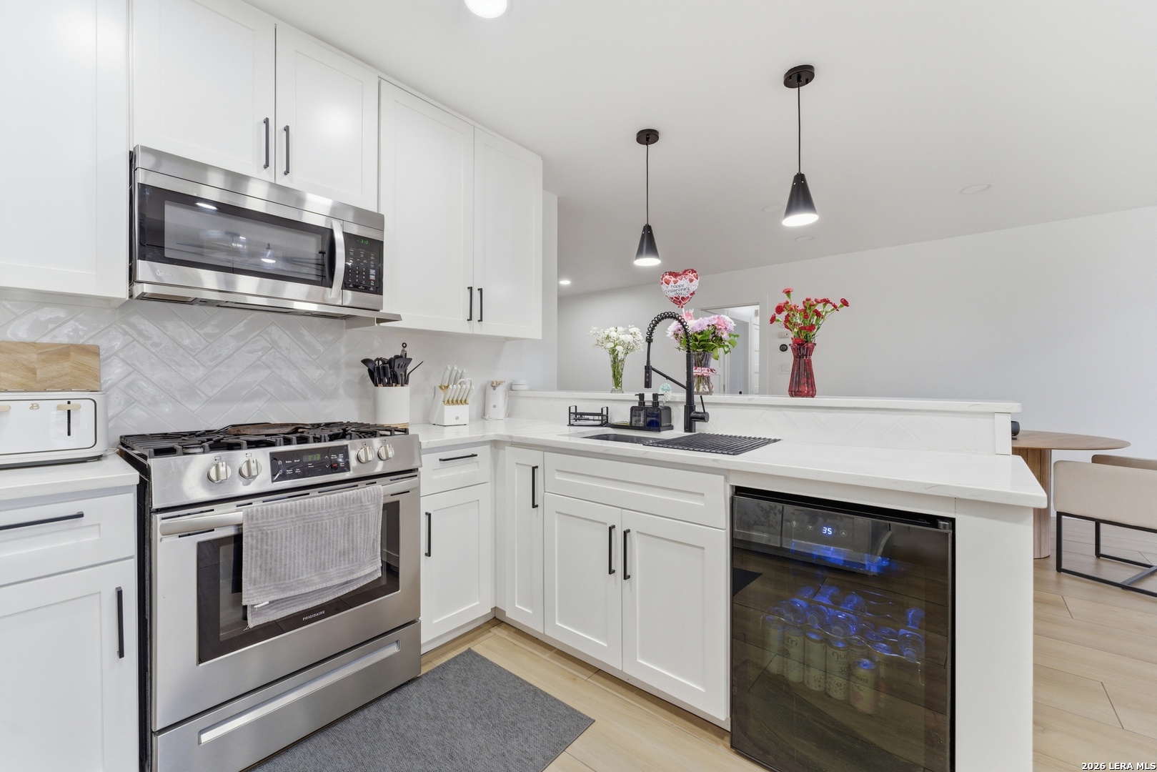 Uniquely remodeled and greatly expanded ONE STORY home right by the Medical Center and minutes from IH-10 and Loop 410. Four bedrooms, three and a half baths with NO CARPET, the home was remodeled and added on to in 2023 to include new roof, water heater, one HVAC system, and approximately 1000 square feet with designer tile, modern fans, fixtures, hardware, appliances, massive island, bar, quartz counters and paint throughout the entire home for seamless integration. Back patio addition in 2025. Extra 20 by 7 foot utility and laundry area with built in shelving to store anything you can dream up in the full size two car garage. Plus a 16 by 32 foot storage barn in the large back yard. Gas cooking and utilities. Sprinkler system. Security lighting and cameras too.