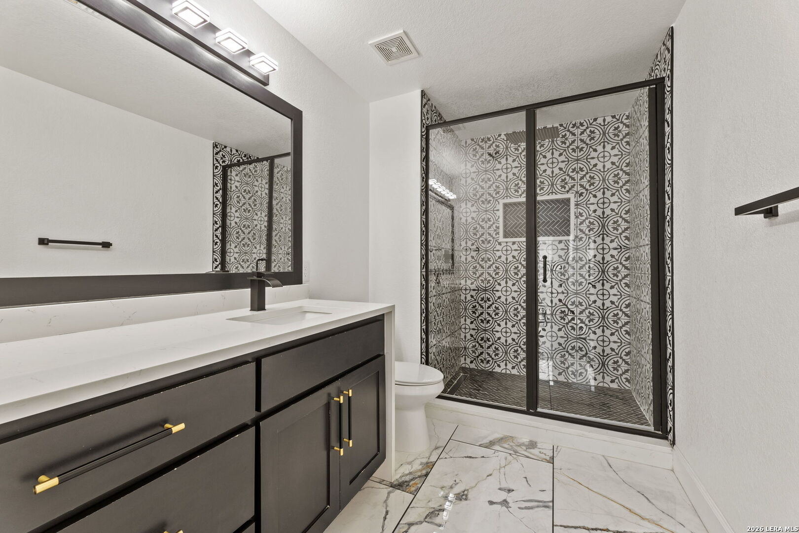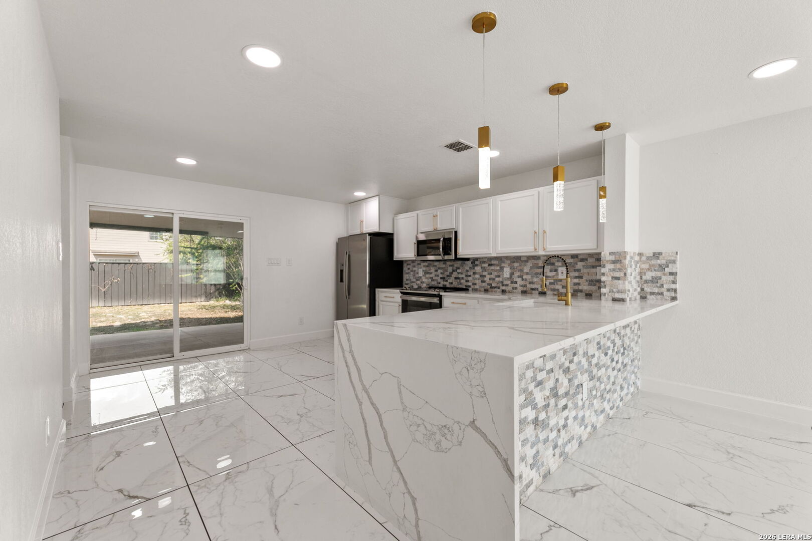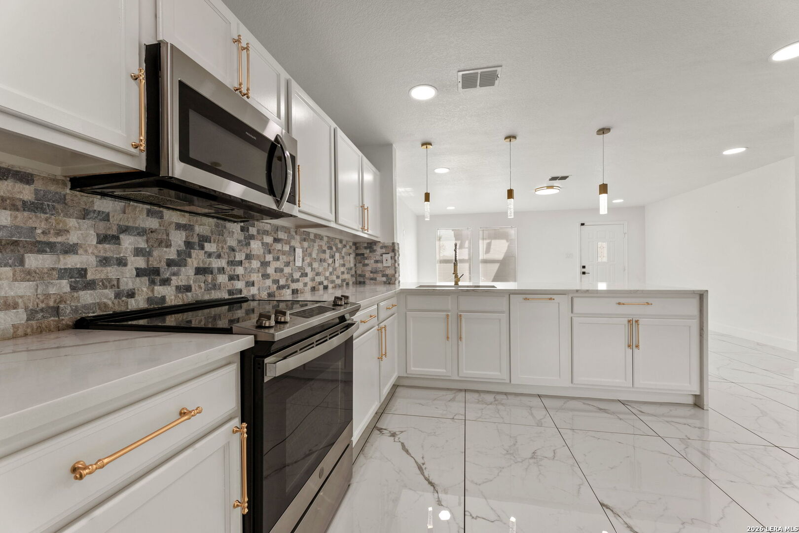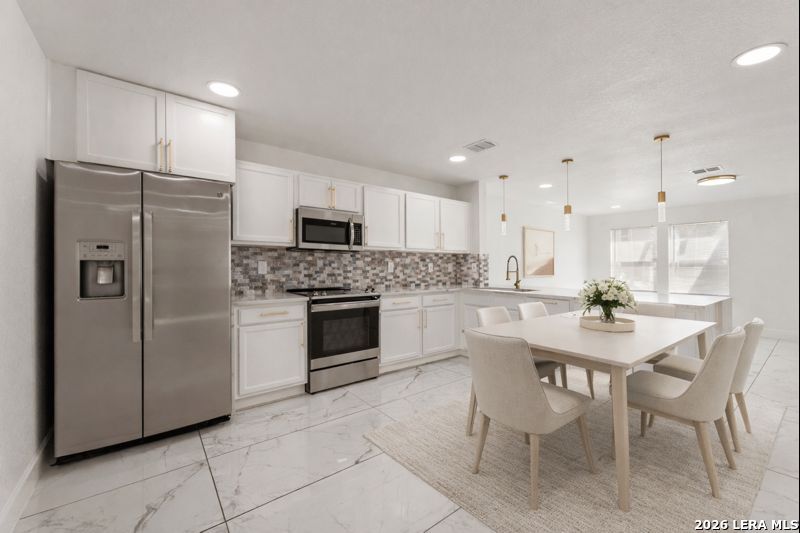 Welcome to your dream home! This beautifully renovated residence offers peace of mind with a new roof, HVAC system, water heater, and renovations completed in 2024. Thoughtfully updated with high-end finishes and modern appliances, the home delivers both style and everyday comfort. Inside, enjoy a fresh, contemporary color palette complemented by elegant ceramic and wood flooring throughout. The spacious primary bathroom has been fully remodeled, creating a serene, spa-like retreat. Step outside to a covered back patio overlooking a charming backyard, ideal for entertaining or relaxing evenings at home. Perfectly located near major shopping and dining, with quick access to Loop 410, this home makes commuting effortless. It's also conveniently close to Lackland Air Force Base and just 15 minutes from Downtown San Antonio. Don't miss the opportunity to purchase this move-in-ready home that blends modern upgrades, comfort, and an unbeatable location.