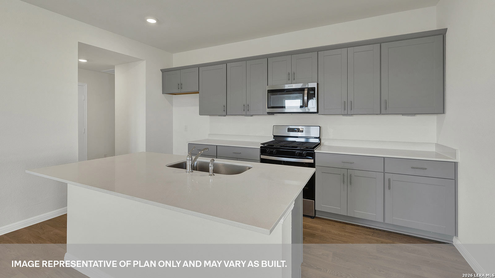 SUMMER ESTIMATED COMPLETION. OVERSIZE GARAGE! EASY ACCESS TO I-35. The Caden is one of our one-story floorplans available at Paramount in Kyle, Texas. This 3 bedroom, 2 bathroom home includes a 2 car garage across 1,587 square feet of modern living space. Our homes in Paramount feature our modern farmhouse exteriors. Step inside the home from the covered front porch and cross the long foyer to the heart of the home, the open concept living space. The kitchen, dining room and family room are designed to keep the conversations flowing and is sure to be the place where many memories are made. The kitchen features stainless steel appliances, including a gas range, quartz countertops, an island with undermount sink, and 36' upper cabinets. The pantry closet is conveniently located off the kitchen in a space that includes an extra closet and the utility room, providing amble storage. The secondary bedrooms and bathroom are at the front of the home. The hall bathroom includes a shower/tub combination and a marble countertop. Whether you use the bedrooms for an office, guest room, or kids room, there is plenty of privacy in the Caden. You will find the primary bedroom at the back of the home. This ensuite provides enough space to make your morning routine run seamlessly. The attached bathroom includes a walk-in shower, marble countertops with dual vanity, and a walk-in closet with ample shelving. The Caden includes vinyl flooring throughout the common areas of the home and carpet in the bedrooms. All our new homes at Paramount feature extra storage space in the garage, a covered back patio, full sod, and an irrigation system in the front and back yard. This home includes our America's Smart Home base package, which includes the Front Doorbell Deadbolt Lock, Home Hub, Thermostat, and a Smart Switch.