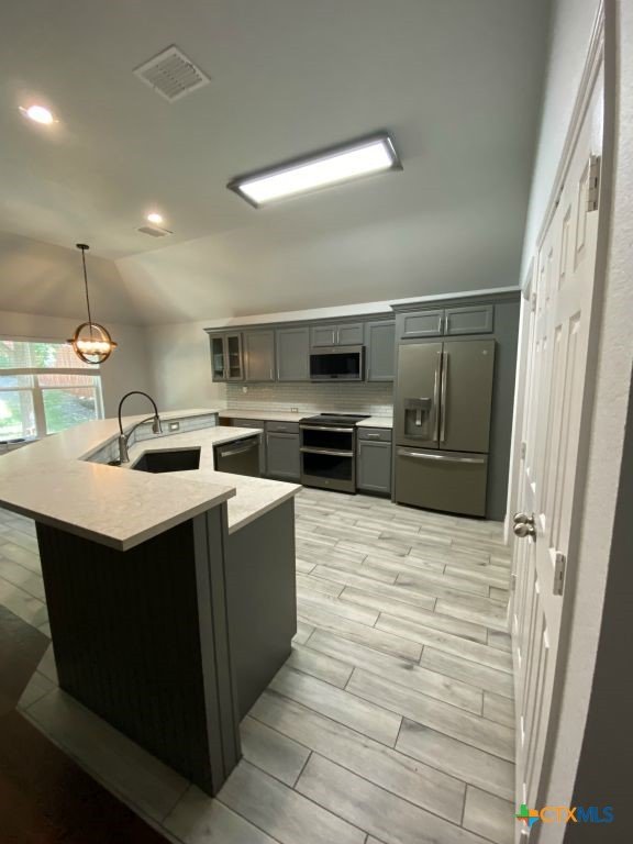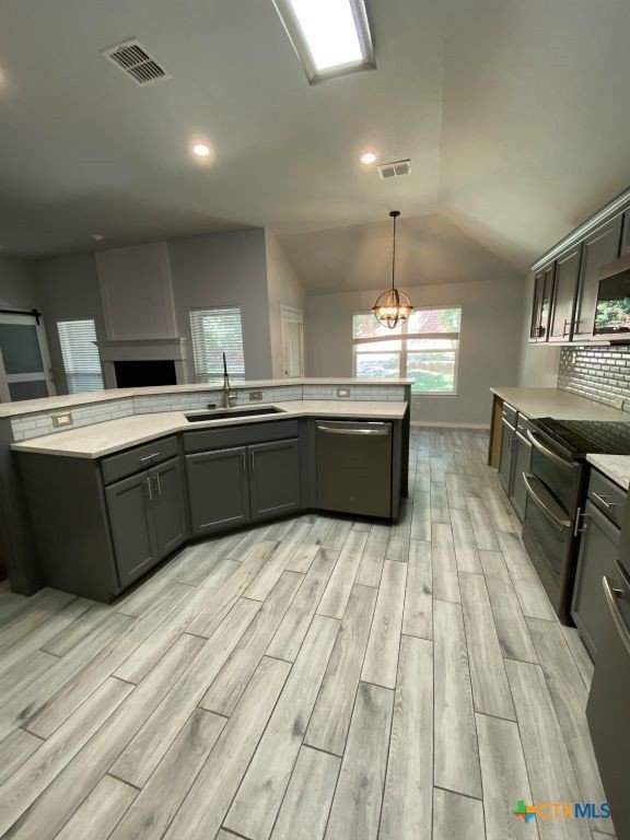 Step through the front door and immediately be welcomed by rich wood flooring, a cozy fireplace, and a striking shiplap accent wall that adds warmth and character to the living area. The kitchen is truly a showstopper—featuring luxurious quartz countertops, custom cabinetry, and a layout that is perfect for entertaining guests or enjoying everyday meals in style. The spacious minor bedrooms each offer double-door closets and plenty of room to relax or work. The primary suite is tucked just off the living room, offering privacy and comfort with a generous walk-in closet. Indulge in the spa-like master bathroom complete with elegant marble countertops, a double vanity, a sleek walk-in shower, and your very own sauna—a rare and relaxing retreat! Step outside to a private backyard that backs to a greenbelt, offering peace, shade, and beautiful tree cover—ideal for outdoor enjoyment