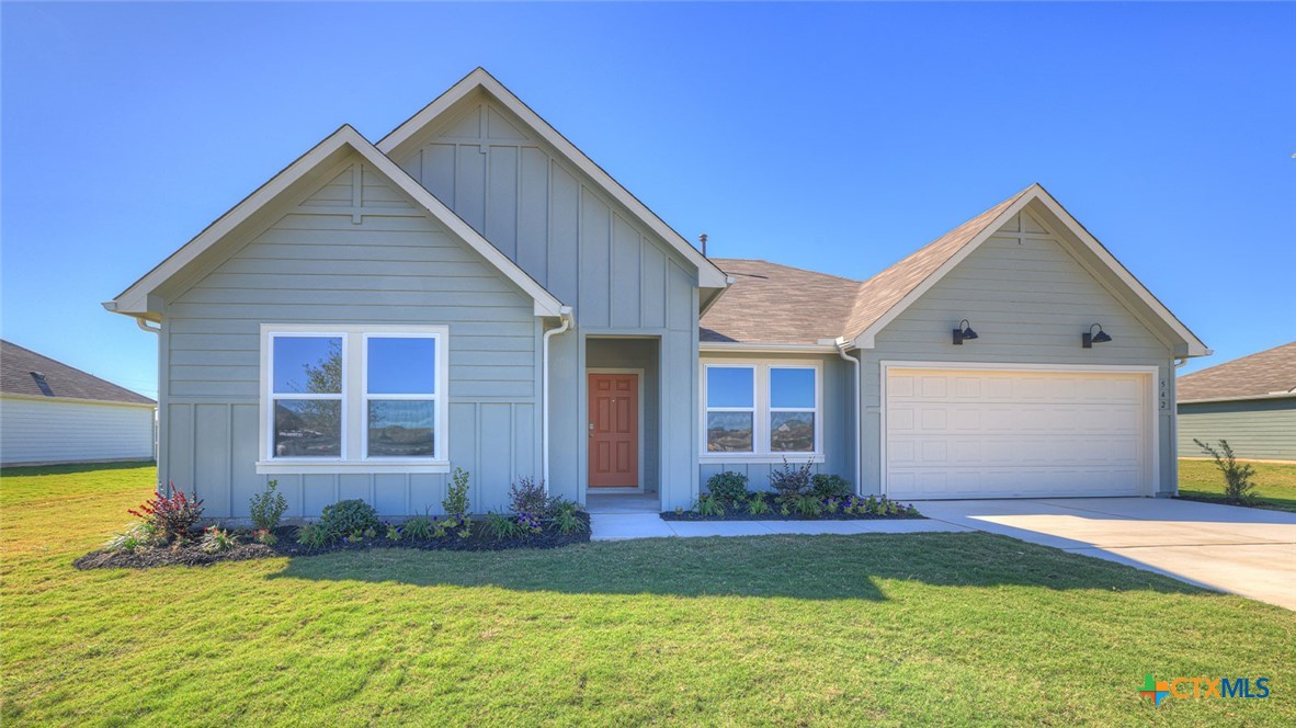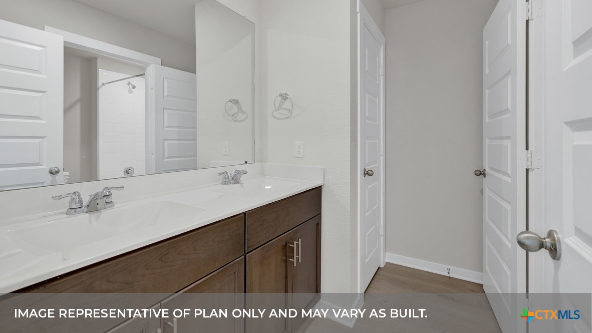 MOVE IN READY! Find all the space you need in our Frisco floorplan at Hartland Ranch in Lockhart, Texas. This spacious one-story home includes 3 bedrooms, 2 bathrooms and a study within 2,087 square feet and a 2 car garage. Step through the covered entryway into the foyer. You’ll find the study off to one side and two secondary bedrooms and a full bathroom off to the other side. The secondary bathroom features the toilet and shower/tub combination behind a separate door, allowing mornings to run efficiently for multiple family members. Past the foyer and study, you’ll enter the dining room, family room, kitchen, and nook. The open living space is perfect for entertaining and you’re sure to make many memories in this beautiful space. The kitchen features an oversized island with undermount sink, quartz countertops, decorative tile backsplash, a corner pantry closet, stainless-steel appliances and 36’’ upper cabinets. Let the natural light shine through the five rear windows, brightening up the living space. The primary bedroom is off the family room and includes its own attached bathroom, making the start of your day a seamless step from sleep to your morning routine. Enjoy the 5’ walk in shower, raised cultured marble vanity with double sinks, and separate entrance to the toilet for privacy. A walk-in closet with shelving is connected to the bathroom. The utility room is located near the primary bedroom and connects to the garage, perfect for a mud room. The Frisco includes vinyl flooring throughout the common areas of the home and the primary bedroom, and carpet in the secondary bedrooms. All our new homes feature a covered back patio, full sod, an irrigation system in the front and back yard, and full gutters. This home includes our America’s Smart Home base package, which includes the Amazon Echo Pop, Front Doorbell, Front Door Deadbolt Lock, Home Hub, Thermostat, and Deako® Smart Switches.