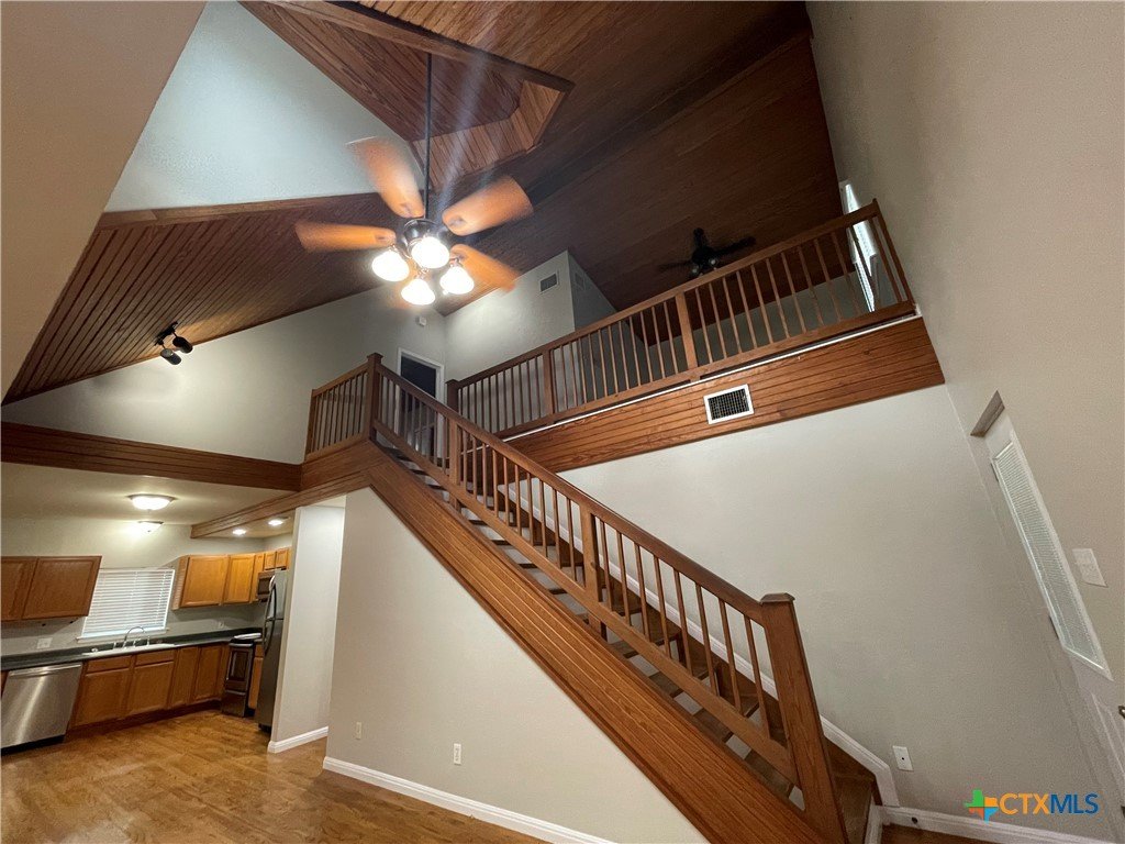 Cute Hill Country rental located on the north side of Canyon Lake, just minutes from the high school. Available mid-to-late February 2026. This 3-bedroom, 2-bath home offers approximately 1,350 square feet of comfortable living space. The upstairs primary bedroom features a beautiful lake view, along with a spacious covered wraparound porch and an additional living area/loft—perfect for a second lounge, office, or flex space. Downstairs includes two additional bedrooms, a full bathroom, laundry area, kitchen, and main living room, providing a functional and well-designed layout. Pets are welcome with a starting deposit of $350. Schedule a showing and see why this Hill Country home is a great place to call home.