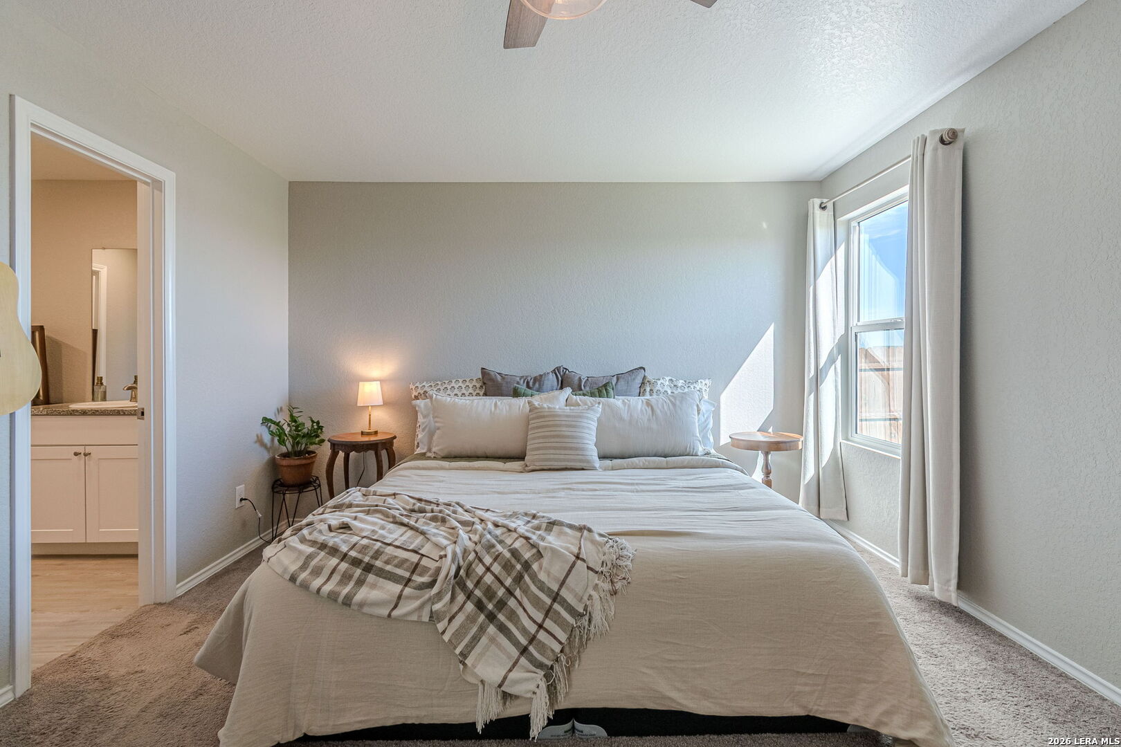 This 4-bedroom home sits in one of the area's most centrally located communities - with easy access to everything New Braunfels has to offer. Inside, the open floor plan is bright and well-appointed with upgrades already done: tile backsplash, ceiling fans throughout, custom blinds, and a statement chandelier. Fresh sod in the backyard and easy care landscaping give this home added appeal while the greenbelt behind the home provides rare privacy. The community amenities are a standout: pool, splash pad, park, and playground, all within the highly regarded Comal ISD. Tasteful finishes. Prime location. True turnkey.