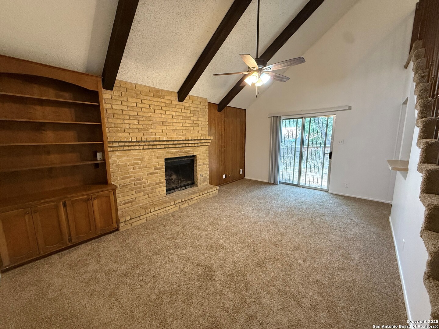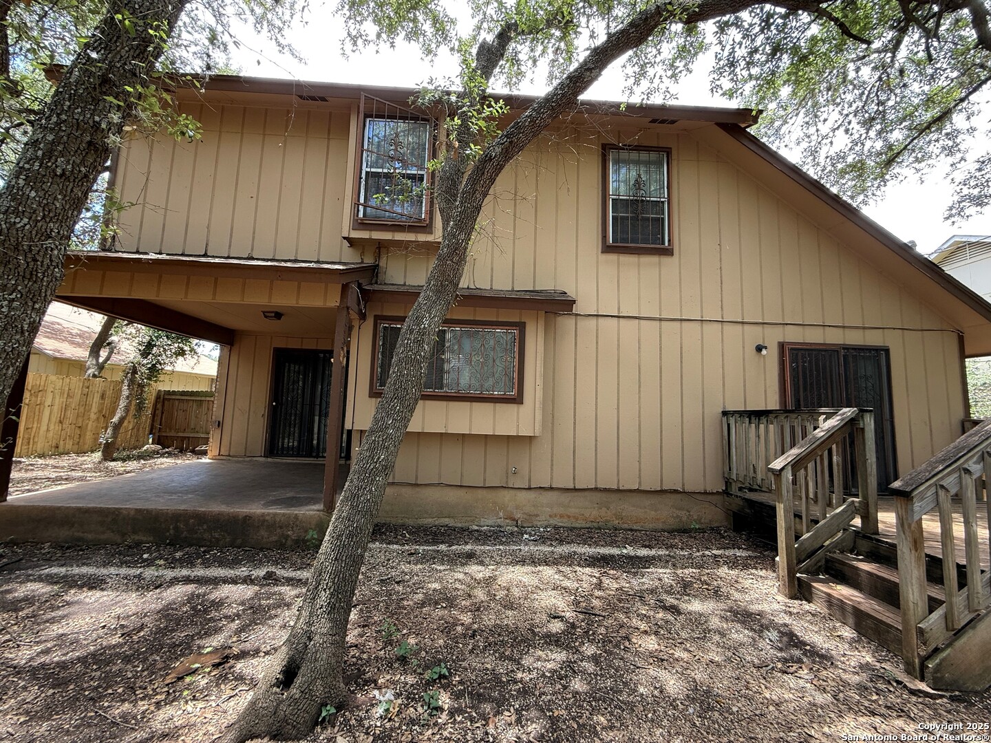 Move-in ready and full of character, this spacious two-story home is located in the well-established Silver Creek subdivision. It features two living areas, with the formal living room offering cozy carpet and the family room showcasing wood paneling, a floor-to-ceiling brick fireplace, wood beam ceiling, and built-in shelving. The kitchen includes a cooktop stove, built-in oven, and an abundance of custom cabinets for storage. Upstairs, the master suite opens to a private balcony through French doors and includes a double vanity and stand-up shower. The oversized backyard is perfect for entertaining, with a covered patio, separate deck, mature trees, and a privacy fence. Conveniently located near major highways, shopping, and dining.