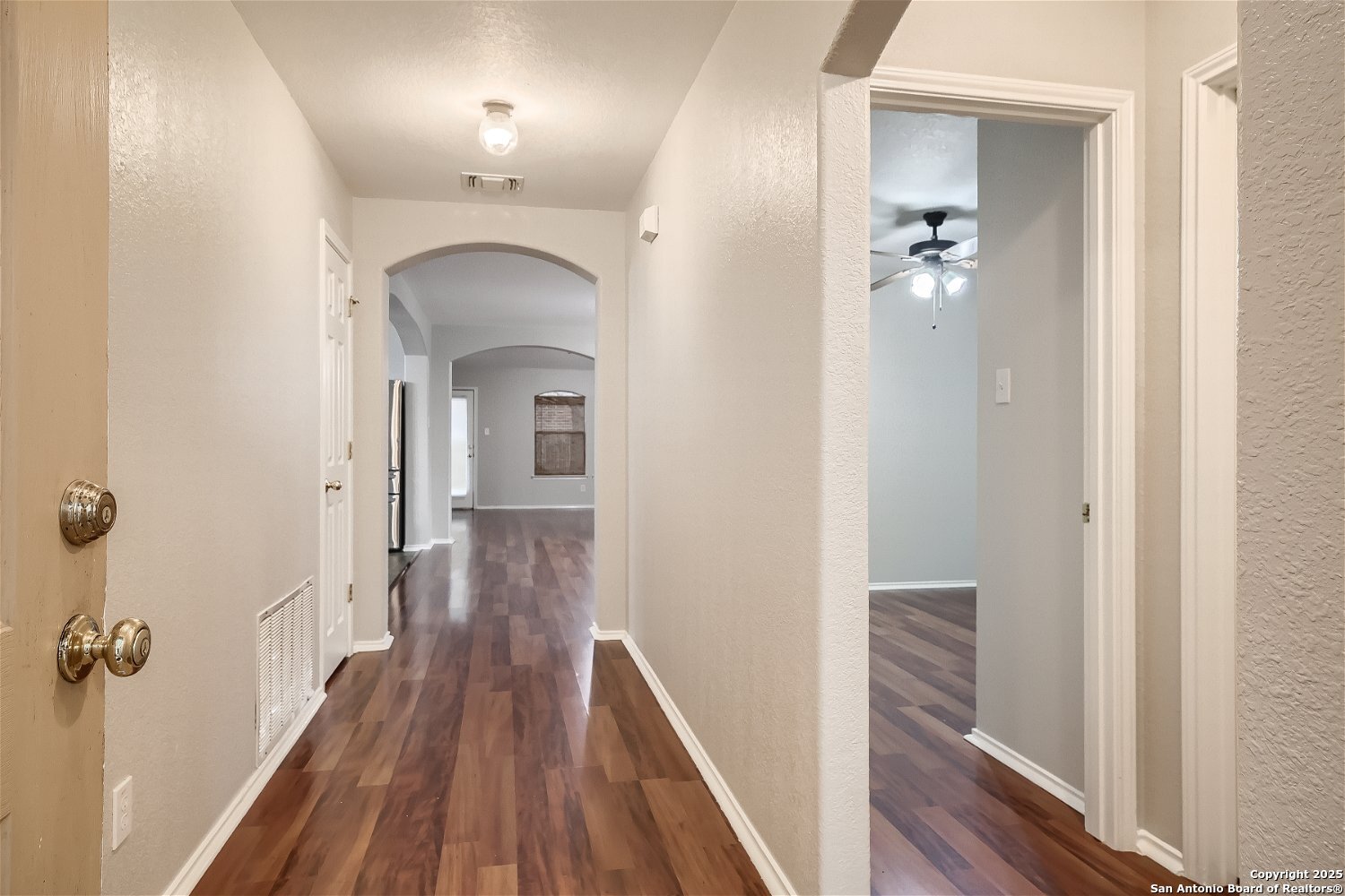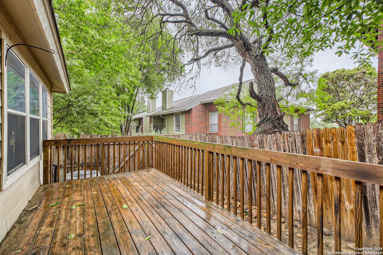 *As of 11/2025 new HVAC equipped with special air purifier and UV light designed to destroy microbial growth.* As of 8/1/2025 NEWLY REMODELED BATHROOMS, NEW BLINDS, NEW ZEROSCAPE* Ideally situated just off Medical Drive, this impeccably maintained home places you minutes from UTSA, UTHSC, major hospitals, USAA, I-10, Loop 410, and more. The interior features inviting archways, fresh paint, and wood laminate flooring throughout. The kitchen shines with stainless steel appliances, a breakfast bar, and a built-in desk-perfect for meal prep or working from home. All appliances convey, including washer, dryer, refrigerator, water softener, and an additional fridge in the garage. The spacious primary suite offers comfort and privacy, while the backyard includes a deck and a sprinkler system for easy outdoor enjoyment. A rare find in a highly sought-after location!