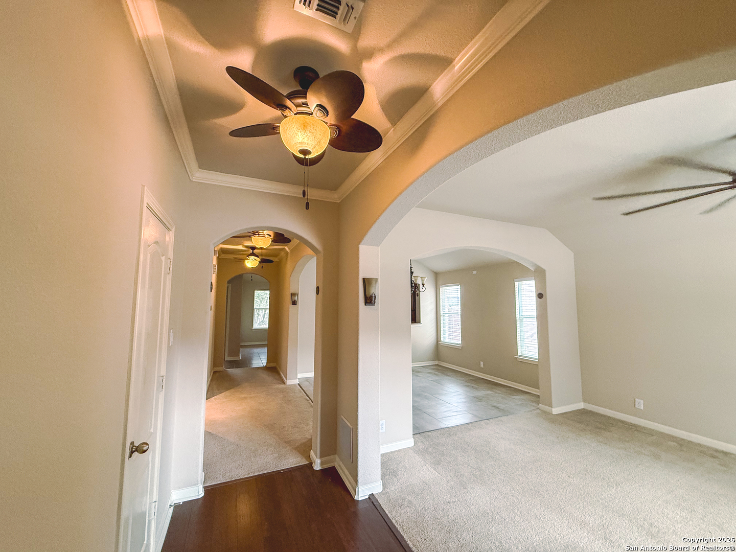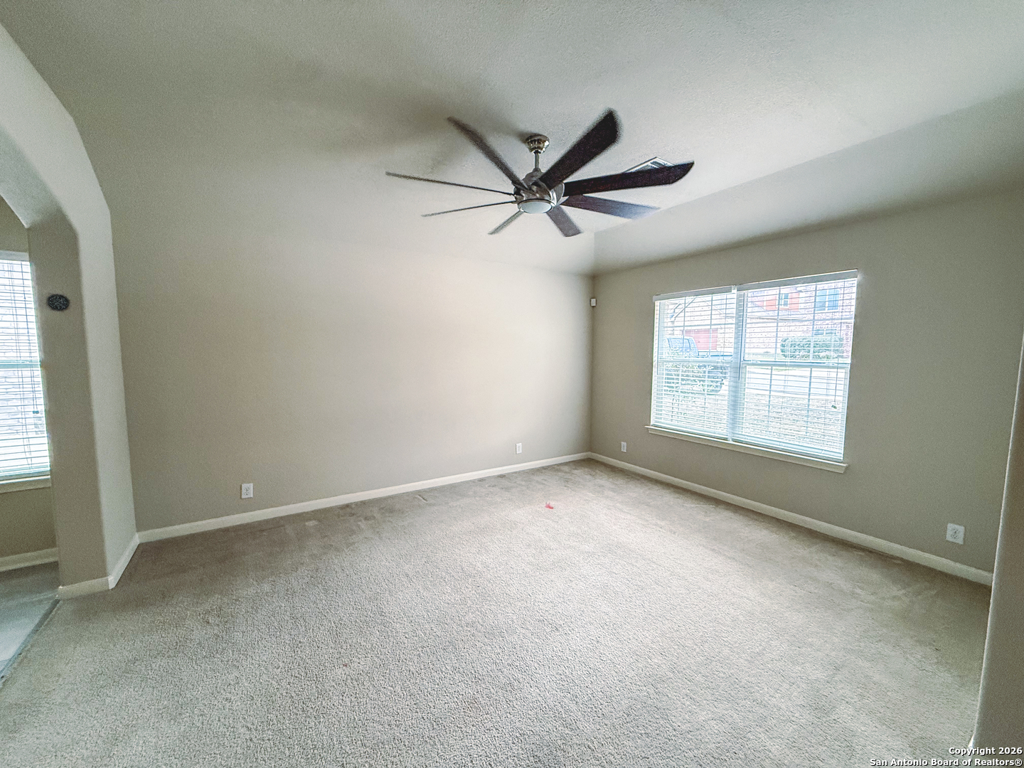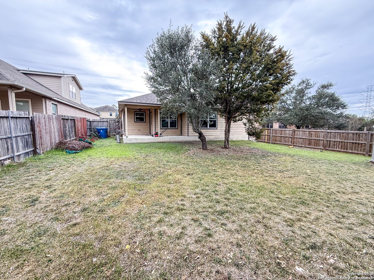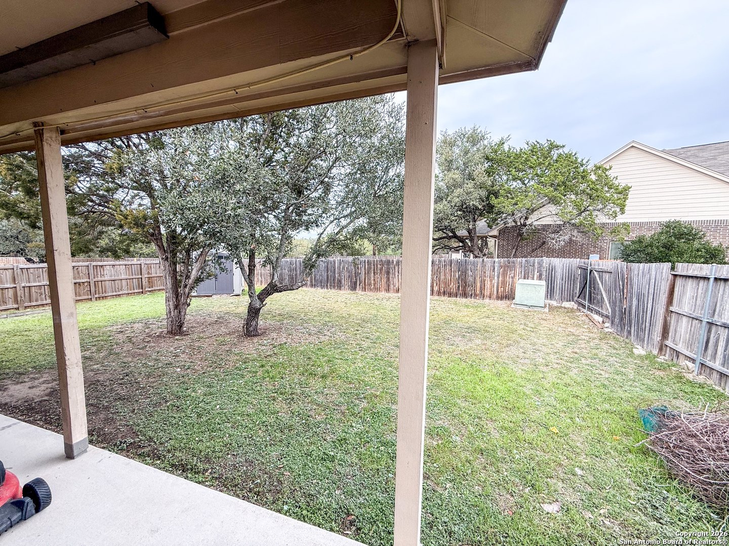 BEAUTIFUL SINGLE-STORY HOME IN THE HIGHLY DESIRABLE GATED COMMUNITY OF WORTHAM OAKS! THIS WELL-MAINTAINED, LIGHTLY LIVED-IN HOME OFFERS AN OPEN CONCEPT LAYOUT WITH APPROX. 1,624 SQ FT OF LIVING SPACE. ENJOY DESIGNER DETAILS THROUGHOUT INCLUDING ARCHED ENTRYWAYS, MODERN LIGHT FIXTURES & ELEGANT FINISHES. THE SPLIT BEDROOM PLAN FEATURES A PRIVATE MASTER RETREAT WITH A SPACIOUS BATH INCLUDING A GARDEN TUB & SEPARATE SHOWER. FORMAL DINING ROOM AND TWO EATING AREAS PROVIDE AMPLE SPACE FOR ENTERTAINING. STEP OUT TO A COVERED PATIO AND ENJOY THE LARGE BACKYARD PERFECT FOR OUTDOOR GATHERINGS. WATER SOFTENER INCLUDED. CONVENIENT LOCATION WITH EASY ACCESS TO 1604, 281 & IH-35, SHOPPING AND SCHOOLS.
