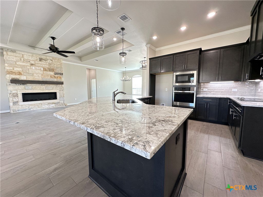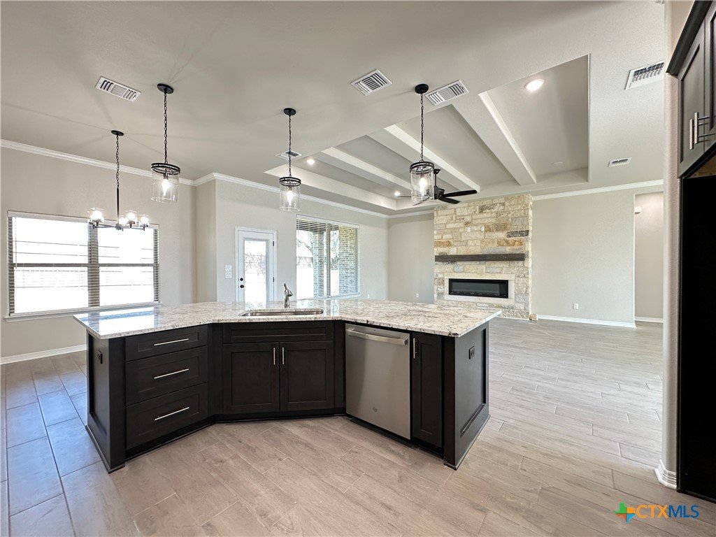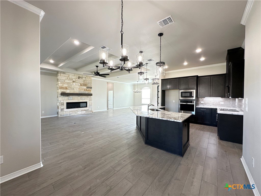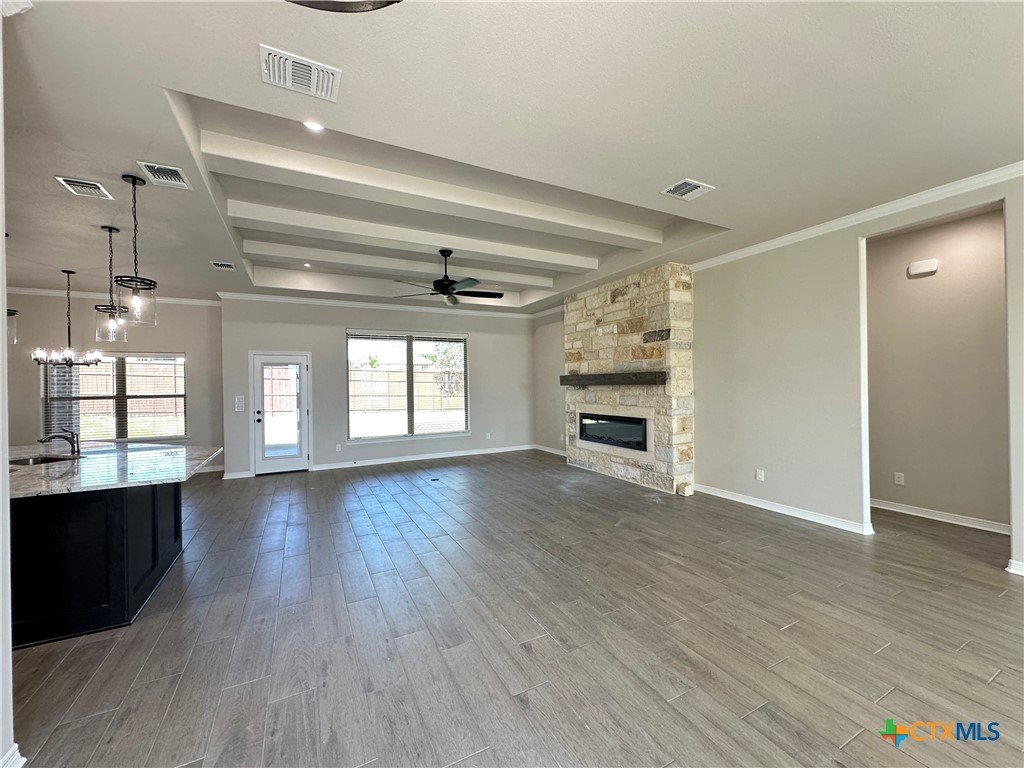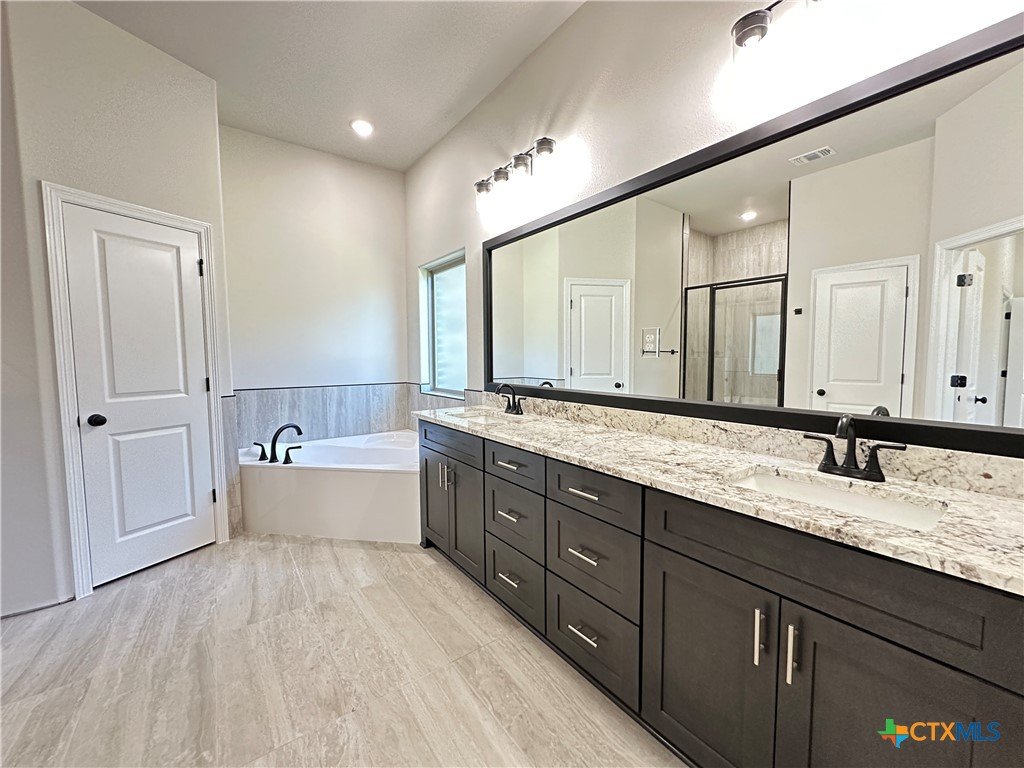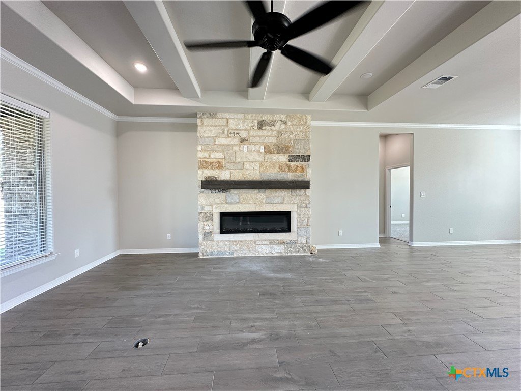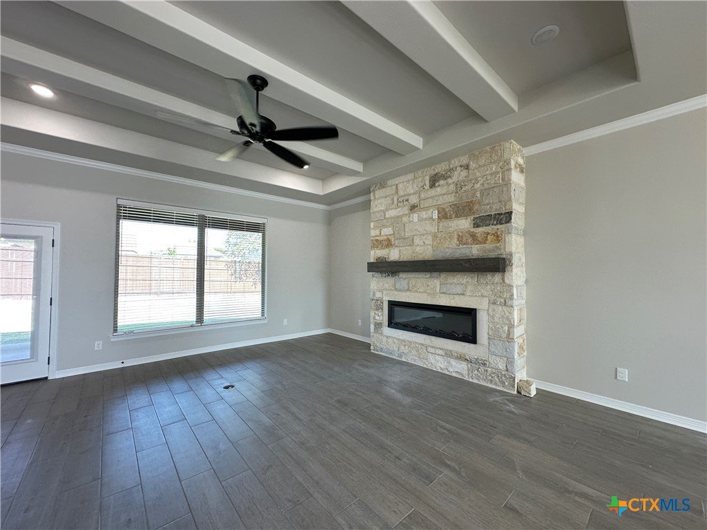 Elevate your lifestyle with the Nixon plan by Carothers Executive Homes — a sophisticated 3-bedroom residence featuring a private study, formal and informal dining areas, and a spacious 3-car garage. Nestled in the highly sought-after Three Creeks community near Stillhouse Lake, this 2,279 sq. ft. home offers scenic walking trails and effortless access to I-14 and I-35 for a seamless commute. Step into timeless elegance with an open-concept layout enhanced by designer finishes, accent ceiling beams, and a sleek electric fireplace for year-round ambiance. Whether hosting in the formal dining room or relaxing on the expansive back patio, every detail reflects the quality and craftsmanship Carothers is known for.